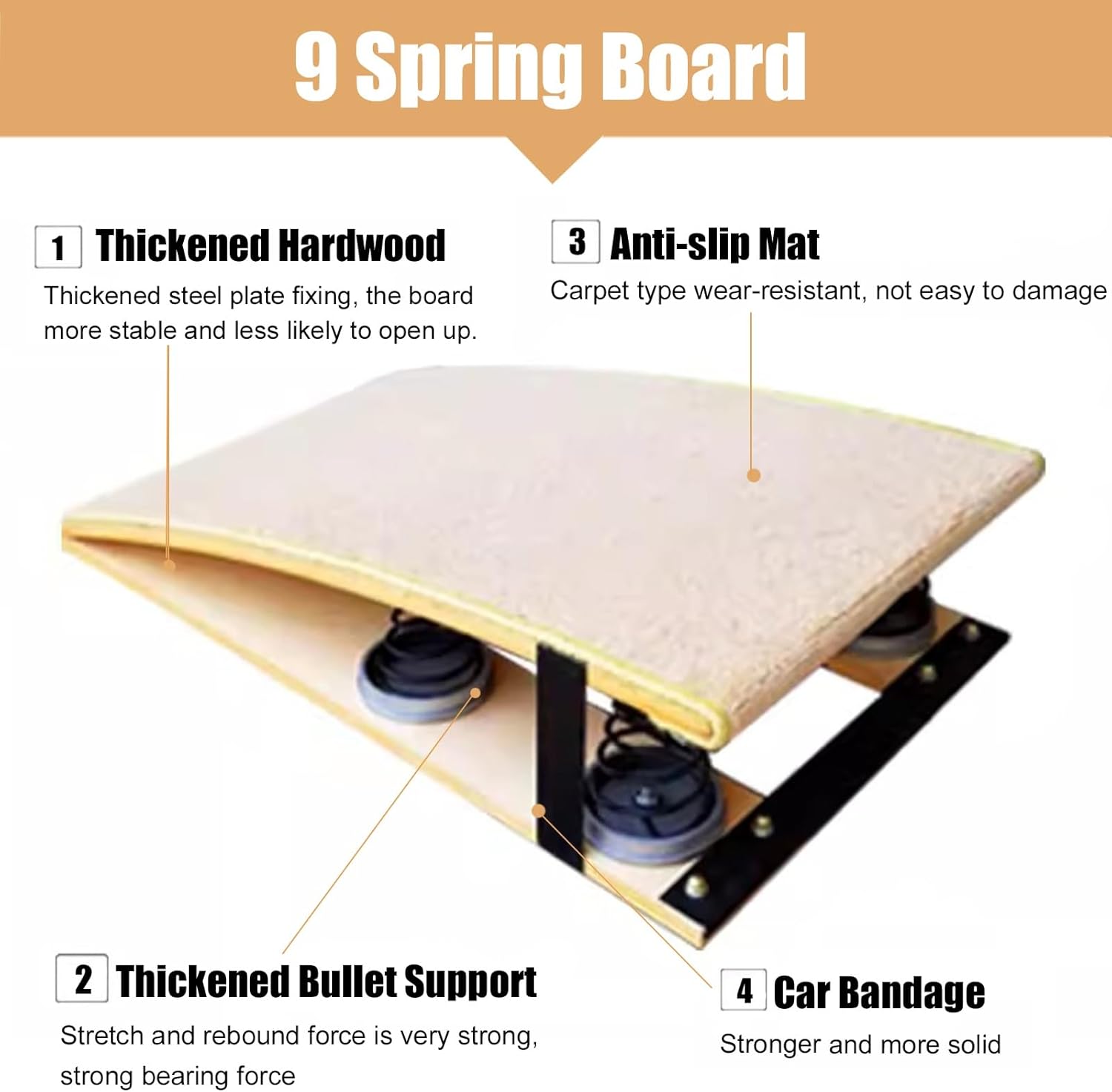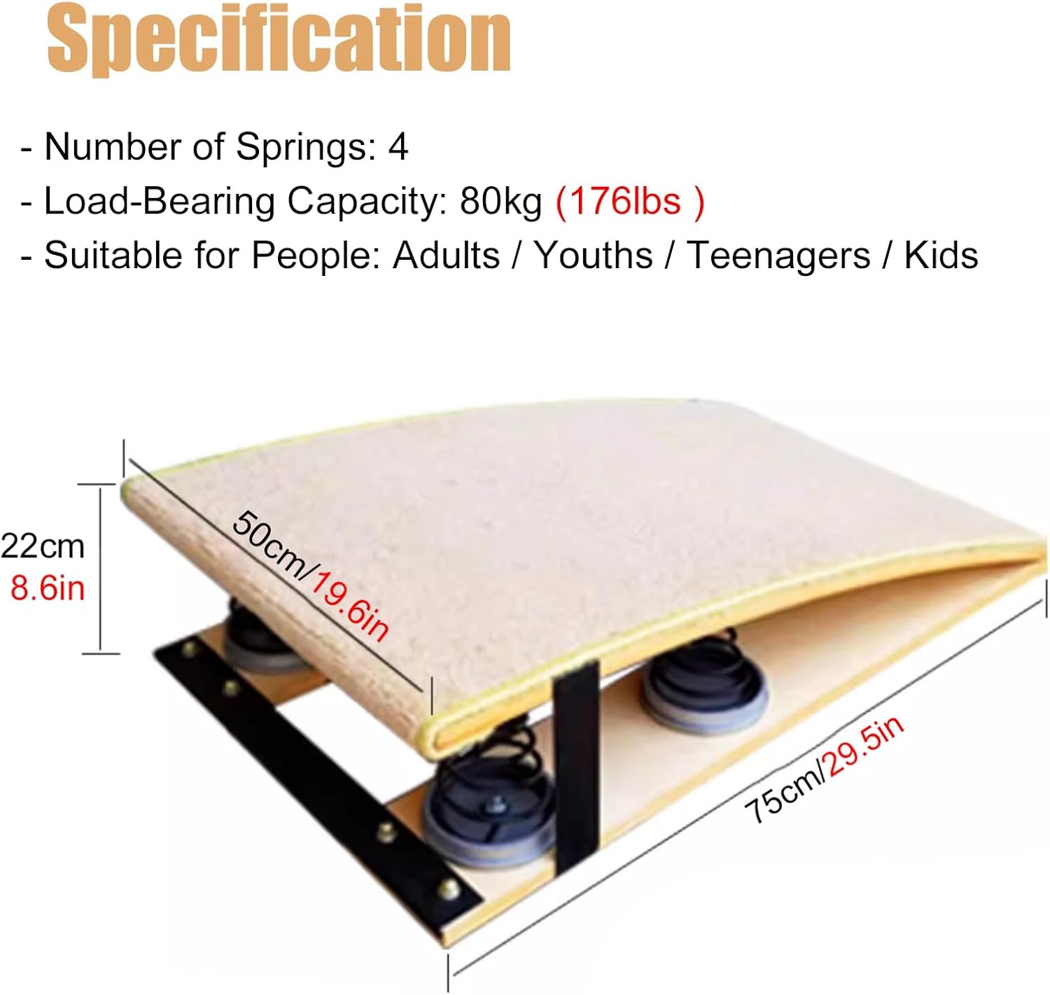【Tavola di supporto per il salto】75 cm (29,5 pollici) di lunghezza, 50 cm (19,6 pollici) di larghezza, 22 cm (8,5 pollici) di altezza dall'estremità più alta. Capacità di carico: 80 kg/176 libbre. 【Molle elastiche in acciaio】Molla ad alta tenacità e ispessita, elastica e resiliente. Sicura, stabile e senza distorsioni. Risparmia energia per i ginnasti e salta più in alto. 【Tappeto superiore antiscivolo】Il comodo tappeto superiore antiscivolo consente ai piedi di aderire bene durante il salto e offre anche una superficie confortevole. Non ti farà formicolare i piedi, anche se sei a piedi nudi. 【Trampolino da ginnastica durevole】Il nostro trampolino è realizzato in legno massello, con una forte capacità portante, nessuna deformazione, liscio e senza sbavature, facile da pulire; 【Ampiamente utilizzato】 Trampolino da ginnastica resistente, perfetto per interni ed esterni, casa, bar per ginnastica, sala giochi, percorsi a ostacoli, palestra di casa, cantina, ecc.