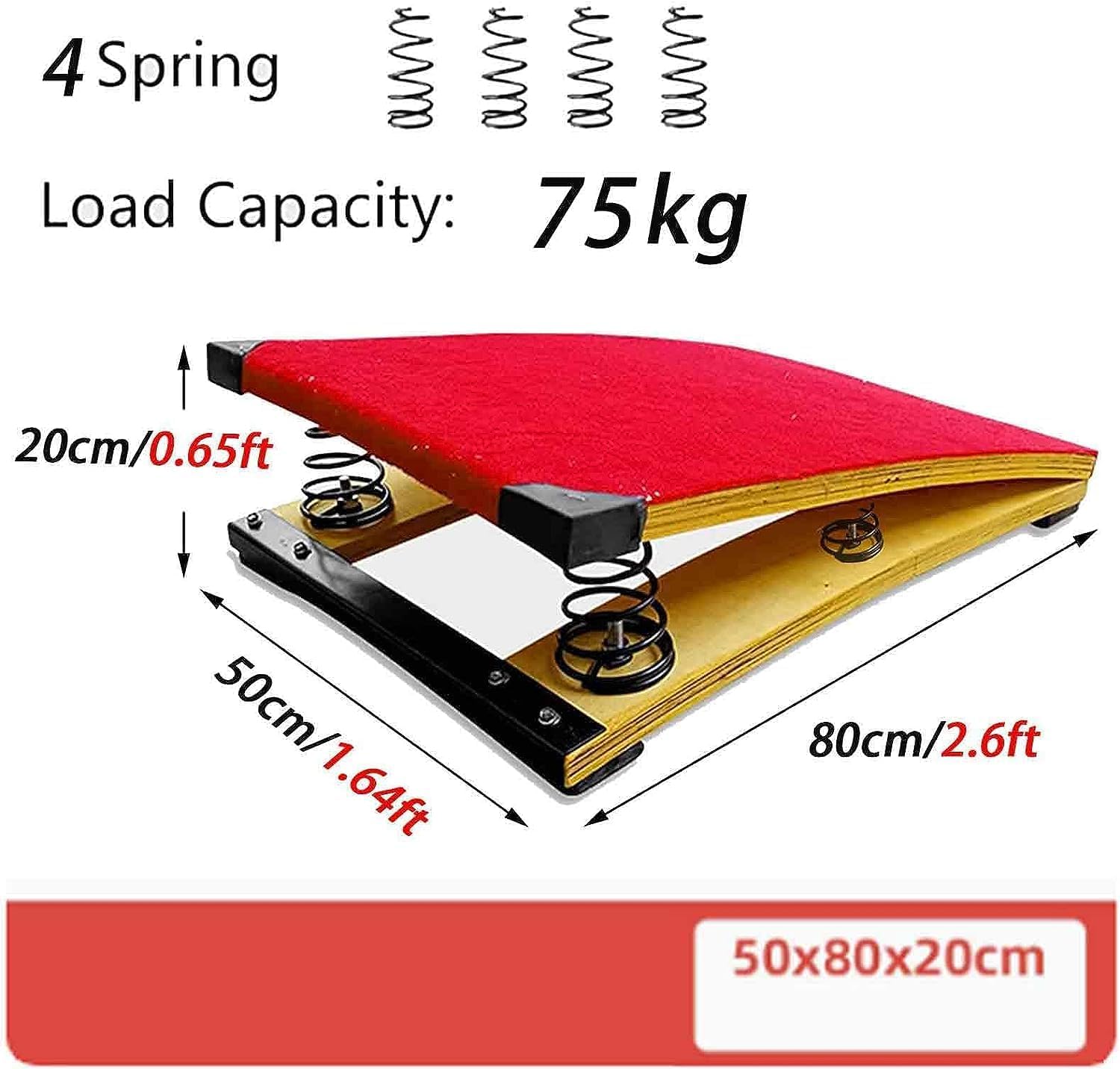Tavole da salto per ginnastica: le pedane da salto per ginnastica sono ausili utilizzati nelle gare di volteggio per migliorare le tecniche di salto, esercitarsi nelle discese e negli atterraggi, nelle arti sportive e nello stretching. Il trampolino aiuta gli atleti ad aumentare l'altezza del salto e a eseguire movimenti tecnici complessi negli sport aerei. MOLLE AD ALTA FLESSIBILITÀ: Questo trampolino sportivo è realizzato con molle ad alta tenacità, buona elasticità, non si arrugginisce e non si deforma facilmente, è stabile e sicuro, risolve le tue preoccupazioni, ti offre una migliore sensazione di rimbalzo, risparmia forza fisica ed energia, salta più in alto. Feltro antiscivolo: la superficie del trampolino è rivestita in feltro antiscivolo e resistente all'usura, che consente ai piedi di mantenere una buona presa durante il salto, in modo sicuro e a prova di caduta, massimizzando la protezione dagli infortuni. Anche a piedi nudi, non pungerà i piedi. Tavola spessa: il trampolino è realizzato in tavola spessa di alta qualità, impermeabile, resistente all'umidità, non facile da rompere, con capacità portanti elevate, stabilità e durata. La superficie del trampolino è rivestita in feltro antiscivolo e resistente all'usura, che consente ai piedi di mantenere una buona presa e impedisce loro di cadere in sicurezza durante il salto. AMPIA APPLICAZIONE: trampolino da ginnastica resistente per casa, palestra, campo di allenamento professionale, palestra, scuola e altri luoghi, che tu sia un atleta professionista, un appassionato di fitness o un allenatore di allenamento fisico per bambini, salto in alto, salto in lungo.