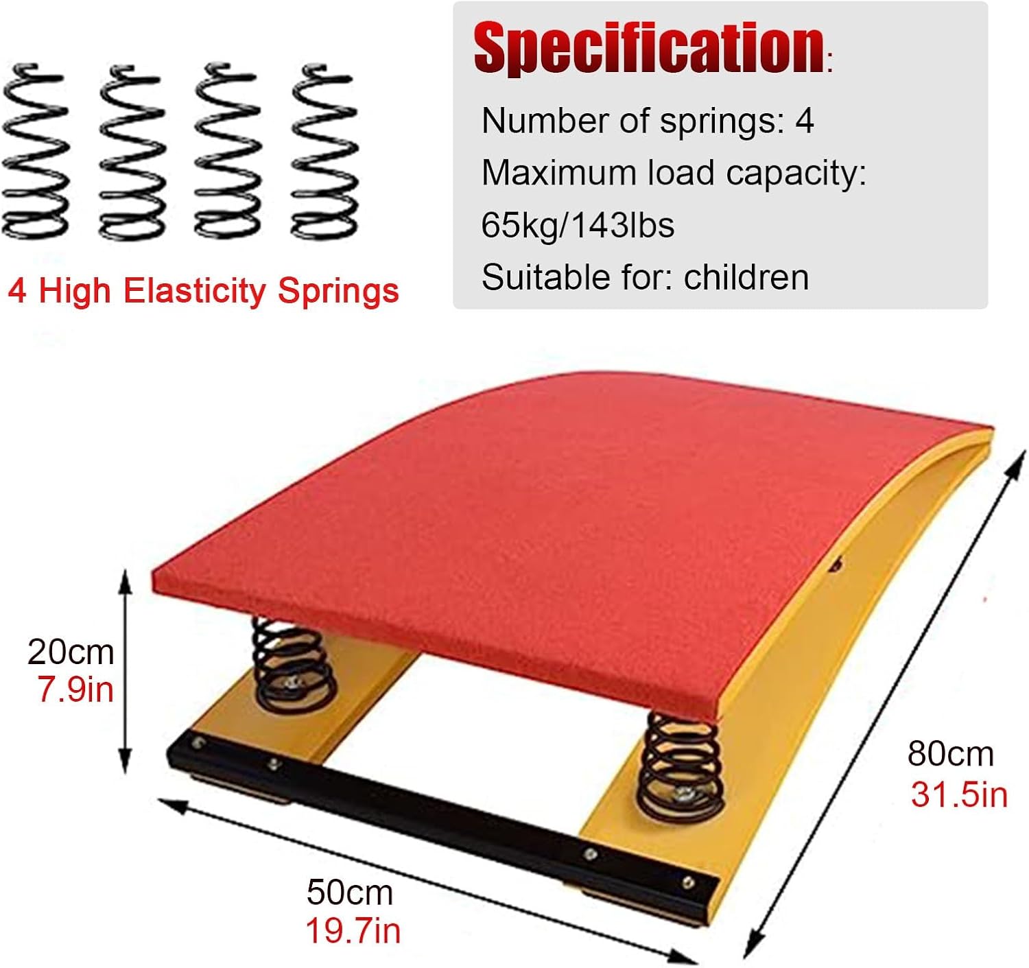 【Molla in acciaio ad alta elasticità】 La molla ispessita ad alta tenacità ha una super elasticità e resilienza, nessuna deformazione e nessuna ruggine. Risparmia energia per i ginnasti e salta più in alto. 【Tappeto superiore antiscivolo e cuscinetto inferiore】 Il tappeto antiscivolo sulla parte superiore dei pannelli offre presa e comfort durante l'uso, senza ferire i piedi. I cuscinetti in gomma sul fondo assicurano che il trampolino non scivoli durante l'uso. 【Ampiamente utilizzato】 Per attività all'aperto e al chiuso, come ginnastica, arti marziali, barre orizzontali, allenamento atletico o esercizi di capriole. Può essere utilizzato in palestra, sala giochi, cantina, scuola, centro di ginnastica o club sportivo. 【Trampolino da ginnastica resistente】 Il trampolino è realizzato in legno duro resistente, bordi lisci senza sbavature, non facile da deformare e crepare. Il carico massimo è di 120 kg (265 libbre), soddisfa l'uso quotidiano. 【Servizio】I nostri prodotti vengono rigorosamente selezionati prima della spedizione, ci impegniamo per una maggiore soddisfazione. In caso di domande sul nostro prodotto, non esitate a contattare il nostro team di assistenza clienti