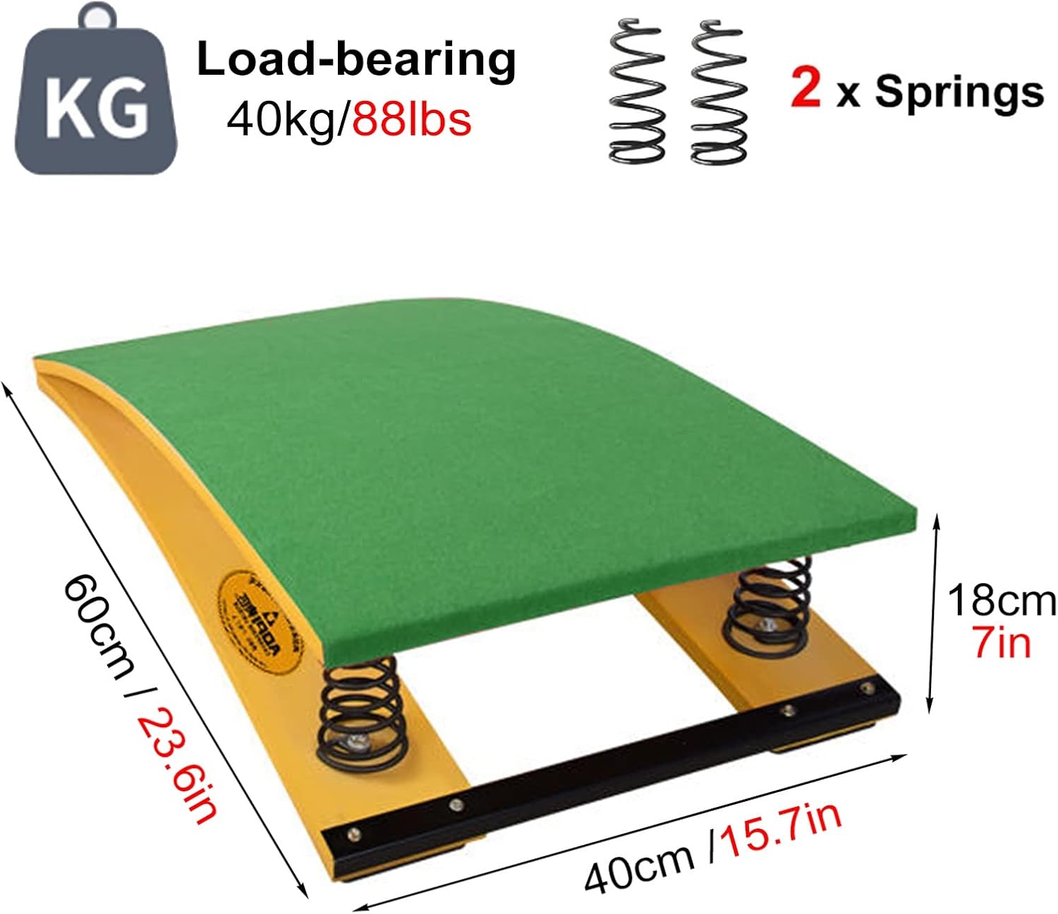 【Trampolino da ginnastica durevole】Il nostro trampolino è realizzato in legno massello, con una forte capacità portante, nessuna deformazione, liscio e senza sbavature, facile da pulire; 【Tavola di supporto per il salto】60 cm (23,6 pollici) di lunghezza, 40 cm (15,7 pollici) di larghezza, 18 cm (7 pollici) di altezza dall'estremità più alta. Capacità di carico: 40 kg (88 libbre). 【Molle elastiche in acciaio】 Molle ad alta tenacità e spessore elevato, elastiche e resistenti. Sicure, stabili e senza distorsioni. Risparmia energia per i ginnasti e salta più in alto. 【Tappeto superiore antiscivolo】Il comodo tappeto superiore antiscivolo consente ai piedi di aderire bene durante il salto e offre anche una superficie confortevole. Non ti farà formicolare i piedi, anche se sei a piedi nudi. 【Ampiamente utilizzato】 Trampolino da ginnastica resistente, perfetto per interni ed esterni, casa, bar per ginnastica, sala giochi, percorsi a ostacoli, palestra di casa, cantina, ecc.