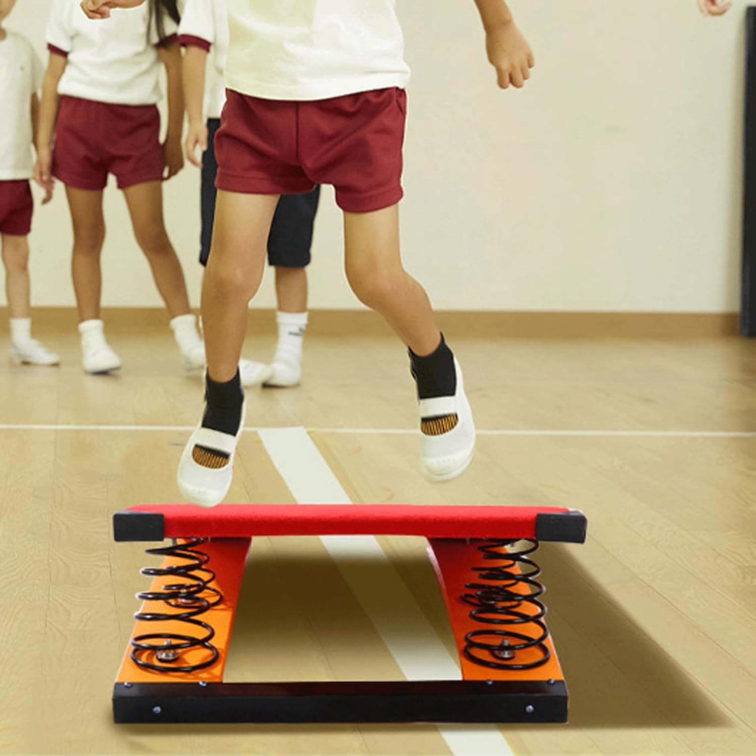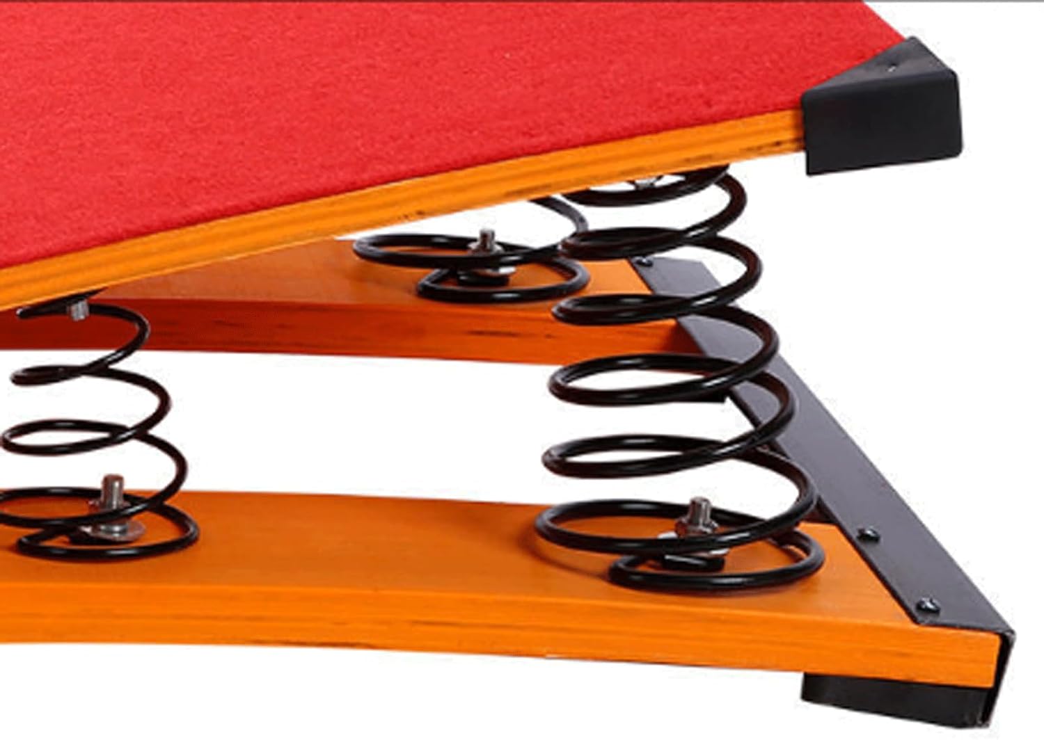 TAPPETINO ANTISCIVOLO - La parte inferiore del trampolino da ginnastica è progettata con cuscinetti antiscivolo in gomma, che offrono una maggiore resistenza per garantire stabilità e proteggere i pavimenti dai graffi. FELTRO ANTISCIVOLO - La superficie del trampolino da ginnastica è rivestita con feltro antiscivolo e resistente all'usura di alta qualità, che consente ai piedi di mantenere una buona presa durante il salto, è sicuro e anticaduta e ci protegge dagli infortuni. BENE AL TATTO - È comodo al tatto e non brucia i piedi anche se si è a piedi nudi, garantendo una migliore esperienza di movimento per il bambino. Può essere utilizzato ripetutamente per lungo tempo e può sopportare circa 60 kg. ELEVATA ELASTICITÀ - Questo trampolino a molla è dotato di una robusta molla in acciaio ispessito all'interno, che collega saldamente la superficie antiscivolo al telaio, garantendo una buona elasticità, prevenendo ruggine e deformazioni e garantendo stabilità e sicurezza. È piacevole al tatto e non irrita i piedi, anche se si è a piedi nudi, garantendo al bambino una migliore esperienza di movimento.