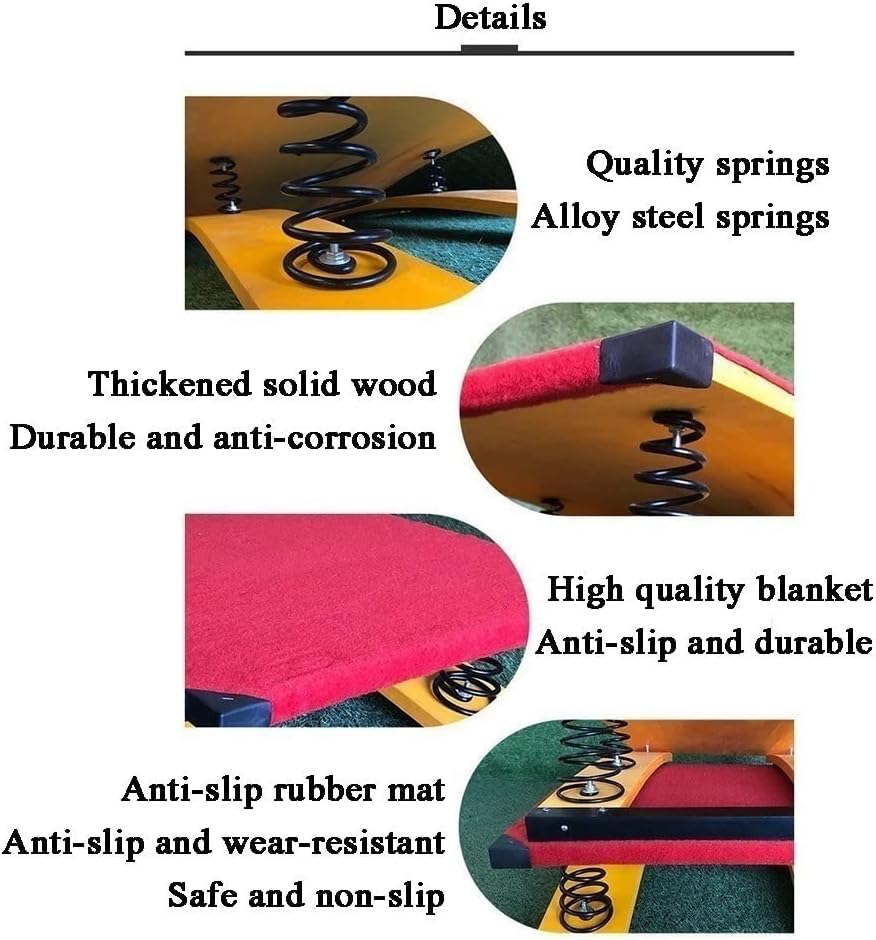 Trampolino da ginnastica in legno: il nostro trampolino è realizzato in legno duro e resistente, liscio e senza sbavature, ripetutamente testato senza subire danni o rotture. Tappeto superiore antiscivolo e confortevole: la parte superiore del pannello è rivestita in feltro antiscivolo, che protegge la sicurezza dei saltatori e garantisce una presa ottimale. La superficie comoda non arreca alcun fastidio ai piedi. 2 Molle in acciaio ad alta resistenza: le molle ad alta tenacità e ispessite offrono un'elevata resilienza, sono sicure, stabili e non si arrugginiscono e non si deformano facilmente. Risparmia energia agli atleti e salta più in alto. Attrezzatura sportiva multiuso: può migliorare la tecnica del salto, esercitarsi nello sbarco e nell'atterraggio. Può essere utilizzata anche per arti marziali, sbarra orizzontale, capriole, stretching, percorsi a ostacoli o allenamento atletico. Occasioni di applicazione: ideale per sale giochi, palestre domestiche, asili, scuole, centri di ginnastica, ecc.
