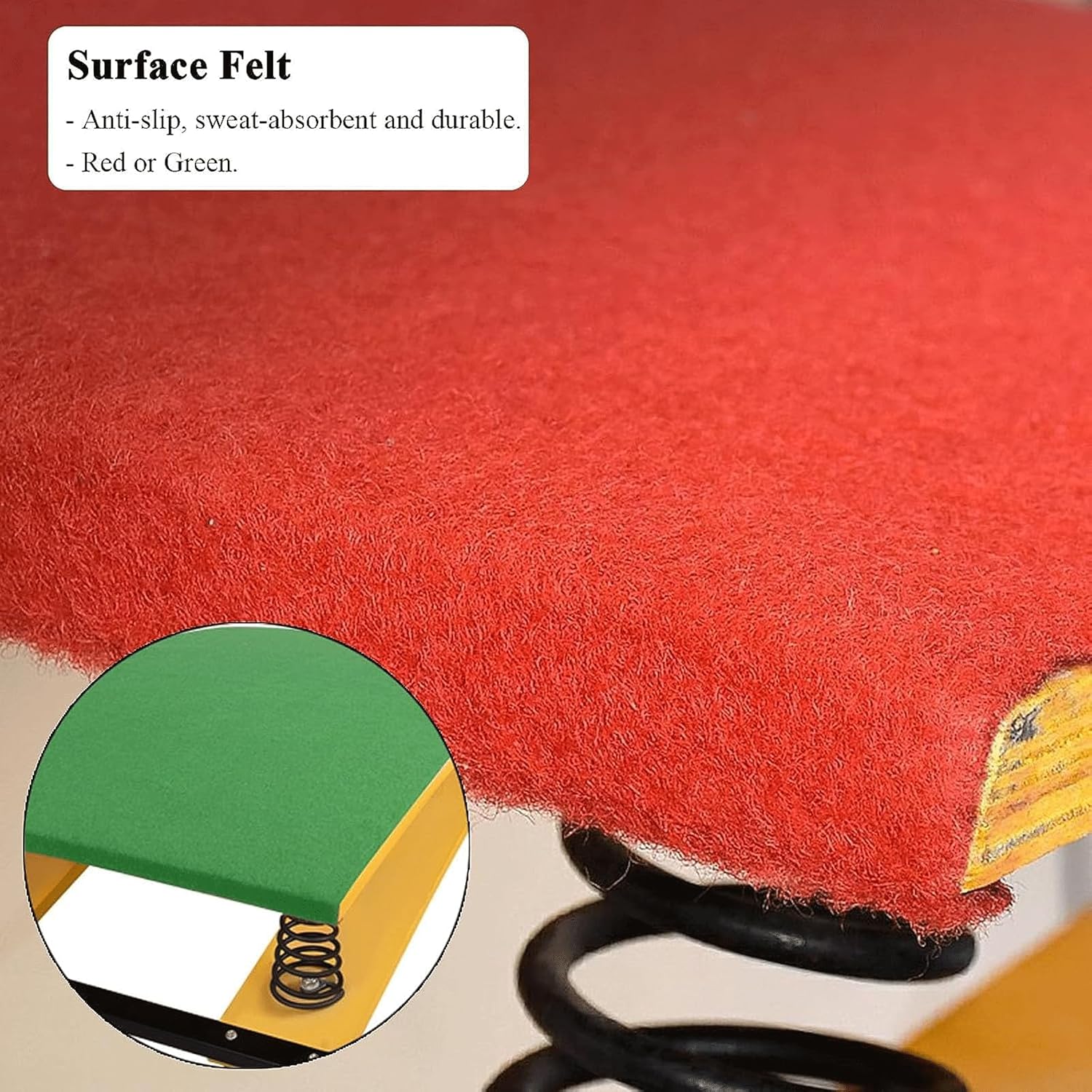 Attrezzatura per ginnastica in legno: il trampolino per l'allenamento di ginnastica è realizzato in legno con superficie in feltro. Il legno fornisce una base robusta e affidabile, mentre la superficie in feltro offre un punto di atterraggio morbido e confortevole per l'utente. Pedale Springs Boards: è dotato di 4 molle spesse a forma di S. Queste molle forniscono un elevato livello di elasticità e aiutano a migliorare il rimbalzo del trampolino, consentendo agli utenti di eseguire vari salti e manovre con facilità. Trampolino di sostegno per palestra domestica: è particolarmente adatto all'uso in vari luoghi, come case, asili, campi sportivi e palestre. Trampolino elastico: il trampolino è progettato con una forma arcuata. Questo design garantisce che il peso dell'utente venga distribuito uniformemente, fornendo una piattaforma stabile ed equilibrata per il salto e l'atterraggio. 【Servizio】I nostri prodotti vengono rigorosamente selezionati prima della spedizione, ci impegniamo per una maggiore soddisfazione. In caso di domande sul nostro prodotto, non esitate a contattare il nostro team di assistenza clienti
