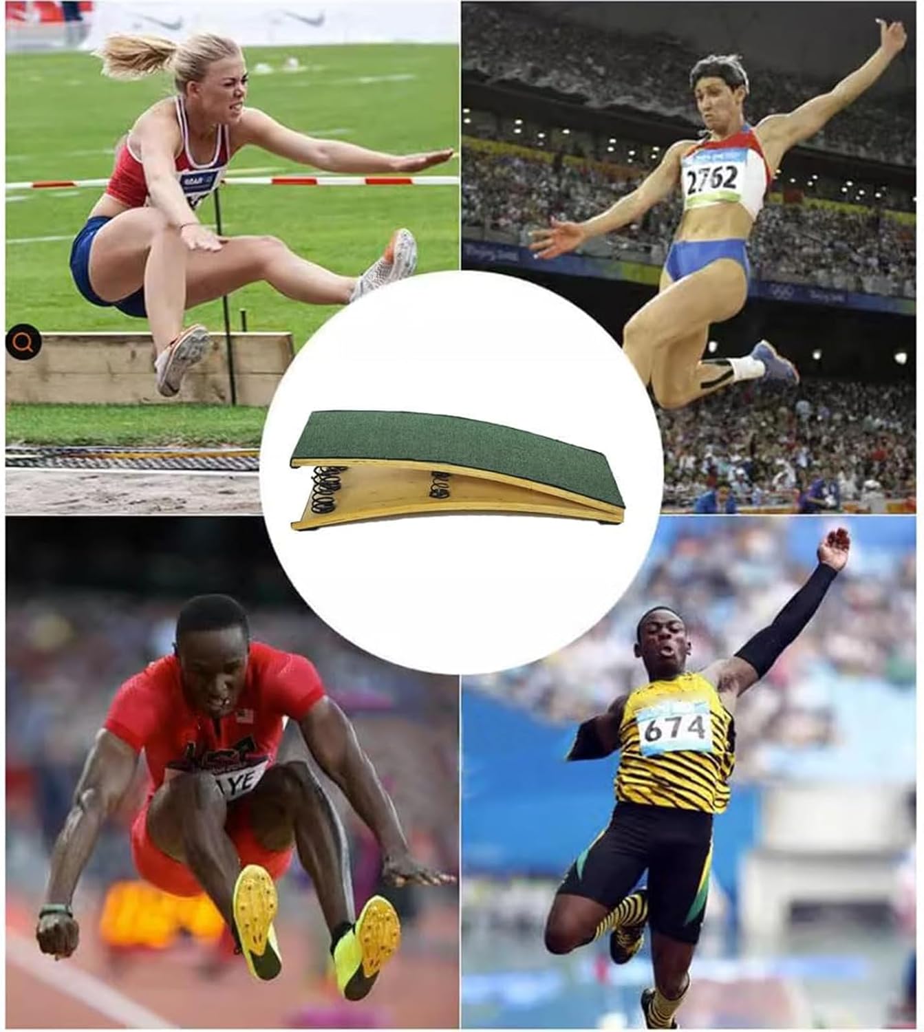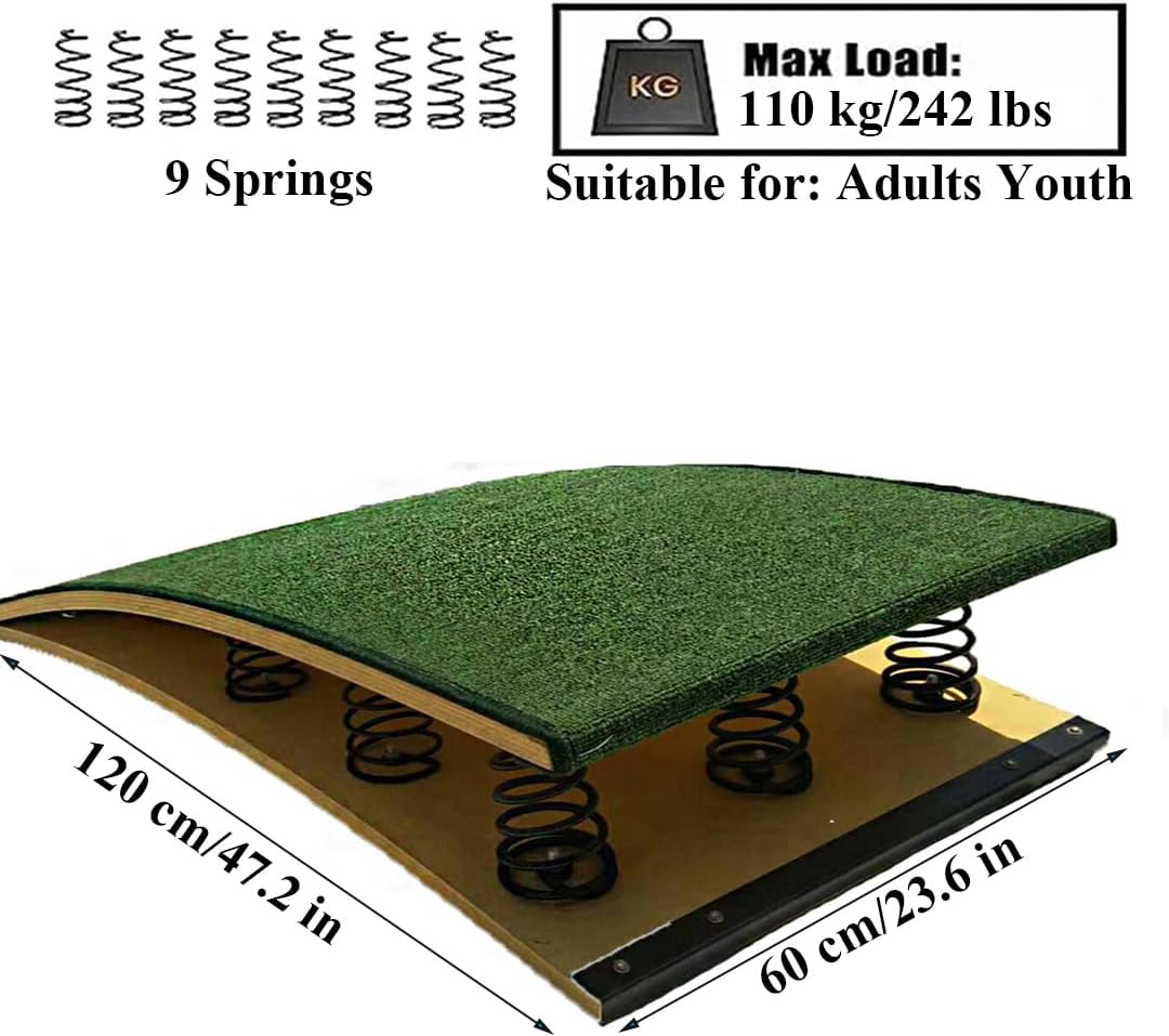 La superficie è rivestita in feltro di alta qualità, antiscivolo, assorbente, sicuro e facile da pulire. Può essere indossato con o senza scarpe e il feltro migliora la presa dei piedi. La superficie confortevole evita formicolio ai piedi. Il design ergonomico della molla pesante garantisce che non si verifichino incidenti durante l'uso. Il rialzo per ginnastica ha un'elevata elasticità e non danneggia i piedi, riducendo notevolmente l'affaticamento dell'atleta. Cuscinetto antiscivolo in gomma di alta qualità, antiscivolo e resistente all'usura, con superficie piana, migliora la stabilità del trampolino e ne aumenta il fattore di sicurezza. Le viti selezionate per il fissaggio prevengono lo scolorimento e la ruggine, migliorando la sicurezza e la stabilità del prodotto. Molla antiruggine, previene la ruggine della molla, con elevata tenacità ed elasticità della molla ispessita, sicura e durevole, reattiva, riduce notevolmente l'affaticamento dell'atleta Il trampolino elastico è adatto per l'allenamento, la competizione e la valutazione dell'attrezzatura essenziale nelle arti marziali (capriole, salto in lungo da fermo e salto in lungo sul campo, salto in lungo dal bunker, salto in lungo con corsa, ecc.), per migliorare la forma fisica e il proprio temperamento.