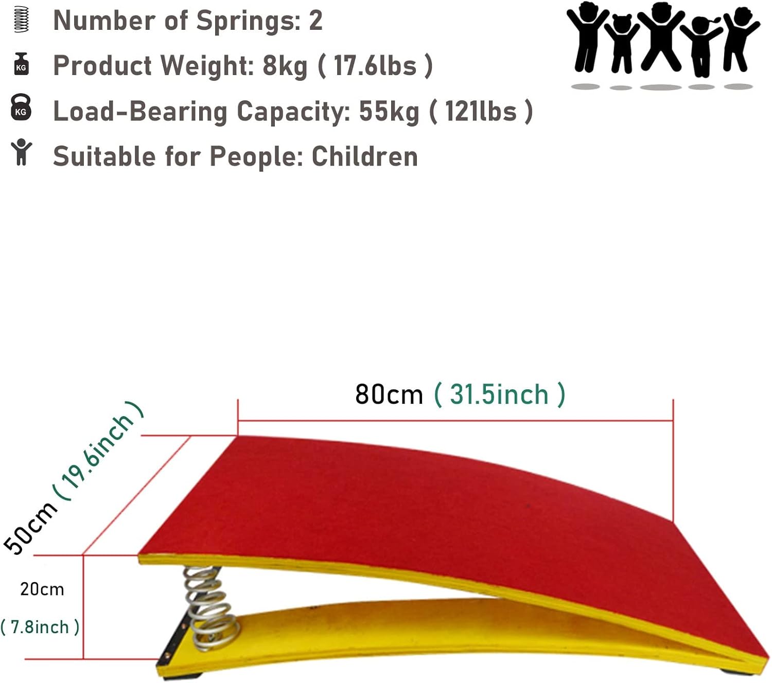 ● Trampolino: progettato per bambini, piccoli principianti e allenatori di ginnastica, questo trampolino è reattivo e riduce notevolmente l'affaticamento dei giocatori. ● Robusto e durevole: realizzato in legno duro spesso, rivestito in feltro. 2 molle metalliche consentono un supporto superiore e un utilizzo ottimale. 80 cm (31,5 pollici) di lunghezza, 50 cm (19,6 pollici) di larghezza, 20 cm (7,8 pollici) di altezza dall'estremità più alta. Capacità di carico: < 55 kg (121 libbre). ● Altezze graduali: trampolino curvo. Grazie alla piattaforma inclinata gradualmente, gli atleti possono posizionare i piedi in una posizione più comoda. I tappetini inclinabili di qualità commerciale sono ideali per le palestre o per l'uso domestico. ● Design con cuscinetti antiscivolo: la parte inferiore è dotata di un design con cuscinetti antiscivolo, che impedisce al trampolino di scivolare e muoversi grazie al terreno liscio, garantendo all'atleta un salto sicuro. ● Occasioni di utilizzo: usalo per esercitarti nel salto in alto o nel volteggio! Il tuo bambino può anche usarlo per fare percorsi a ostacoli, lanciarsi sul divano, come rampa per il suo camion e altro ancora. Ottimo per la sala giochi, la palestra di casa, la scuola, il centro di ginnastica, ecc.