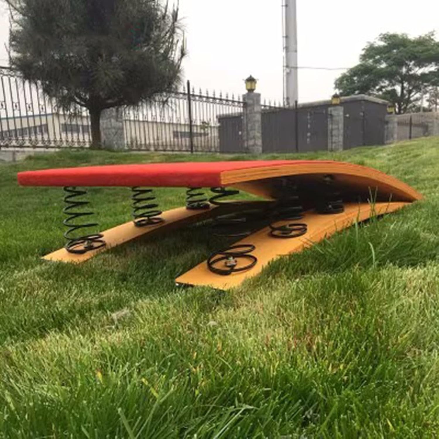 Trampolino di ausilio per il salto: progettato per bambini più grandi, giovani ginnasti e adulti che praticano il salto, questo trampolino è reattivo e riduce notevolmente l'affaticamento dei giocatori. Sports Springboard Body RehabilitationNon è solo un'attrezzatura ginnica utilizzata per migliorare la tecnica di equitazione, praticare lo smontaggio e l'atterraggio, l'arte sportiva e lo stretching. Ampiamente utilizzato: questo trampolino curvo è ideale per l'allenamento, le competizioni, l'intrattenimento quotidiano, ideale per casa, scuola, cantina, sala giochi, palestra, centro di ginnastica, club sportivi e altri ambienti. Robusto e: realizzato in legno duro spesso, rivestito in feltro. 6 molle metalliche consentono un supporto superiore e un utilizzo ottimale. 120 cm (47,2 pollici) di lunghezza, 60 cm (23,6 pollici) di larghezza, 26 cm (10,2 pollici) di altezza dall'estremità più alta. Capacità di carico: < 90 kg (198 libbre). Altezze graduali: trampolino curvo. Grazie alla piattaforma gradualmente inclinata, gli atleti possono posizionare i piedi in una posizione più comoda.