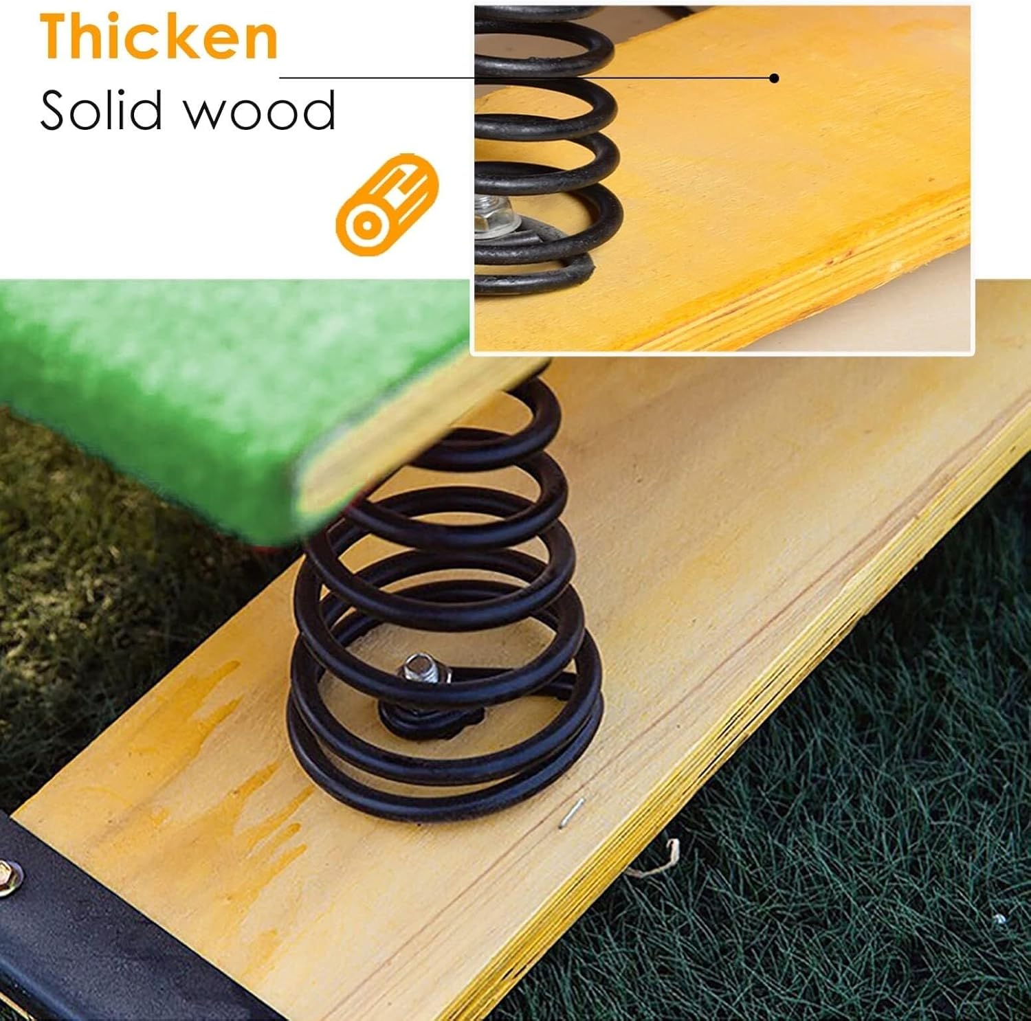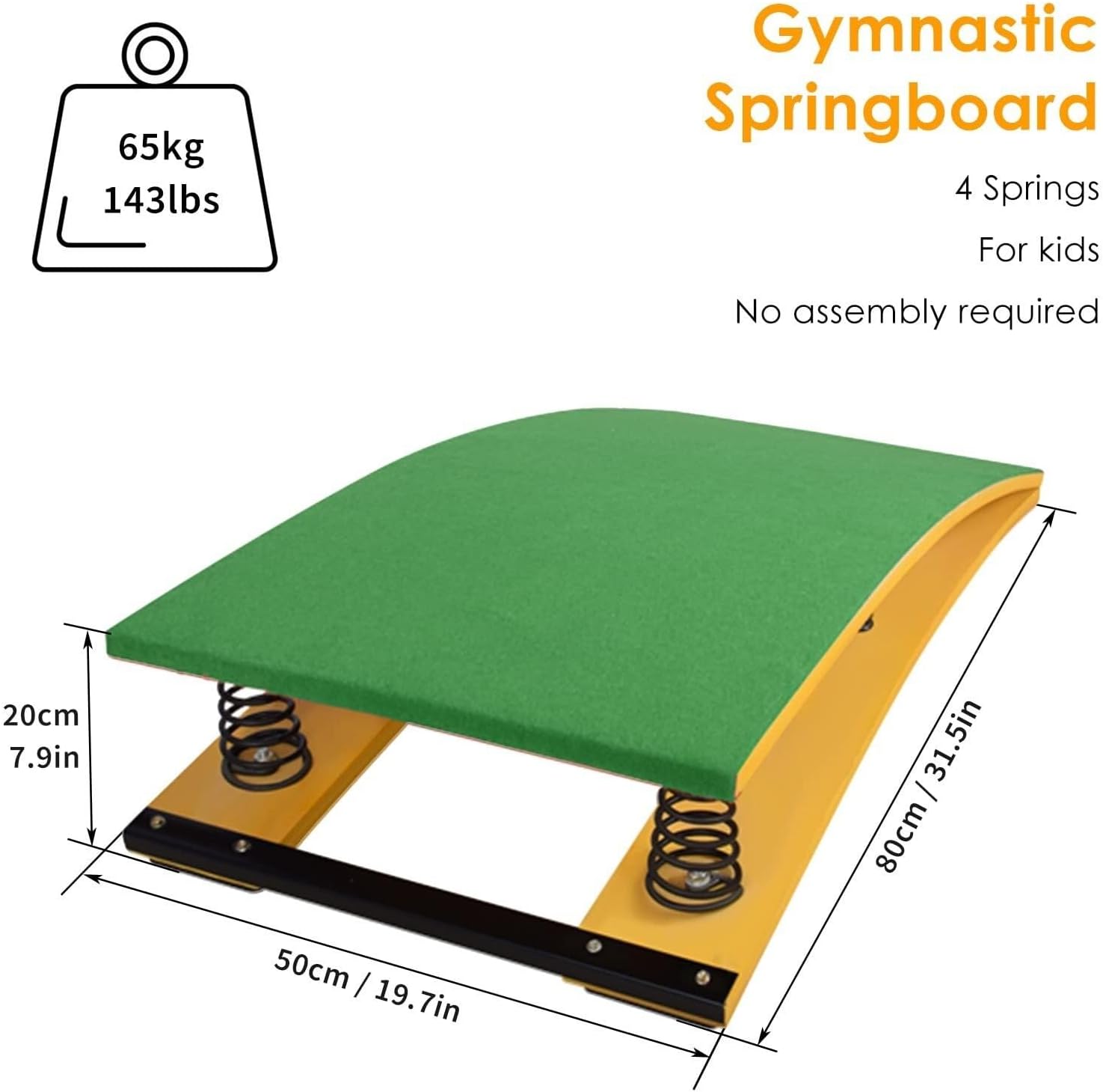 Struttura in legno massello: realizzata in legno massello spesso, questa pedana offre una capacità di carico superiore e una lunga durata, testata per resistere a un uso intenso. Molle in acciaio ad alta resistenza: dotate di molle in acciaio ad alta tenacità per un'elasticità e una resilienza eccezionali, garantendo un'esperienza di salto stabile e sicura. Superficie in feltro antiscivolo: il pannello principale è dotato di feltro antiscivolo e resistente all'usura, che garantisce una presa sicura e comfort ai bambini durante gli esercizi di volteggio e capriole. Attrezzatura multiuso: perfetta per esercitarsi nel volteggio, nella discesa, nel salto in alto e nell'allenamento alla sbarra. Ideale per ginnasti, atleti e appassionati di fitness. Supporta lo sviluppo fisico: favorisce lo sviluppo delle ossa e del corpo nei bambini, aumentando al contempo la fiducia in sé stessi, la coordinazione e la forma fisica generale. Adatto per l'uso a casa, a scuola e in palestra.