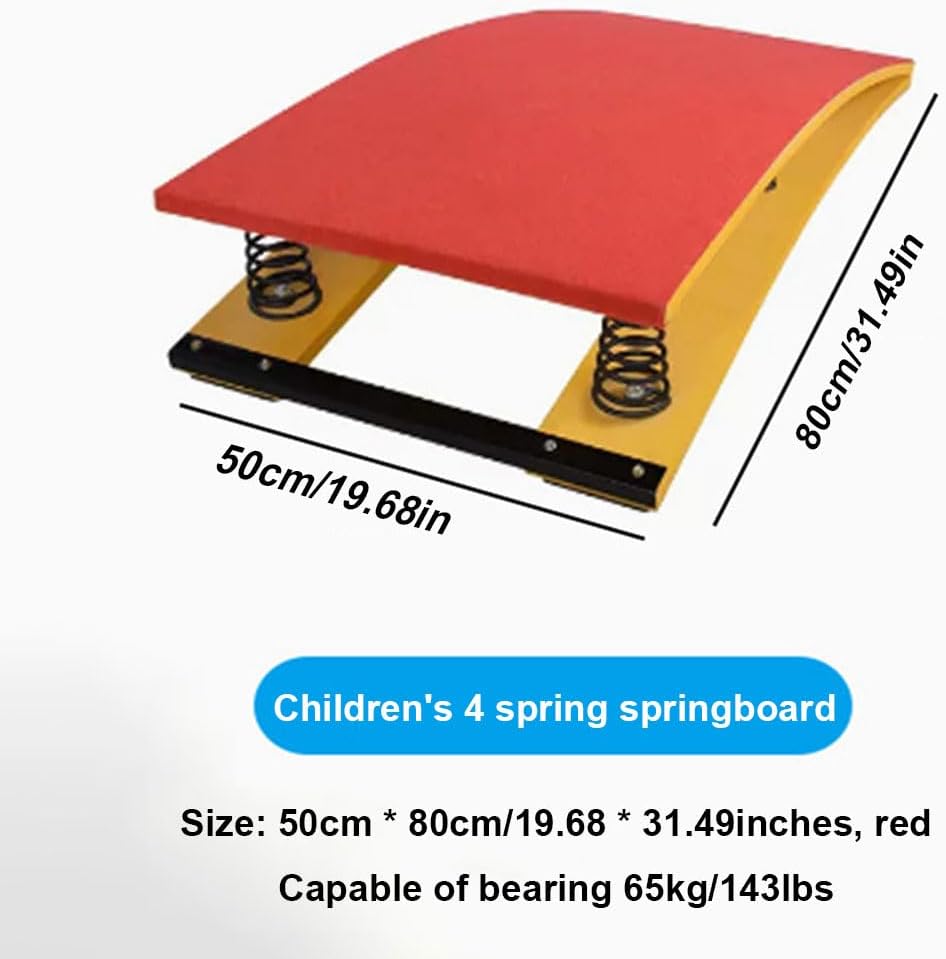 【Feltro superiore antiscivolo】- La superficie del trampolino è ricoperta di feltro antiscivolo e resistente all'usura, consentendo a entrambi i piedi di mantenere una buona presa durante il salto. La parte inferiore è progettata con un cuscinetto antiscivolo scanalato per evitare che il trampolino si muova durante l'uso e per proteggere il pavimento da eventuali danni. 【Tavola di legno】- Il trampolino sportivo per impieghi gravosi è realizzato in materiale di legno duro spesso, che offre un supporto eccellente e non è facile da rompere. La molla ad alta tenacità collega le tavole di legno con buona elasticità, fissate con viti e piastre in acciaio ispessito, che non sono facili da arrugginire e deformare. 【Attrezzatura per il salto a ostacoli】- Il trampolino è un'attrezzatura per il salto utilizzata nella ginnastica a ostacoli per aiutare gli atleti a migliorare l'altezza del salto e ad eseguire movimenti tecnici complessi negli sport aerei, ottenendo un eccellente completamento delle competizioni. 【Dimensioni】- Disponibile in varie dimensioni e stili, che possono soddisfare le esigenze di diverse fasce d'età e intensità di allenamento. Dimensioni: 50 * 80 cm / 19,68 * 31,49 pollici, 60 * 120 cm / 23,62 * 47,24 pollici. Stile: 4 molle. Colore: verde, rosso. 【Ampiamente utilizzato】 - Questo trampolino a molla è adatto a bambini, adolescenti e adulti per competizioni sportive, allenamenti di ginnastica, salto in alto, salto in lungo, capriola all'indietro e altri esercizi. Per famiglie, barre di ginnastica, sale giochi, percorsi di allenamento a ostacoli, palestre domestiche e altro ancora.
