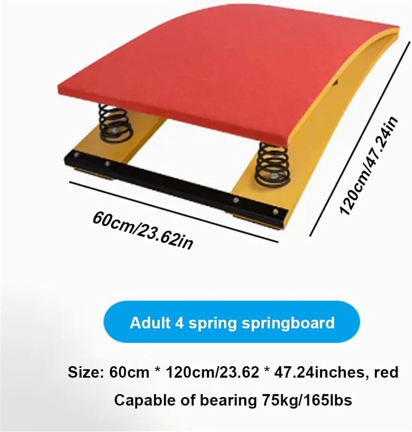 【Feltro superiore antiscivolo】- La superficie del trampolino è ricoperta di feltro antiscivolo e resistente all'usura, consentendo a entrambi i piedi di mantenere una buona presa durante il salto. La parte inferiore è progettata con un cuscinetto antiscivolo scanalato per evitare che il trampolino si muova durante l'uso e per proteggere il pavimento da eventuali danni. 【Tavola in legno di alta qualità】- Il trampolino sportivo per impieghi gravosi è realizzato in materiale di legno duro spesso, che offre un supporto eccellente e non è facile da rompere. La molla ad alta tenacità collega le tavole di legno con buona elasticità, fissate con viti di alta qualità e piastre in acciaio ispessite, che non sono facili da arrugginire e deformare. 【Dimensioni】- Questo trampolino da ginnastica è disponibile in varie dimensioni e stili, che possono soddisfare le esigenze di diverse fasce d'età e intensità di allenamento. Dimensioni: 50 * 80 cm / 19,68 * 31,49 pollici, 60 * 120 cm / 23,62 * 47,24 pollici. Stile: 4 molle. Colore: verde, rosso. 【Attrezzatura per il salto a ostacoli】- Il trampolino è un'attrezzatura per il salto utilizzata nella ginnastica a ostacoli per aiutare gli atleti a migliorare l'altezza del salto e ad eseguire movimenti tecnici complessi negli sport aerei, ottenendo un eccellente completamento delle competizioni. 【Servizio】I nostri prodotti vengono rigorosamente selezionati prima della spedizione, ci impegniamo per una maggiore soddisfazione. In caso di domande sul nostro prodotto, non esitate a contattare il nostro team di assistenza clienti