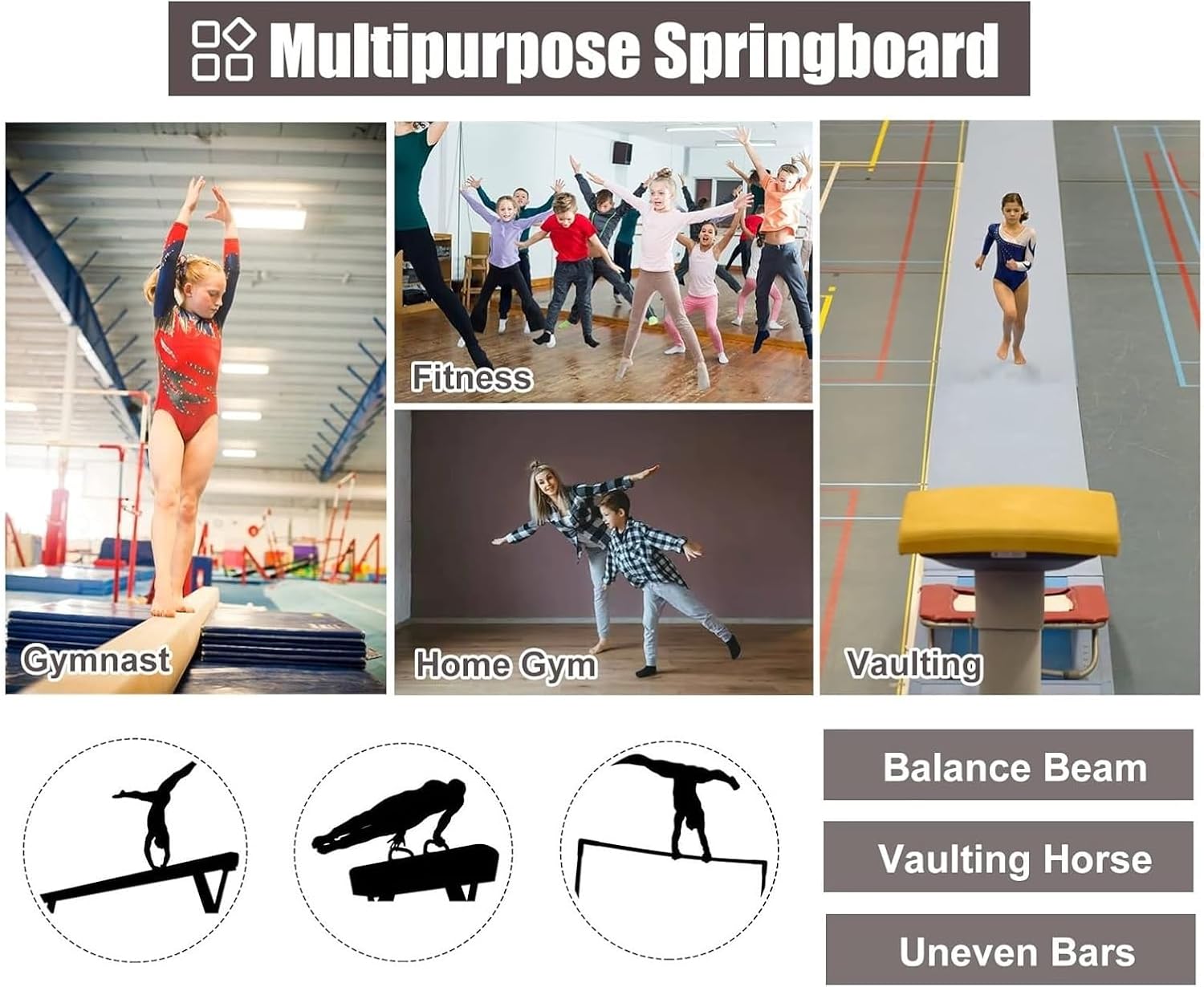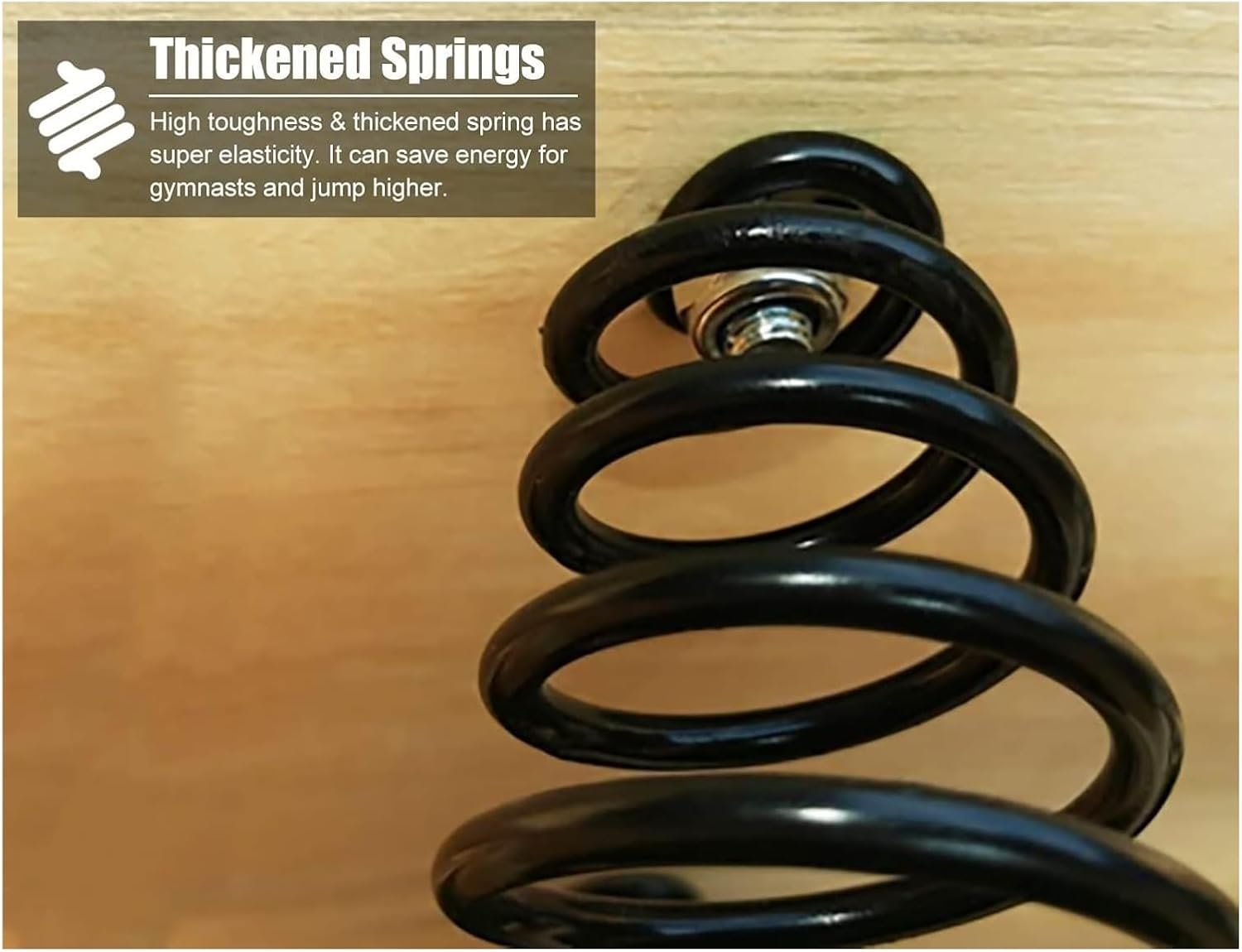 ??【Trampolino da ginnastica junior resistente】Il trampolino è realizzato in legno duro resistente, con bordi lisci e senza sbavature, il che garantisce che non si deformi o si crepi facilmente, rendendolo perfetto per un uso quotidiano soddisfacente. ??【Molla in acciaio ad alta elasticità】La molla ispessita e ad alta tenacità è caratterizzata da un'elasticità e una resilienza eccellenti, garantendo l'assenza di deformazioni e ruggine. Questo aiuta i ginnasti a risparmiare energia e a raggiungere salti più alti, rendendola ideale per la ginnastica giovanile. ??【Tappeto superiore antiscivolo e cuscinetto inferioreIl tappeto antiscivolo sulla parte superiore garantisce aderenza e comfort durante l'uso, prevenendo lesioni ai piedi, mentre i cuscinetti in gomma sulla parte inferiore assicurano che il trampolino rimanga stabile e non scivoli durante l'uso. ??【Trampolino sportivo versatile e strumento di riabilitazioneQuesto trampolino non è solo essenziale per migliorare la tecnica di volteggio a cavallo e per esercitarsi nello smontaggio e nell'atterraggio nella ginnastica giovanile, ma serve anche come strumento per lo stretching e la riabilitazione del corpo prima e dopo gli allenamenti. 【Ampia applicazione】Adatto sia per attività all'aperto che al chiuso, come ginnastica, arti marziali, volteggio, esercizi alla barra orizzontale, allenamento atletico e pratica di tumbling. Può essere utilizzato in palestre domestiche, sale giochi, scantinati, scuole, centri di ginnastica o club sportivi.