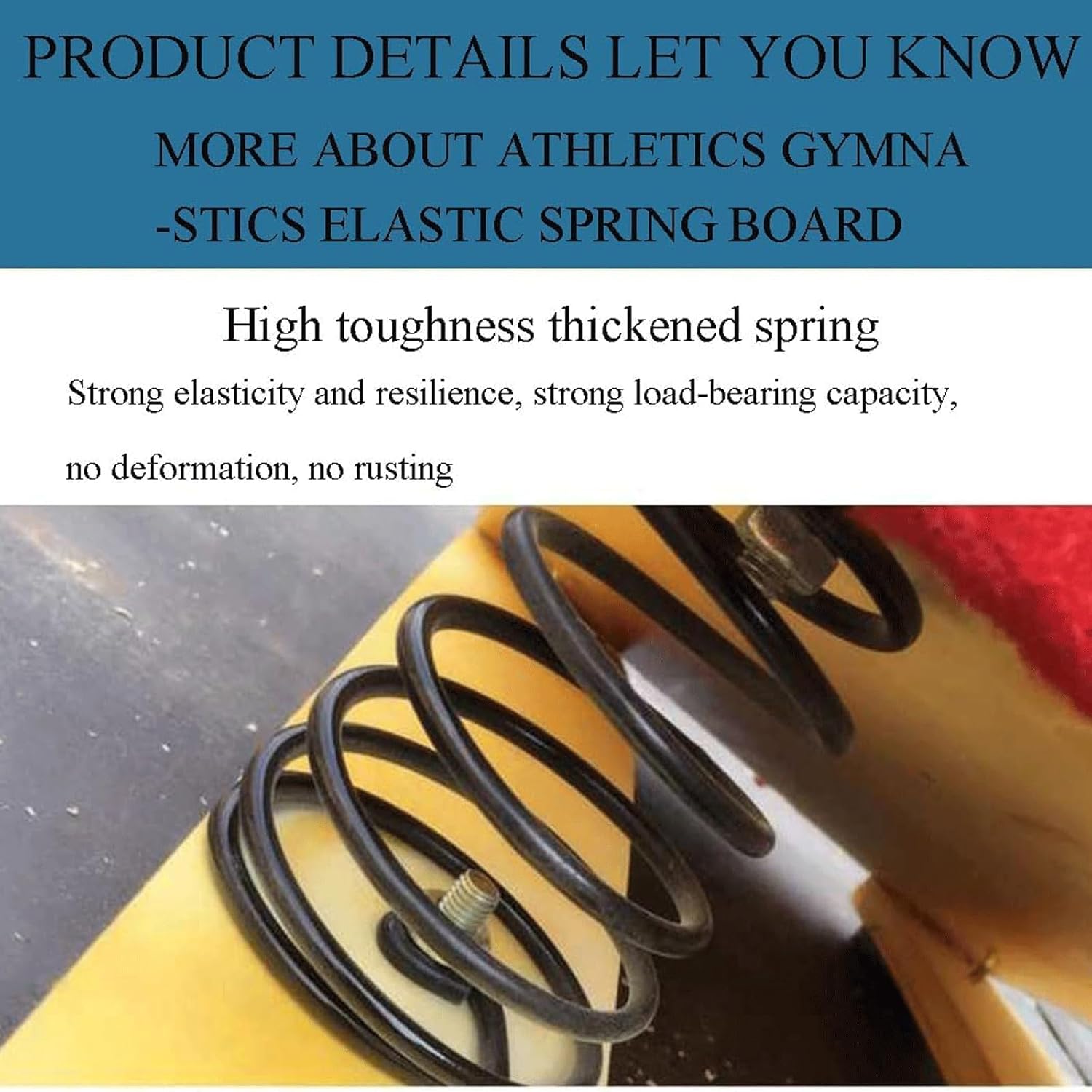 Le molle spesse ad alta tenacità hanno un'elasticità e una resilienza extra, sono sicure e durevoli e consentono un supporto superiore e un utilizzo ottimale. Quattro molle antiruggine impediscono la formazione di ruggine. L'elevata tenacità e l'elasticità delle molle ispessite le rendono sicure, durevoli, reattive e riducono notevolmente l'affaticamento degli atleti. L'attrezzatura ginnica robusta e durevole viene utilizzata per ispessire la tavola, mentre la superficie del tappeto antiscivolo resistente all'usura è piatta e non si danneggia facilmente. Robusto e durevole: legno spesso e duro, feltro antiscivolo di alta qualità sulla superficie, molla in acciaio al manganese spessa all'interno, elevata capacità di carico, nessuna deformazione e fissaggio con piastre in acciaio antiruggine. Trampolino assistito: questo trampolino è perfetto per allenare la salita alle barre asimmetriche o per esercitarsi negli atterraggi in discesa, oppure per l'uso nei corsi di ginnastica artistica o per migliorare le abilità di volteggio a casa.
