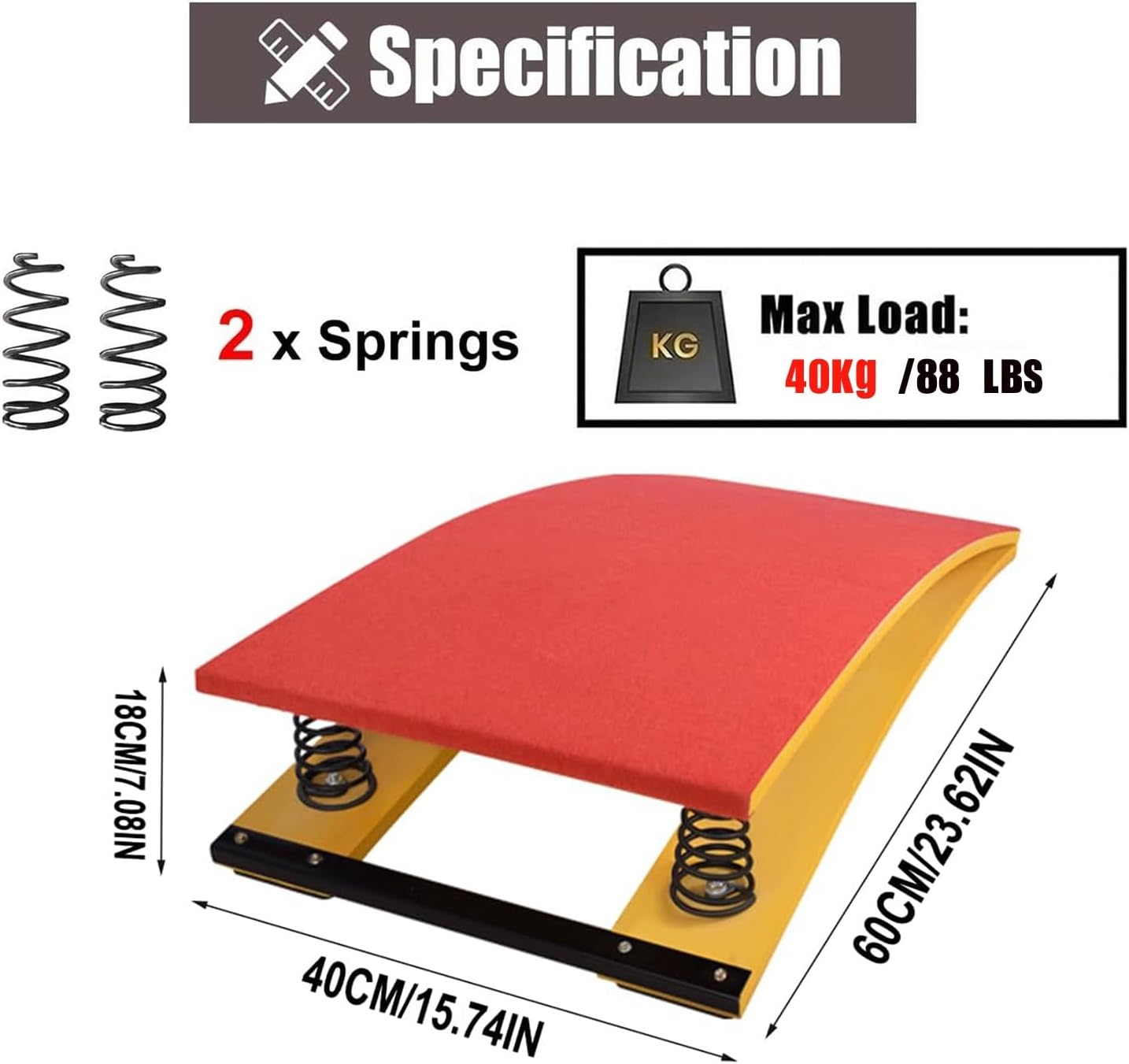 Robusto: la piastra a molla è realizzata in legno massello e feltro antiscivolo di alta qualità, antiscivolo, assorbente del sudore, sicuro, stabile, indeformabile e non danneggia i piedi. Molla ad alta tenacità: questo trampolino sportivo è realizzato con una molla ad alta tenacità, che ha una buona elasticità e non si arrugginisce o si deforma facilmente, offrendo una migliore sensazione di rimbalzo. La tavola di legno e la molla sono fissate con una piastra in acciaio ispessito e viti. Il cuscinetto in plastica con scanalature antiscivolo nella parte inferiore del trampolino è sicuro e non si muove. Tappetino antiscivolo in gomma: un tappetino antiscivolo scanalato è posizionato sul fondo di questo trampolino da ginnastica per aumentare la resistenza al contatto e prevenire lo scivolamento. Può essere utilizzato con sicurezza. I quattro angoli della pedana sono inoltre protetti da gomma per evitare collisioni. USI MULTIPLI: Questo eccellente trampolino può essere utilizzato non solo per arti sportive, bilanciere, esercizi di capriole, stretching, allenamento a ostacoli, allenamento di atletica leggera, ma può anche migliorare la forma del corpo, rafforzare i muscoli e migliorare la coordinazione del corpo. SERVIZIO: Diamo grande importanza all'esperienza di acquisto dei nostri clienti. Per qualsiasi domanda, non esitate a contattarci, vi risponderemo il prima possibile entro 24 ore.