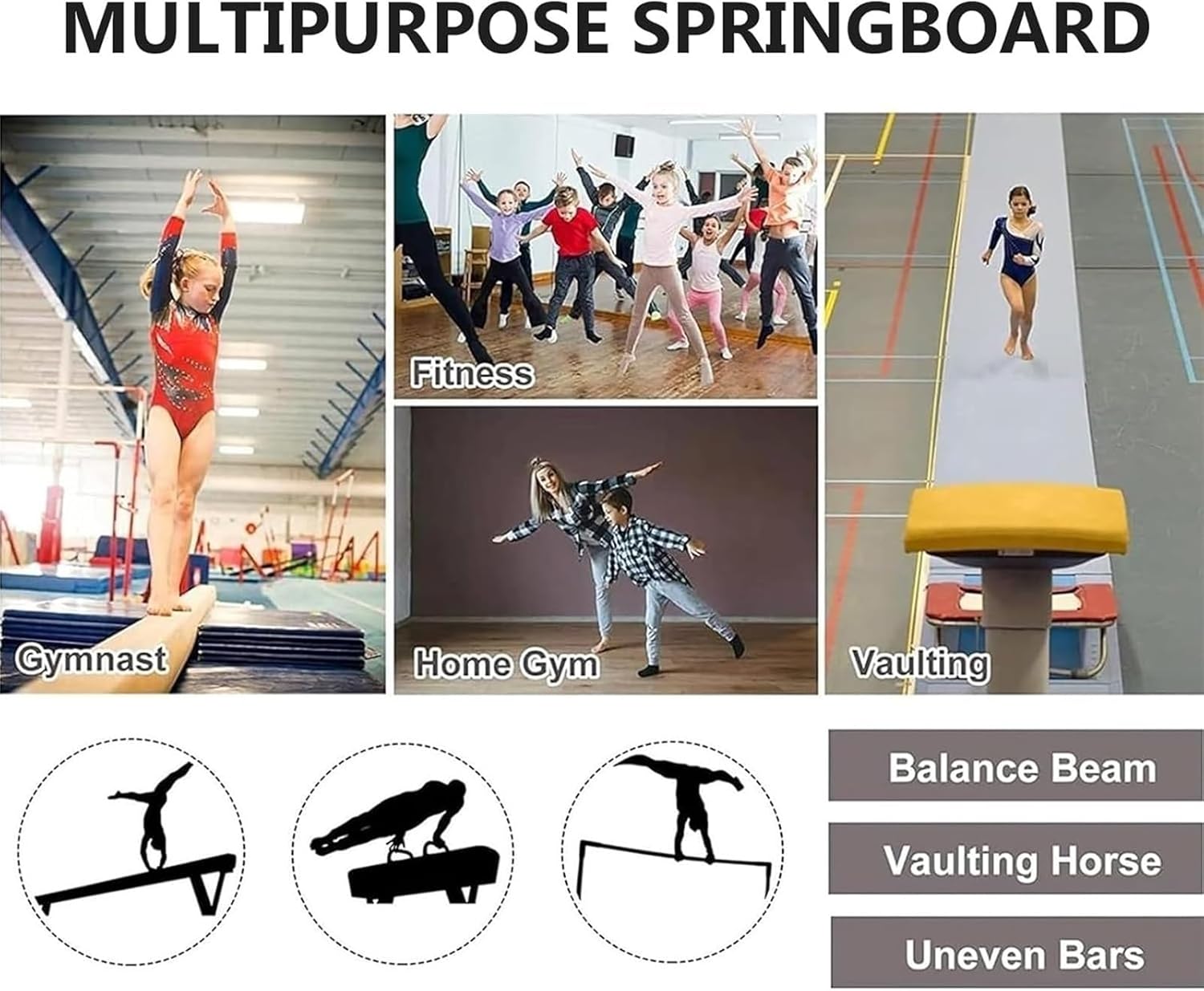 RESISTENTE E AFFIDABILE: il trampolino da ginnastica è realizzato con materiali di alta qualità per garantirne durata e affidabilità. Progettato per un uso intenso, questo trampolino è in grado di resistere ai rigori dell'allenamento e delle competizioni di ginnastica ad alta intensità senza deformarsi o perdere il suo rimbalzo. La sua struttura robusta garantisce una piattaforma stabile e sicura per ginnasti di tutte le età e livelli di abilità. PRESTAZIONI MIGLIORATE: Questo trampolino da ginnastica è dotato di due molle che offrono prestazioni migliorate e un rimbalzo più elevato. Il sistema a doppia molla offre maggiore supporto e flessibilità, consentendo ai ginnasti di raggiungere salti più alti e movimenti più dinamici. Le molle sono appositamente progettate per fornire una tensione e una reattività perfette per aiutare i ginnasti a raggiungere nuove vette nei loro movimenti. DESIGN CON POGGIAPIEDI ANTISCIVOLO: i poggiapiedi antiscivolo sul fondo del trampolino impediscono al trampolino di scivolare grazie alla superficie liscia del pavimento, garantendo agli atleti di saltare in sicurezza. SICURO E FACILE DA USARE: il trampolino da ginnastica è progettato pensando alla sicurezza. Il suo design curvo offre una superficie di atterraggio sicura e stabile per evitare che i ginnasti scivolino o cadano. La superficie del trampolino è rivestita in feltro antiscivolo. Questo permette ai piedi di aderire bene durante il salto e fornisce anche una superficie confortevole. 【Servizio】I nostri prodotti vengono rigorosamente selezionati prima della spedizione, ci impegniamo per una maggiore soddisfazione. In caso di domande sul nostro prodotto, non esitate a contattare il nostro team di assistenza clienti