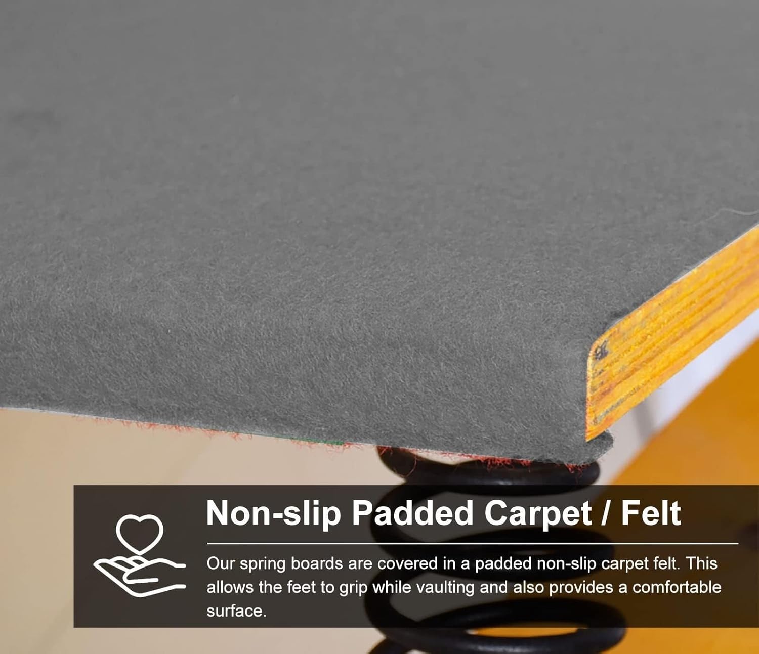 Resistente e stabile: realizzato in legno robusto per garantire una struttura durevole e rivestito in feltro per impedire agli atleti di scivolare durante il salto, offrendo un ambiente di allenamento e competizione affidabile. Elasticità e prestazioni di rimbalzo: realizzato in materiale elastico con buone prestazioni di elasticità e rimbalzo, garantisce agli atleti una spinta sufficiente durante il salto per eseguire manovre più difficili. Migliora le capacità di salto: grazie alla sua struttura elastica ben progettata, può migliorare la capacità di salto degli atleti e farli rimanere in aria più a lungo, in modo che abbiano l'opportunità di completare movimenti ginnici più complessi. Facile da trasportare: il trampolino da ginnastica è progettato per essere leggero e facile da trasportare, il che è comodo per gli atleti, sia per cambiare sede di allenamento che per prepararsi alle gare. Molteplici utilizzi: oltre all'allenamento e alle gare di ginnastica, può essere ampiamente utilizzato anche in altri sport che richiedono l'assistenza del salto, come i tuffi, il trampolino, ecc., dimostrando il suo potenziale di applicazione flessibile e versatile.