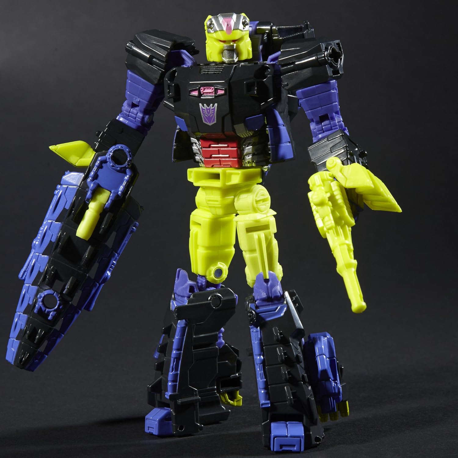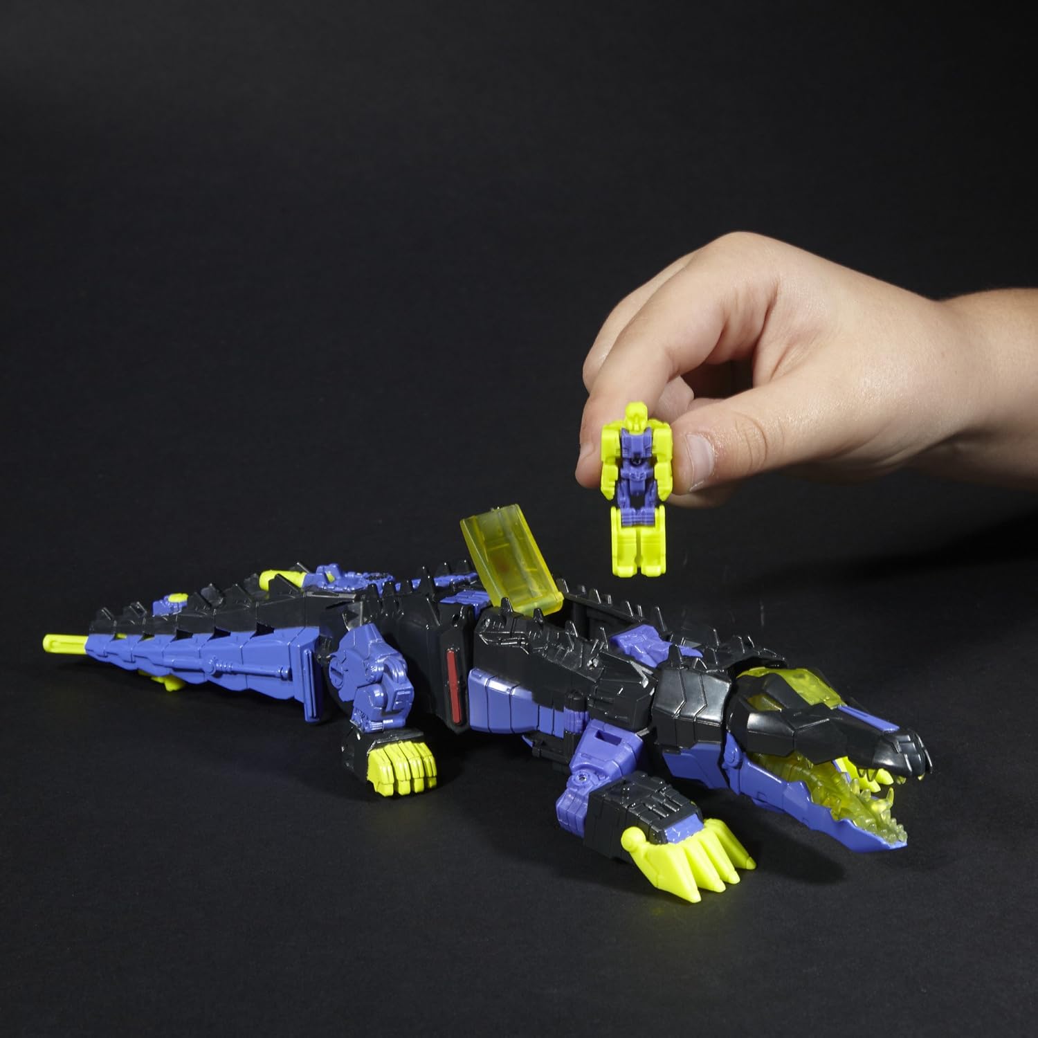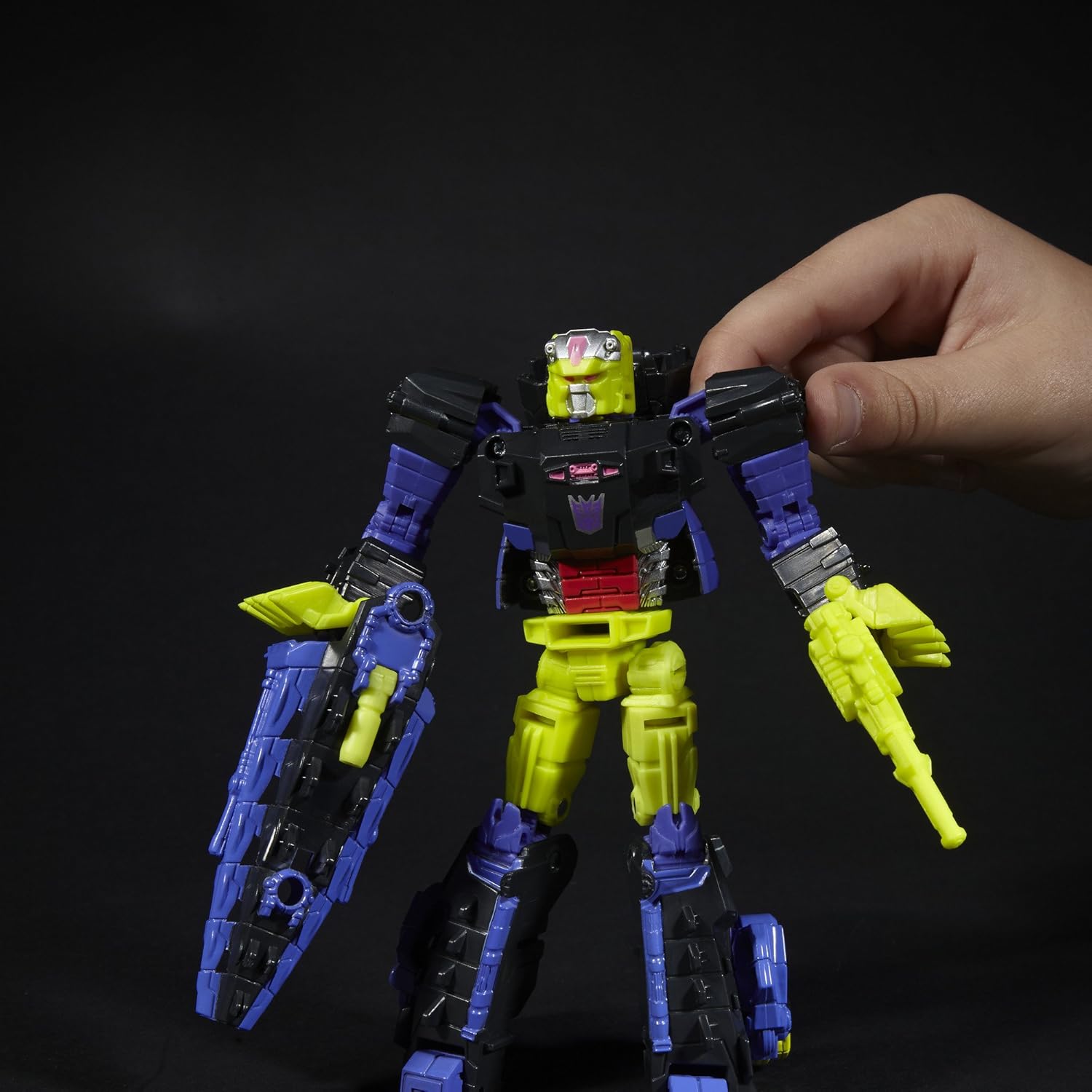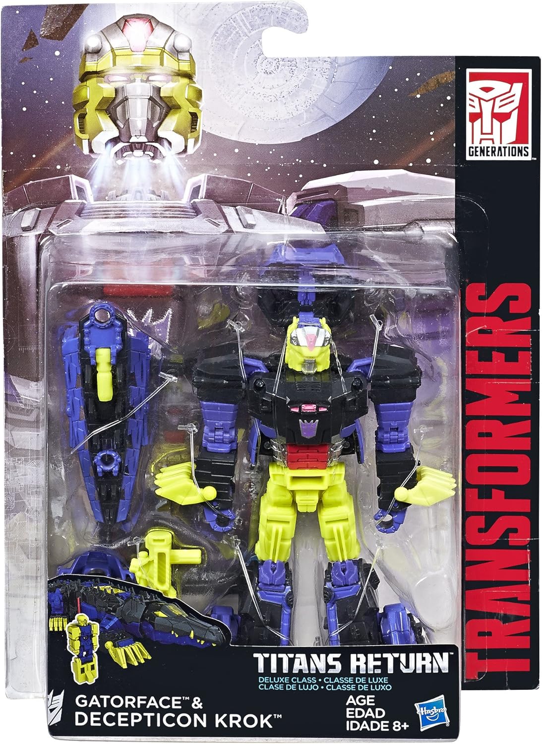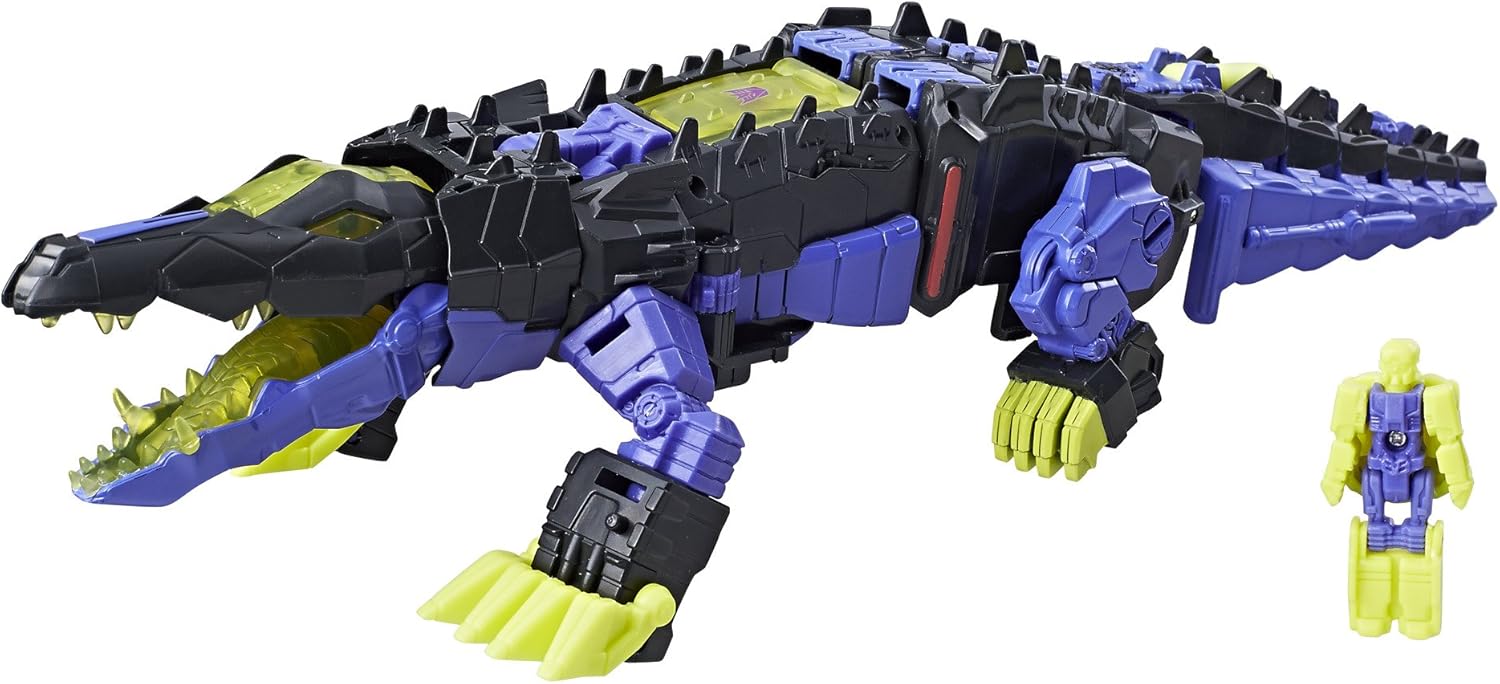 Deluxe Class Decepticon Krok e Titan Master Gatorface figure La figura di Gatorface diventa la testa della figura Decepticon Krok La figura Titan Master funziona con altre figure Titans Return (ciascuna venduta separatamente) Unisciti per potenziare la battaglia Include la figura Deluxe Class Decepticon Krok, la figura Titan Master Gatorface, 2 accessori per armi, carta personaggio con specifiche tecniche e istruzioni.