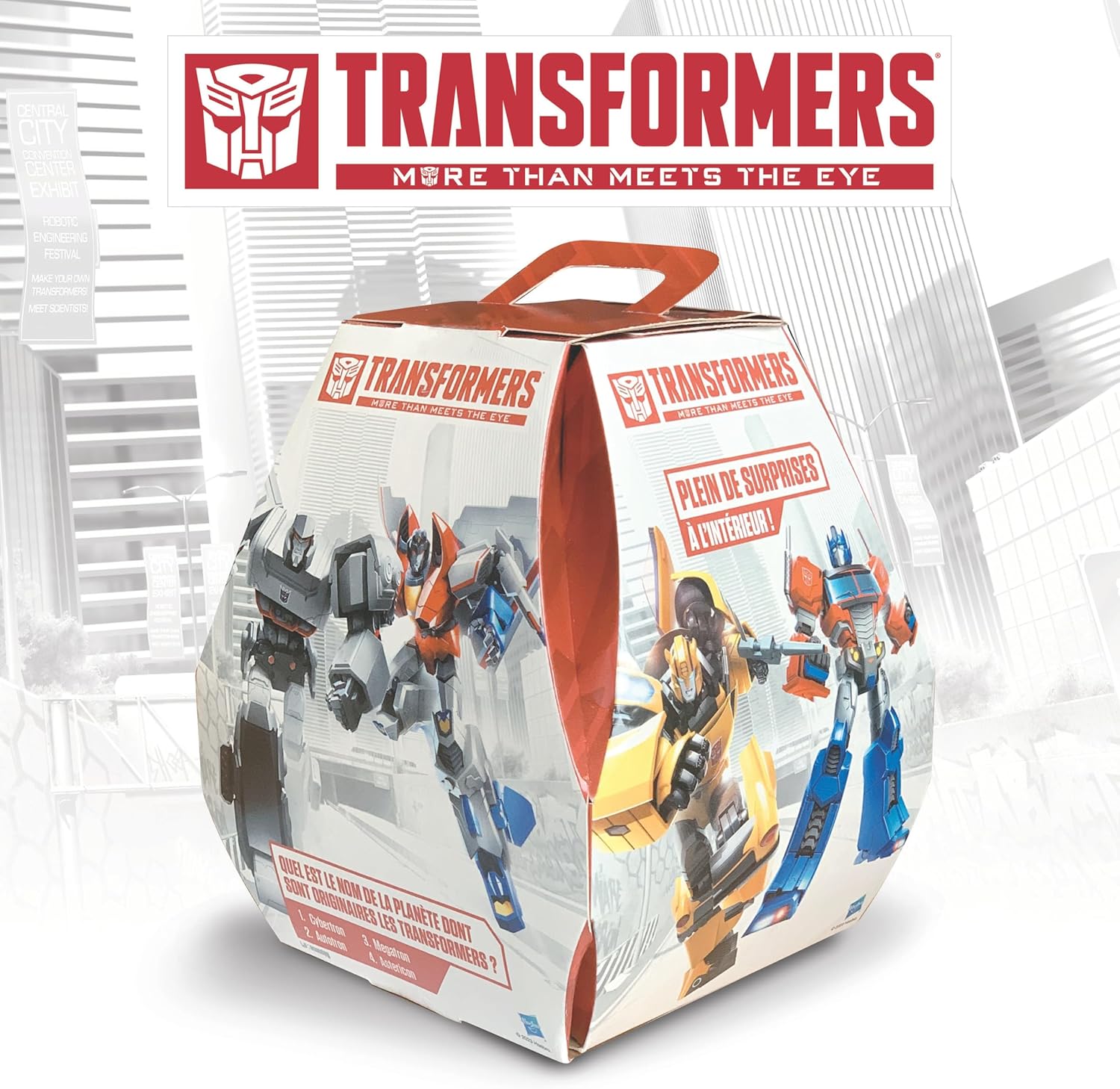 I bambini potranno entrare nel mondo dei Transformers e immaginare molte nuove storie grazie alla scatola a sorpresa Transformers! Scatola sorpresa Transformers con figurine, adesivi e poster. A partire dai 4 anni Il regalo ideale di compleanno o Pasqua *Immagini non contrattuali. L'assortimento di prodotti all'interno può variare da quanto illustrato.