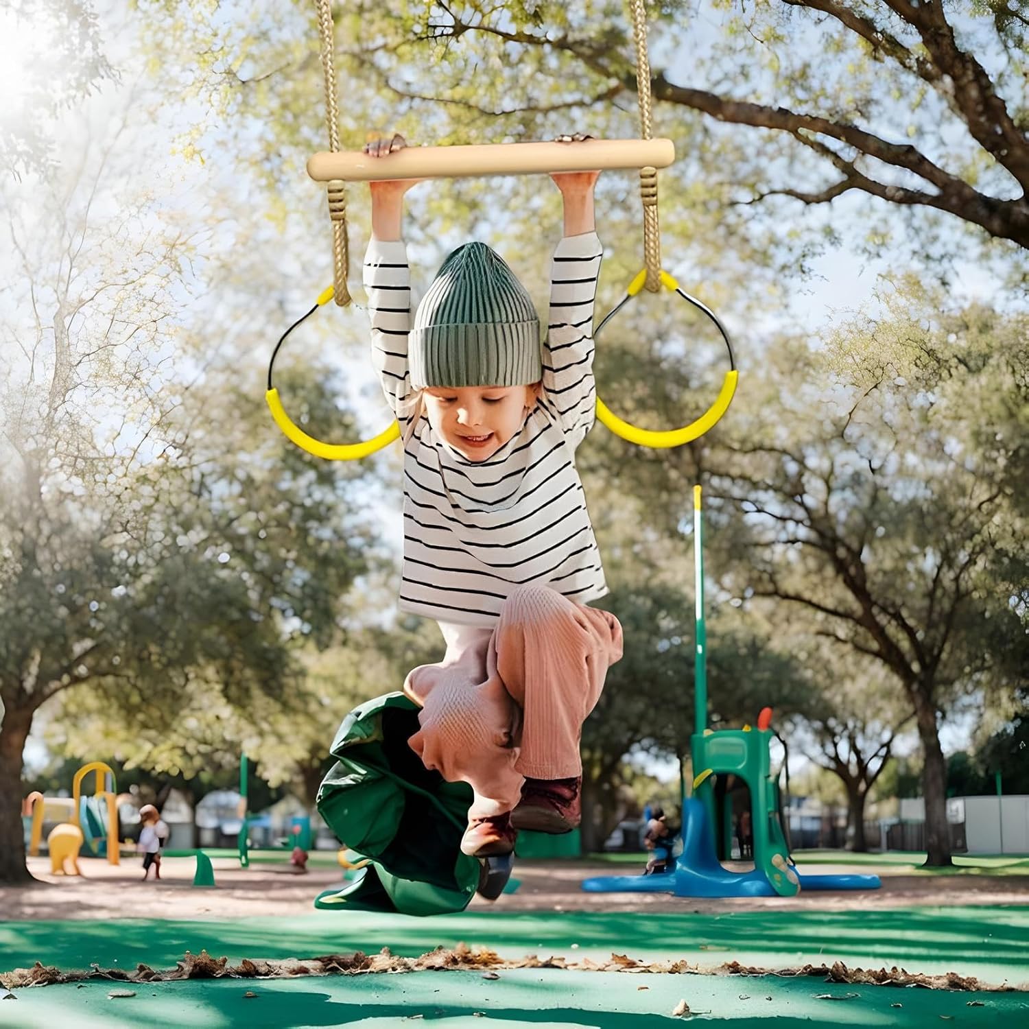 Installazione Pratica: Configurazione rispettosa a corteccia tramite fissaggio non invasivo e attacco senza perforazioni, montaggio modulare regolabile per assemblaggio facile e veloce in minimo senza attrezzi aggiuntivi Durabilità Estesa: Il telaio metallico ad alta resistenza assicura robustezza in ambienti esterni, supporta l'uso frequente mantenendo stabilità su tronchi/porte, con componenti anti-usura per lunga durata senza compromettere sicurezza o funzionalità Design Esercizio Giocoso: Con funzionalità a doppia modalità di presa oscillante, supportano miglioramento controllo corporeo, attività fisica ludica e coordinazione del core, potenziando lo sviluppo a superiore durante l'uso regolare. Gioco Dinamico: Anelli che incoraggiano il gioco sensoriale divertente e la stimolazione 'equilibrio, favorendo naturalmente la consapevolezza spaziale con passaggi fluidi tra modalità attive e passive per maggiori opportunità esplorative Uso Versatile: Con compatibilità multi-albero e design modulare, questo set da gioco esterno adattabile crea una struttura di supporto ideale per zone giochi regolabili, per avventure in giardino e configurazioni multi-scenario garantendo montaggio flessibile.