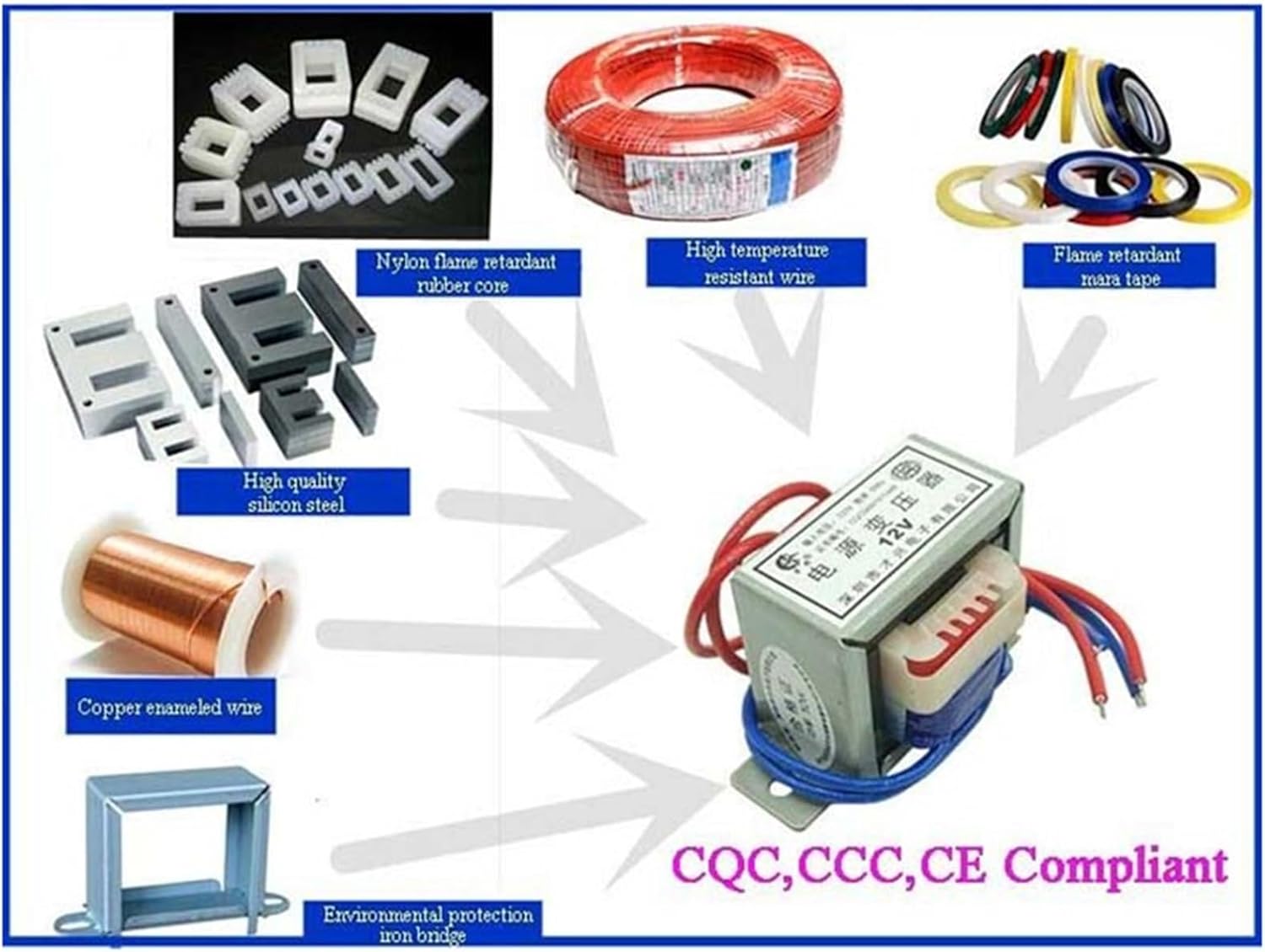 Trasformatore di potenza EI35 CA 6 V 9 V 12 V 15 V 18 V 24 V 30 V 36 V Tensione di uscita 2 W Nucleo in rame Ingresso 220 V Singola/doppia tensione in rame