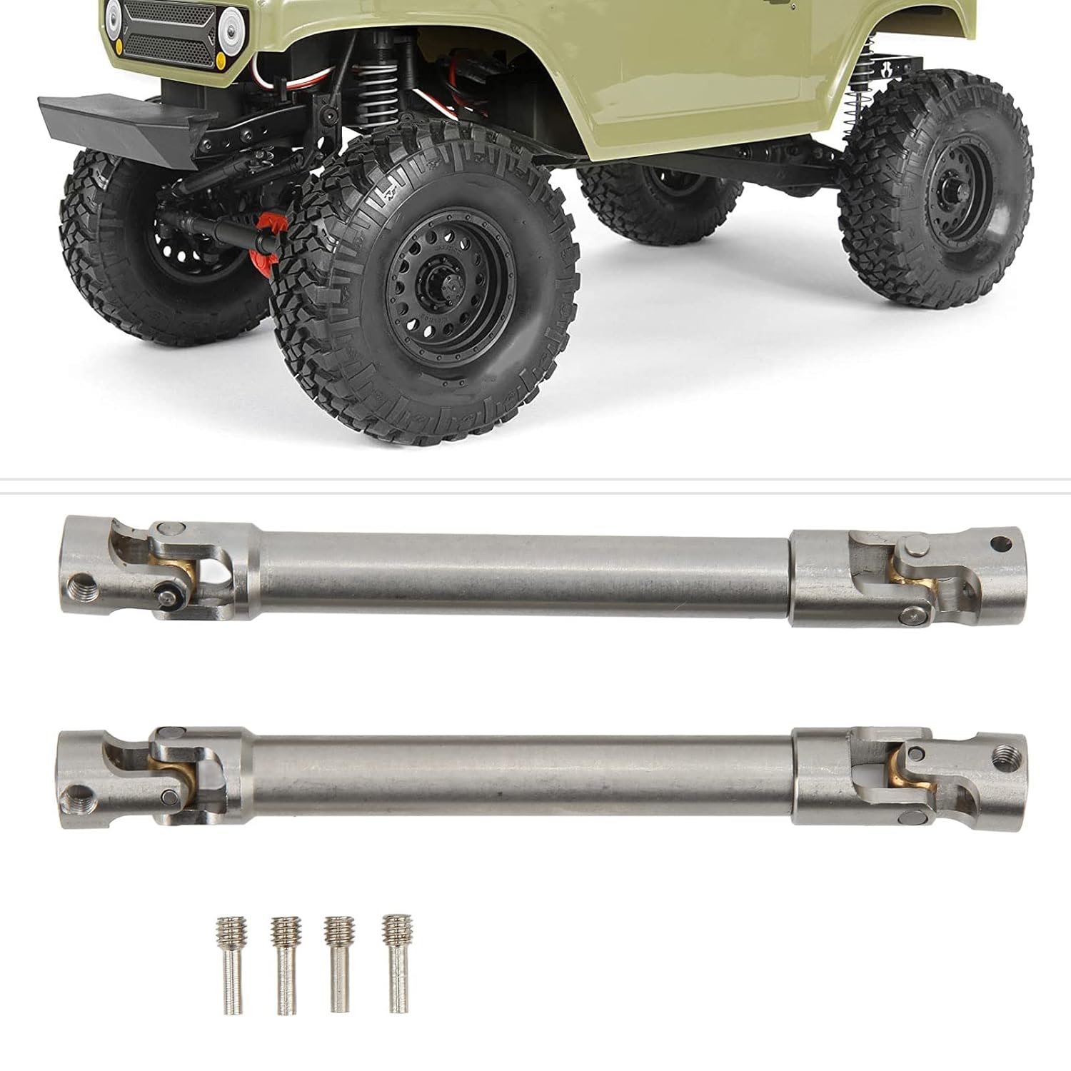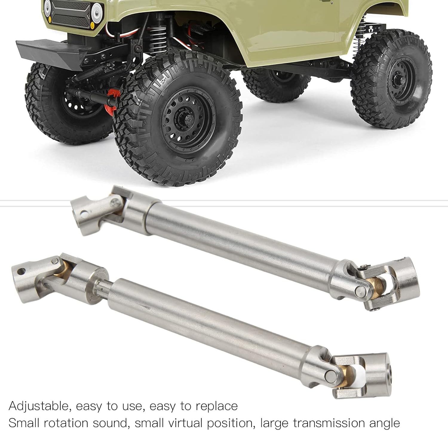 [Materiale durevole in acciaio inossidabile] Realizzato in acciaio inossidabile premium, questo albero di azionamento è costruito per durare, a prova di ruggine e resistente all'usura per l'uso a lungo termine. [Angolo di trasmissione liscio] con una struttura universale di croci con perle di ottone rotonde che garantiscono un suono di rotazione minima, posizioni virtuali e un ampio angolo di trasmissione. [Facile da installare] trasmettere senza sforzo l'alimentazione del motore alle ruote tramite la scatola del cambio e guidare l'albero per generare forza motrice per il veicolo. [Stabilità migliorata] Il design leggero fornisce una stabilità superiore per l'auto RC, garantendo la fiducia nelle prestazioni e nel controllo. [Compatibilità versatile] Regolabile e facile da sostituire, adatto alle auto assiali SCX10 90046 e 1/10 RC, offrendo ampie possibilità di applicazione.