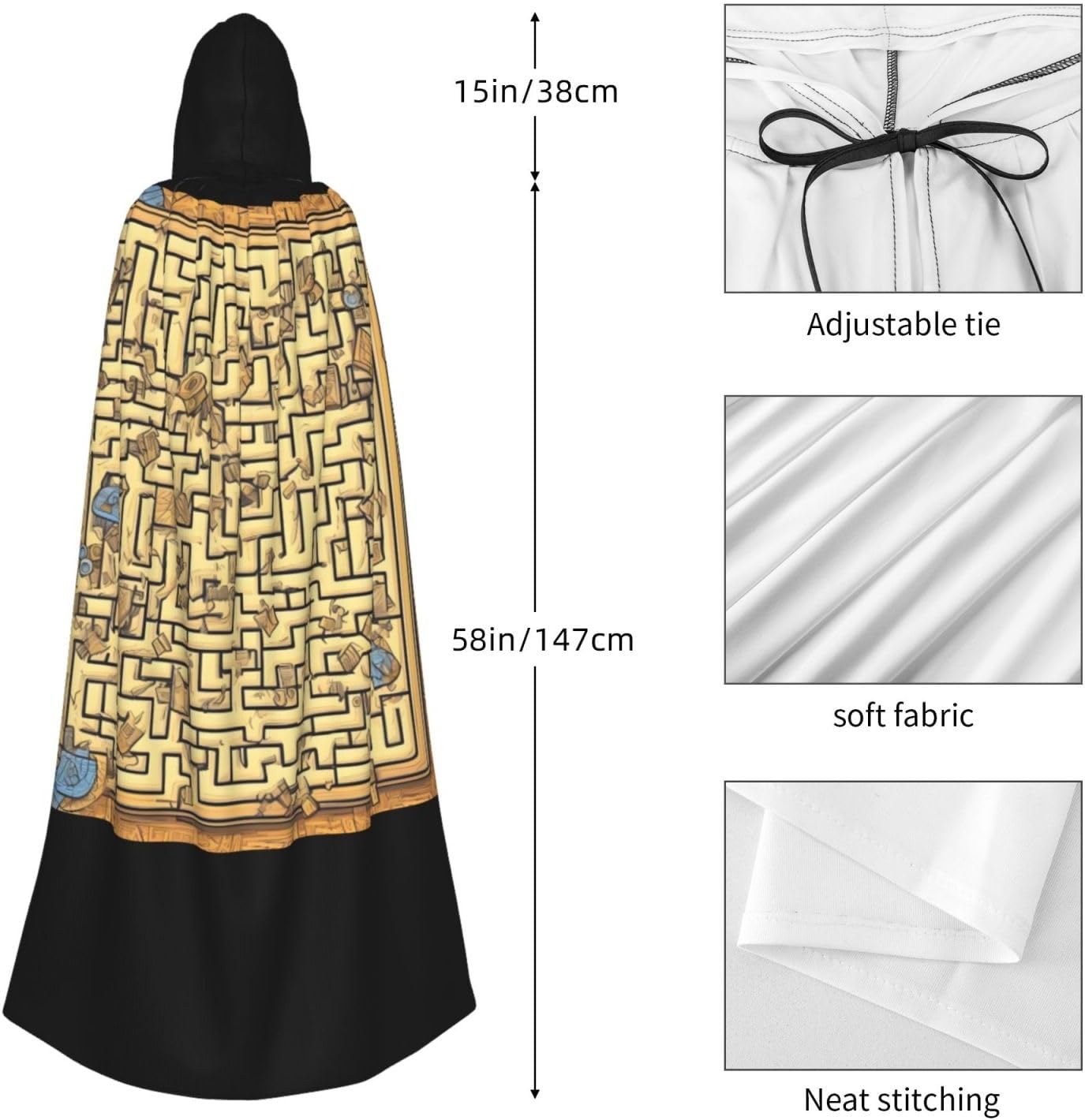 Treasure Maze - Mantello con cappuccio e stampa a larghezza \r Descrizione del materiale: 100% fibra di poliestere (poliestere). \r Prestazioni del prodotto: il mantello con cappuccio oversize è realizzato in tessuto lungo, resistente e non pruriginoso, senza cravatta, senza cerniera, comodo mantello con cappuccio e tessuto lungo, resistente e non prurito) \r Scenari applicabili adatti per Halloween, costumi cosplay, costumi da palco, feste in maschera, feste a tema, balli, convegni di fumetti, ecc. Può essere utilizzato per feste, carnevale, Halloween, feste in costume, ecc. \r Istruzioni di lavaggio: lavabile in lavatrice a mano, facile da pulire e durevole