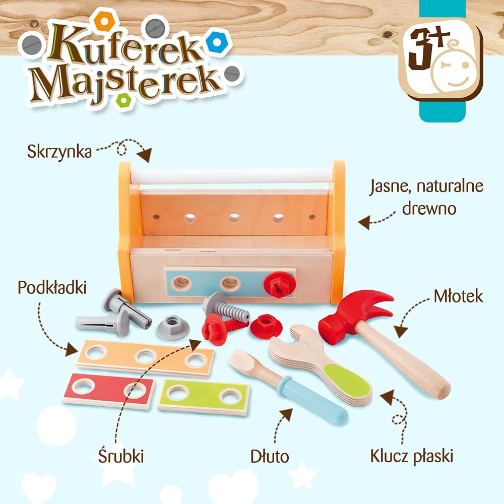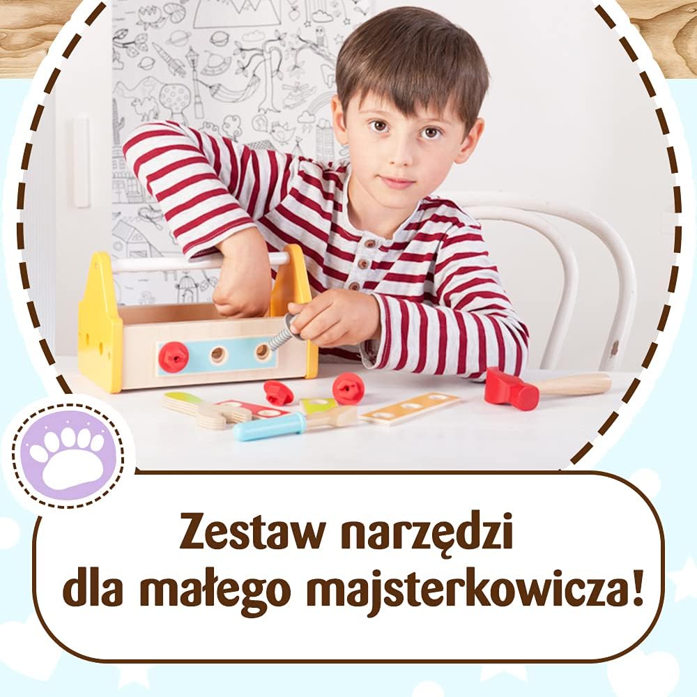 La valigetta fai da te con strumenti colorati è un eccellente giocattolo per lo sviluppo generale Realizzato in legno naturale chiaro e rivestito con colori atossici in tonalità amichevoli Il giocattolo favorisce lo sviluppo della coordinazione occhio-mano e esercita la capacità di focalizzare l'attenzione I materiali utilizzati per creare il giocattolo sono certificati e sicuri per i bambini Regalo ideale per bambini dai 3 anni in su
