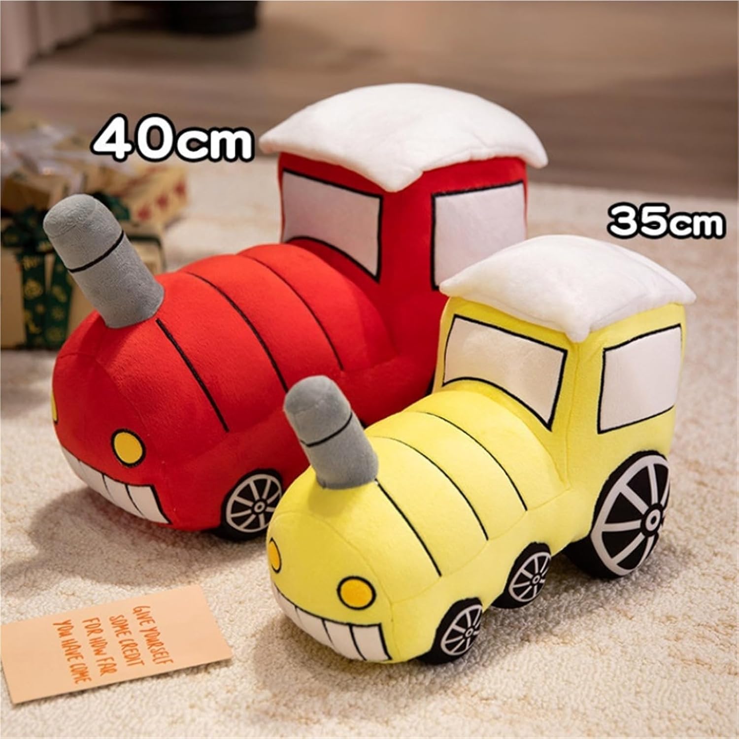[Aspetto]: Progettato come un grazioso trenino, è disponibile in colori vivaci, tra cui blu, giallo, rosso e rosa. Il volto sorridente sulla parte anteriore del trenino è decorato con dettagli vivaci, creando un'atmosfera giocosa e vivace. [Materiale]: Imbottito con cotone PP di alta qualità, è morbido, soffice ed elastico, il che lo rende comodo e delicato sulla pelle. L'esterno in peluche è fine e liscio, non perde peli ed è delicato sulla pelle. [Dimensioni]: Disponibile in due misure: 35 cm (13,8 pollici) e 40 cm (15,7 pollici). Perfetto da abbracciare, trasportare e riporre. [Lavorazione]: Le cuciture sono fini e uniformi, rendendo il prodotto durevole e resistente allo sfilacciamento. Accessori come gli occhielli e le ruote sono saldamente incollati o cuciti insieme for garantire qualità e durata affidabili. [Uso]: Può essere utilizzato come cuscino for coccole e relax, come giocattolo for bambini o come elemento decorativo for la casa, aggiungendo un tocco caldo e giocoso a qualsiasi stanza.