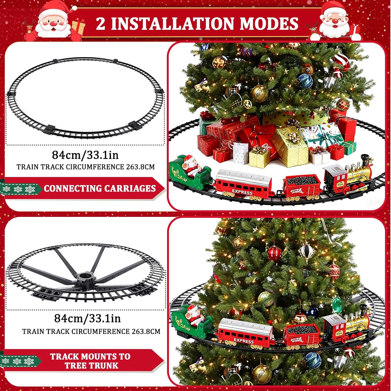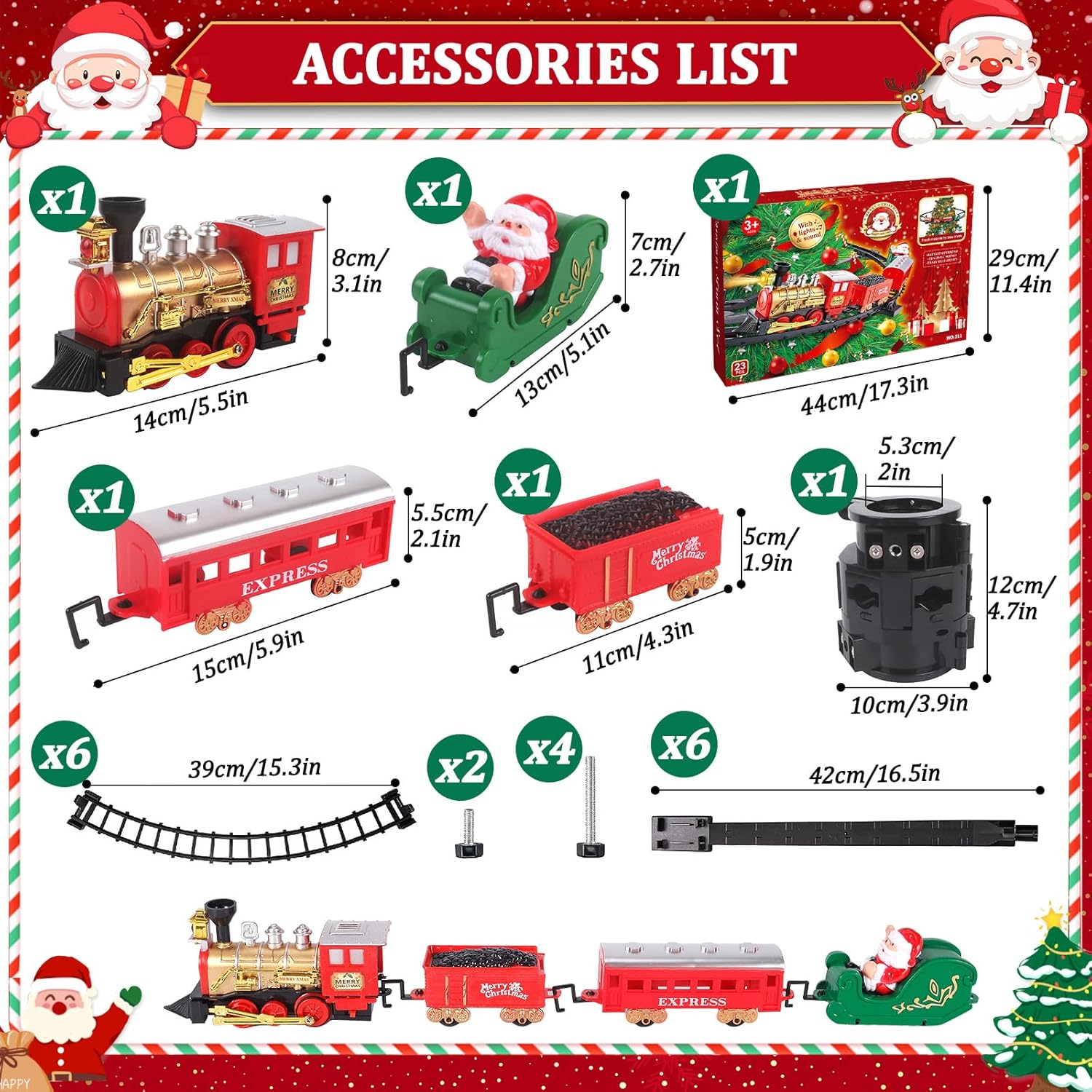 🎄【Nuovo set di treni natalizi creativi】Il kit del treno comprende un treno elettrico, un'auto di Babbo Natale, un'autovettura, un'auto regalo di Natale e questi accessori per i binari. Questo è un treno di lusso per bambini. Puoi utilizzare il trenino per addobbare il tuo albero di Natale e trascorrere delle piacevoli e confortevoli vacanze di Natale con la tua famiglia e i tuoi bambini. ⛄【Robusto e durevole】Questo treno elettrico attorno all'albero di Natale è realizzato in plastica resistente, il treno è progettato con bottoni a pressione, non facile da cadere, installazione stabile, sia installato sull'albero che sotto l'albero, il treno può funzionare senza intoppi, con la simulazione del suono del treno, coinvolgendo bambini e ragazzi sul giocattolo del treno di interesse positivo. 🚂【Due diversi treni di Natale】I nostri set di treni per bambini sono installati sull'albero di Natale e sotto l'albero due tipi di effetti di visualizzazione, puoi scegliere uno dei display in base alle preferenze per soddisfare le preferenze dei bambini. In entrambi i casi i treni sono facili da installare. Questo è un fantastico gioco che stimola l'immaginazione e la creatività del tuo bambino. 🧑🎄【Giocattolo classico】Quando parte il treno di Natale, emetterà un rumore realistico. Il trenino elettrico di Natale corre sui binari installati attorno all'albero di Natale, permettendo ai bambini di godersi appieno questo meraviglioso momento. Il nostro treno di Natale può essere impostato per attivare o disattivare l'audio. Se ti stanchi del rumore del treno, premi semplicemente nuovamente l'interruttore per disattivare l'audio mantenendo il treno in movimento. 🎁【Decorazione creativa dell'albero di Natale】Questo set di trenini natalizi è perfetto per decorare l'albero di Natale. Ci sono confezioni regalo di Natale dal design accattivante per aiutarti ad aggiungere più atmosfera festosa. Lascia che l'albero di Natale abbia un po' di giocabilità e apprezzamento. È un regalo speciale e creativo per la tua famiglia, i tuoi amici o i tuoi bambini.