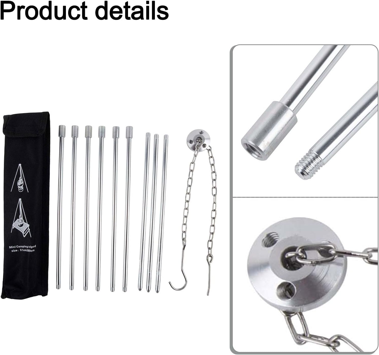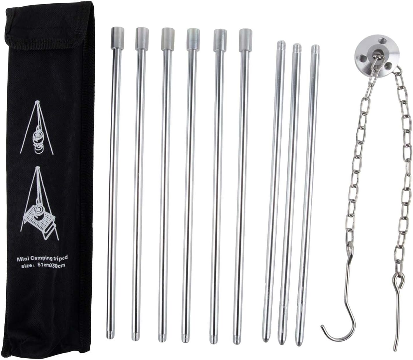 Design stabile del treppiede: questo robusto treppiede da campeggio a 3 gambe offre una stabilità affidabile per appendere attrezzi da cucina sul falò, realizzato in alluminio anodizzato duro per resistere all'uso esterno e supportare carichi fino a 440 g. Altezza regolabile: personalizza l'altezza del treppiede fino a 80 cm con le sue gambe a 3 sezioni, perfetto per adattarsi a varie configurazioni di cottura e posizionamento ottimale per forni olandesi o lanterne durante le tue avventure picnic. Uso esterno versatile: ideale per appendere pentole, caffettiere o vestiti, questo treppiede migliora la tua esperienza di campeggio offrendo una soluzione generale per appendere oggetti essenziali, rendendolo un must per cucinare falò e organizzazione degli attrezzi. Portatile e compatto: per una facile installazione e smontaggio, il treppiede viene fornito con una borsa per il trasporto e si ripone in modo compatto a 33 cm x 7 cm x 4,6 cm, consentendo il trasporto e lo stoccaggio durante escursioni o viaggi in campeggio. Leggero e resistente: realizzato in lega di alluminio, questo treppiede è leggero per una facile portabilità pur mantenendo la forza per contenere i tuoi oggetti da cucina all'aperto, contribuendo a prevenire l'instabilità e fornendo prestazioni affidabili in diverse condizioni.