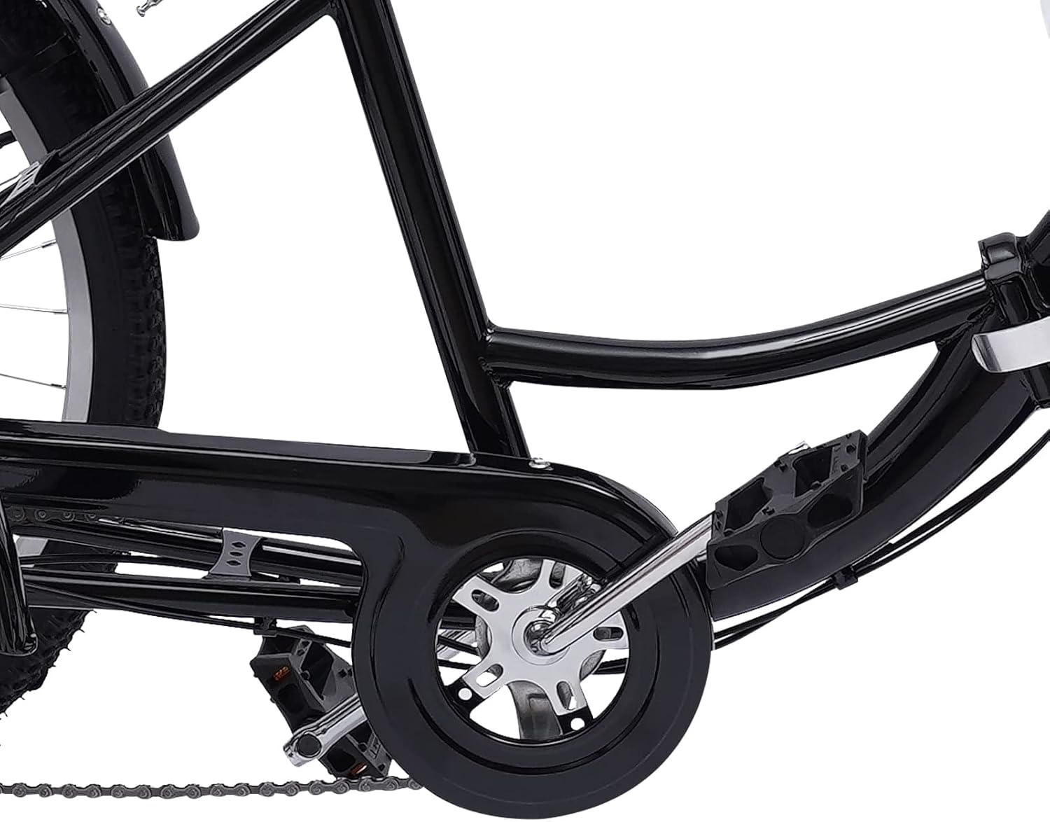 【Materiale di alta qualità】: il telaio in acciaio al carbonio è resistente all'usura, alla corrosione, alla ruggine, forte, durevole e non facile da arrugginire. Può facilmente gestire diverse condizioni stradali per offrire un'esperienza di guida stabile e rendere la guida più sicura. 【Alta sicurezza】: il freno anteriore a V e il freno posteriore garantiscono una frenata potente e progressiva in diverse condizioni di temperatura e condizioni stradali. E viene fornito anche con una luce anteriore a LED e riflettori per fornire una visione luminosa e rendere il triciclo più evidente di notte. Nel frattempo, i tre pneumatici in gomma hanno motivi antiscivolo che possono giocare un buon effetto antiscivolo per garantire la sicurezza di guida. 【Forte capacità di carico: il design a tre ruote e il telaio in acciaio al carbonio ispessito rendono questo prodotto una forte capacità di carico di 140 kg/308lbs, in modo che le persone con pesi diversi possano usarlo. 【Velocità E Altezza Regolabili】: La sua maniglia di cambio velocità è visibile e ha sette marce per regolare. In modo da poter adattare l'attrezzatura necessaria in modo più accurato alle proprie esigenze. Nel frattempo, il manubrio e il sedile sono regolabili in altezza entro 10 cm, in modo da poter scegliere l'altezza giusta per un maggiore comfort e comfort. 【Design pieghevole】: è possibile piegare il telaio con la clip pieghevole. Grazie alla sua forma pieghevole compatta, può essere facilmente posizionato nel bagagliaio di un'auto per facilitare il trasporto.