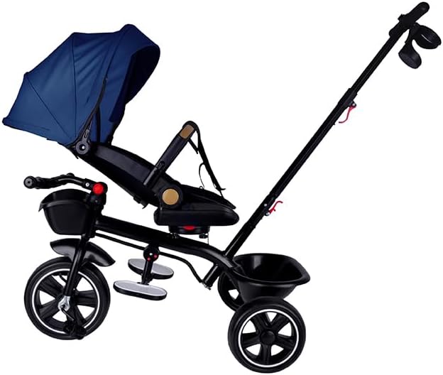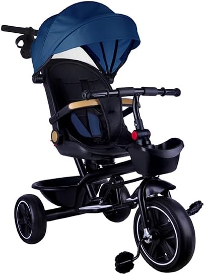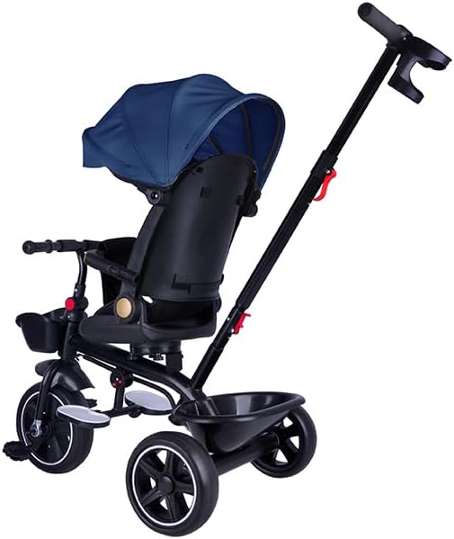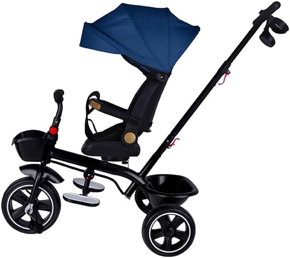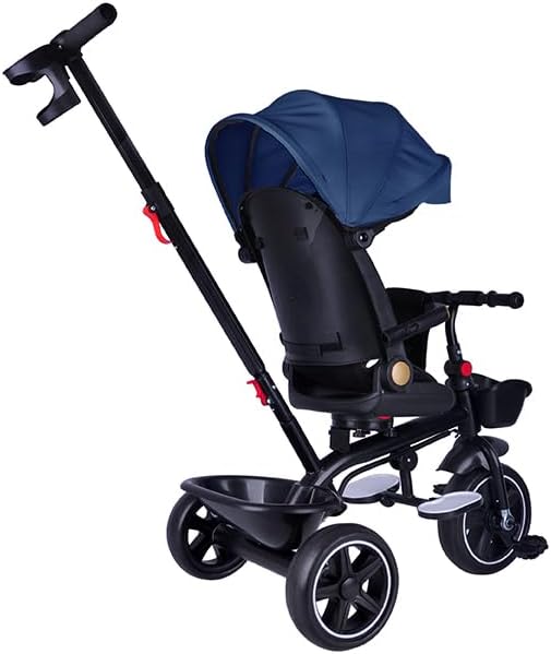 Tipo di prodotto: triciclo bambino con cappottina Caratteristiche: sedile rotante, cestino anteriore, schienale e asta manubrio regolabili, ruota anteriore chiusa. Dimensioni: 65x47x110 cm Portata massima: 25 kg Età consigliata: 18 mesi +