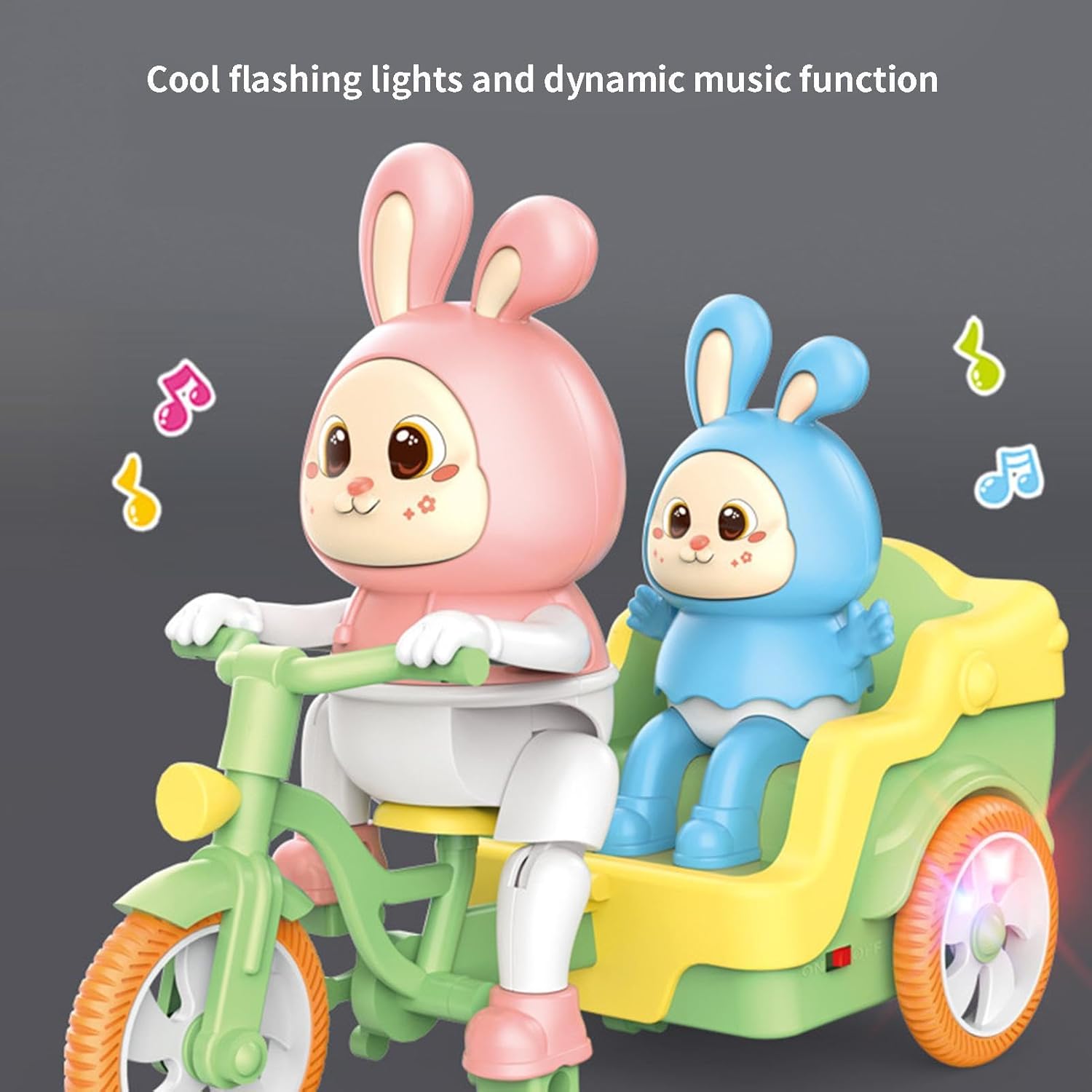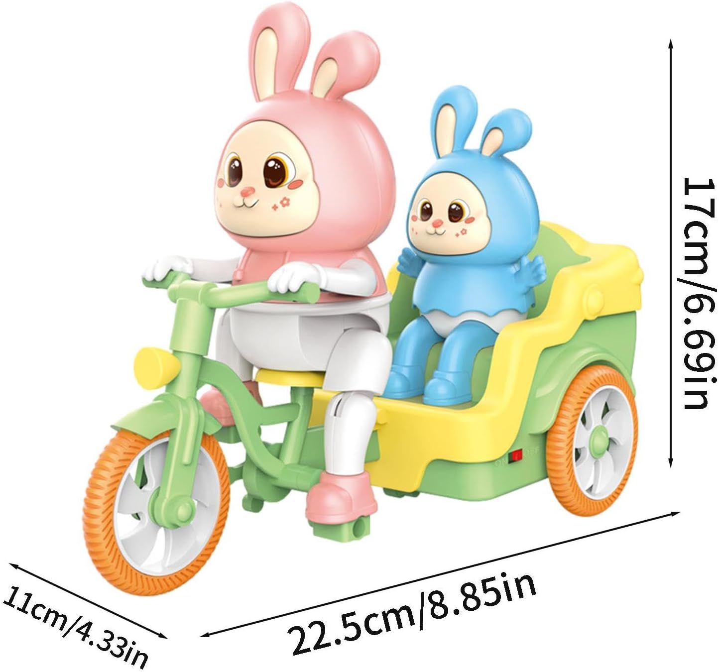 Divertente e interattivo: questo giocattolo triciclo elettrico coniglio è dotato di effetti musicali e di illuminazione, consentendo di godere di una festa audiovisiva durante il gioco. Possono anche controllare la direzione e la velocità del giocattolo con il telecomando, rendendolo più eccitante e coinvolgente. Ottima finitura: il nostro giocattolo triciclo elettrico coniglio ha una forma giocosa ed elegante. Questo giocattolo attirerà l'attenzione del tuo bambino e stimolerà la sua immaginazione con i suoi colori vivaci e la straordinaria maestria. Stabilisca una migliore relazione: con l'aiuto di questo giocattolo triciclo elettrico coniglio, migliora l'esperienza di gioco. Trascorrere del tempo con i genitori aiuta loro a sviluppare abilità sociali. Inoltre, possono giocare con i loro amici, il che incoraggia l'immaginazione e promuove relazioni pacifiche. Ben fatto: il giocattolo triciclo elettrico Rabbit è costruito con materiale ABS riutilizzabile, resistente al calore e agli urti per garantire la sicurezza e la salute di. Goditi un tempo di gioco prolungato con tranquillità sapendo che il giocattolo del tuo bambino è realizzato con materiali di qualità. Facile applicazione: il giocattolo triciclo elettrico Rabbit ha un telaio e pneumatici realizzati con materiali spessi, che consentono una corsa fluida sul campo senza preoccuparsi di deformazioni o danni. Amichevole, è progettato per durare e non ti deluderà.