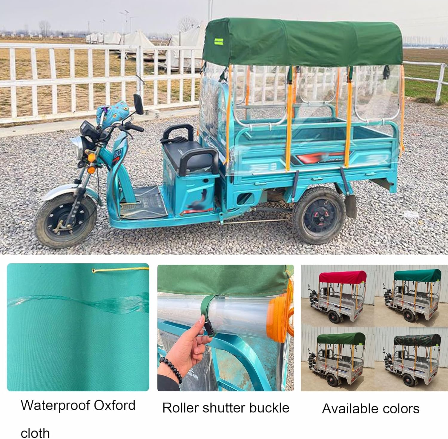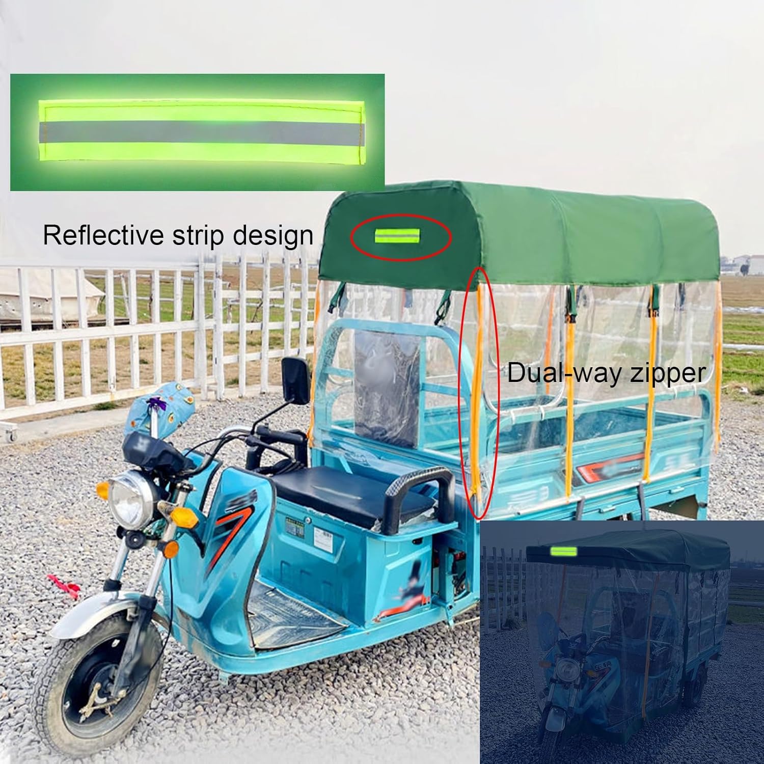 Copertura per triciclo: questa copertura antipioggia per triciclo elettrico è realizzata in Oxford e tessuto trasparente, offrendo un'eccellente visibilità e facilità d'uso. Pioggia e neve non ostacoleranno i tuoi viaggi né le tue consegne. Il telaio è realizzato in resistente tubo di acciaio zincato. Copertura per triciclo per adulti: questa copertura è dotata di strisce riflettenti che si illuminano di notte o in condizioni di scarsa illuminazione, consentendoti di vedere il tuo carico in tempo reale e mantenendo la visibilità posteriore, proteggendo il ciclista e il carico. Copertura per triciclo elettrico: le doppie cerniere e i cordoncini superiori e inferiori mantengono la copertura saldamente in posizione sul triciclo elettrico, impedendogli di muoversi durante l'uso. Installazione semplice: Veloce da installare, si rimuove altrettanto facilmente. Quando il telone e i supporti non sono più necessari, possono essere rapidamente rimossi e riposti, riducendo al minimo lo spazio di stoccaggio e consentendo un utilizzo flessibile a seconda delle esigenze di trasporto. Compatibilità versatile: compatibile con la maggior parte dei tricicli elettrici. Orlo elastico e fibbia regolabile garantiscono una vestibilità sicura. Il design leggero è facile da installare e rimuovere e può essere adattato a tricicli di diverse larghezze