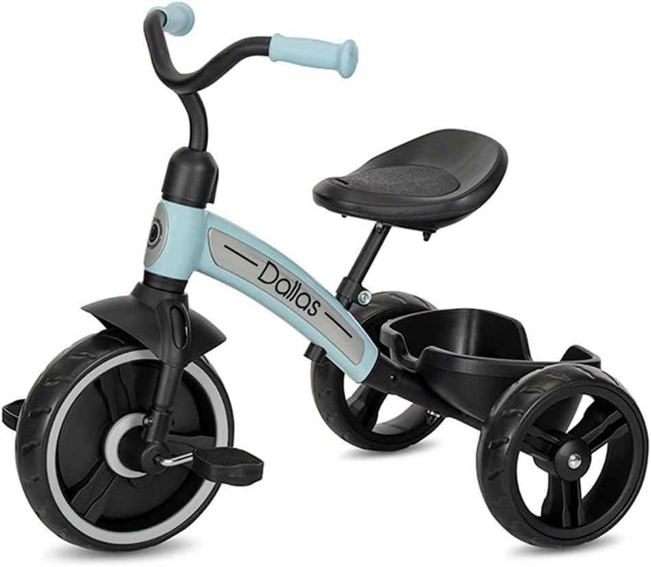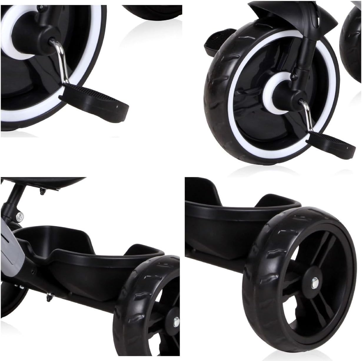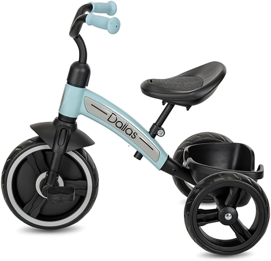 Triciclo per bambini dai 2 anni in su, sedile ergonomico regolabile in altezza, design moderno, maniglie in morbida gomma per una presa sicura, ruota anteriore in EVA da 10 pollici, ruote posteriori in EVA da 8 pollici, cestino in plastica sulle ruote posteriori, pedali, peso massimo 25 kg