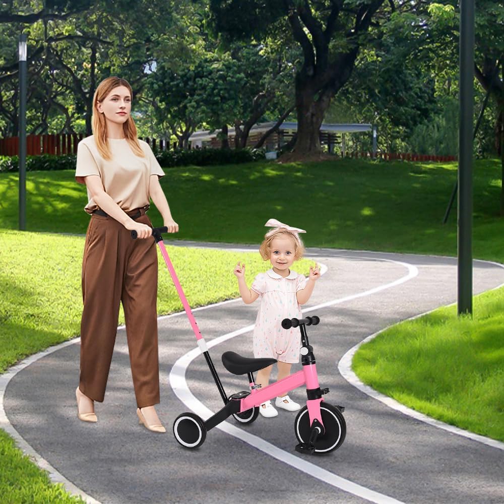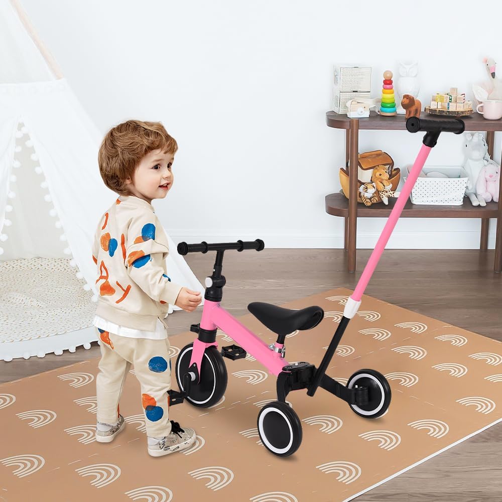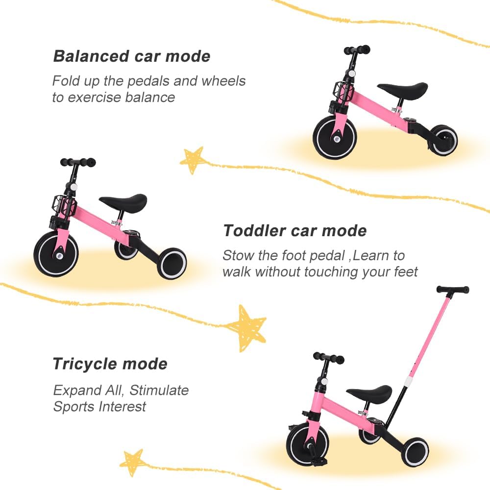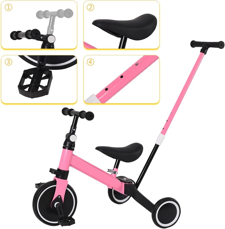 ⭐☺Sedile regolabile: manubrio con altezza e angolazione variabili (regolabile a 180° da davanti a dietro) migliora il comfort. Le ruote in EVA resistenti e completamente chiuse assorbono gli urti su superfici piane e non piane per un'esperienza di guida confortevole. ⭐☺Capacità di carico: 15 kg; Età adatta: 18 mesi-4 anni; Materiale: plastica ecologica + acciaio; Pedane pieghevoli, riposte durante la guida, abbassate durante la spinta. Cuscino allargato, il bambino si siede più comodamente e in sicurezza. ⭐☺Sicuro da usare: impedisce al passeggino di scivolare, protegge la salute del tuo bambino, è più sicuro da attaccare. Pneumatici di grande diametro, ruote larghe e larghe, leggere e resistenti, buche, facili da attraversare. Ruota posteriore a sgancio rapido, facile da installare. Modalità di scorrimento del triciclo, modalità triciclo a pedali. ⭐☺Push and Ride: è un passeggino per neonati, è anche una bici per bambini, 0-4 anni, un'auto da manovrare. Modalità scorrimento triciclo, modalità pedale triciclo. La modalità triciclo aiuta i bambini dai 10 mesi ai 4 anni a mantenere l'equilibrio e a migliorare la coordinazione del corpo. ⭐☺Ampio cuscino: il bambino si siede in modo più comodo e sicuro. Il design curvo e il telaio triangolare e robusto in acciaio rendono il triciclo stabile e durevole per un maggiore comfort e sicurezza, così il triciclo rimarrà con il tuo bambino per gli anni a venire.