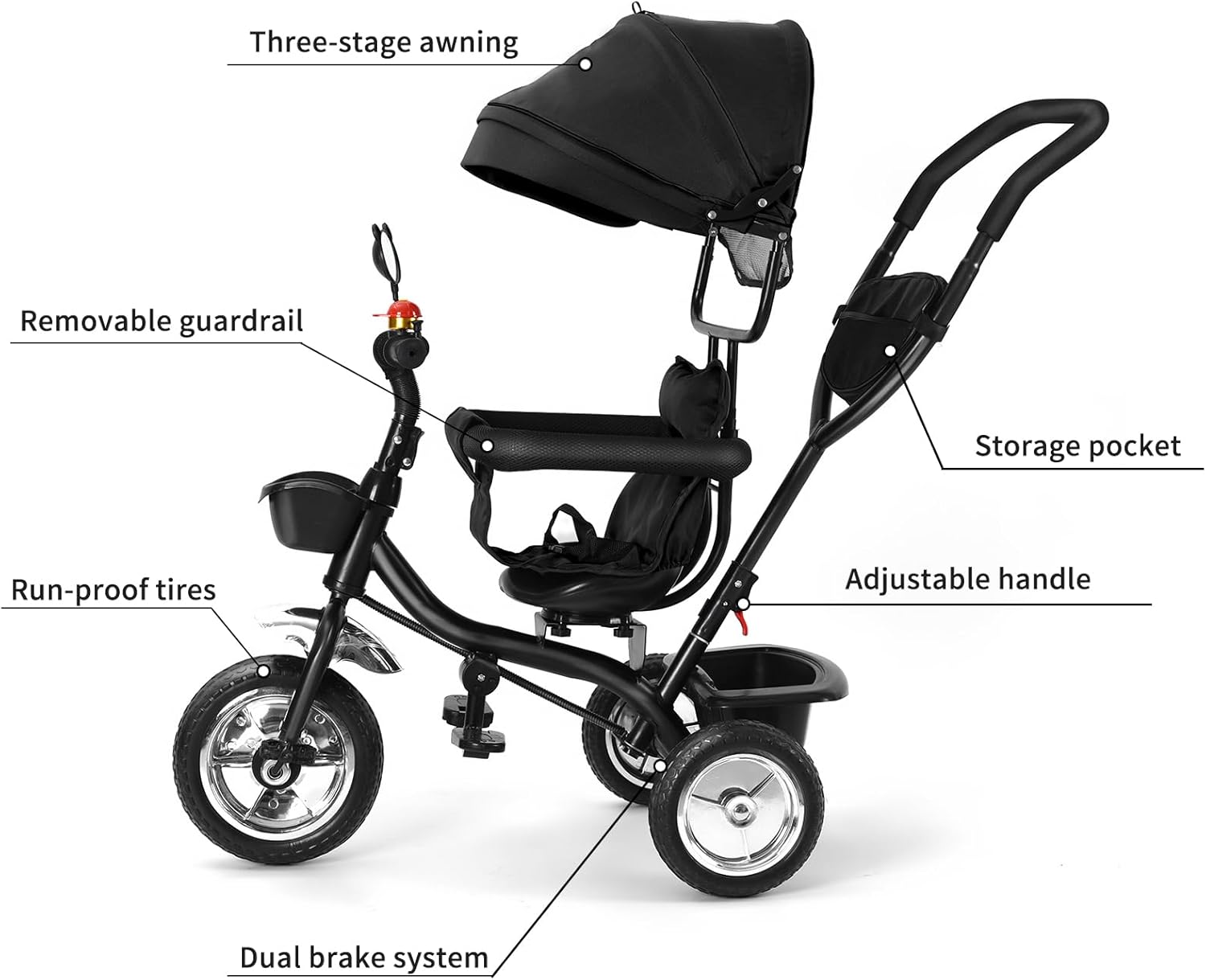 Triciclo multifunzionale: questo triciclo bambino evolutivo è adatto a diverse età, a seconda della diversa età del bambino multi-stadio, può essere staccato di conseguenza la configurazione. Questo triciclo è usato come triciclo per bambini, triciclo sterzo con pedali. Coperchio solare pieghevole: il triciclo per bambini è dotato di un dispositivo di protezione solare pieghevole che protegge i bambini dal sole e dal vento, il cappuccio solare protegge il bambino da vento, pioggia e polvere e accompagna il bambino a viaggiare in modo sicuro. Fornire un comodo spazio di riposo per il tuo bambino. Poggiapiedi rimovibili: i poggiapiedi possono essere staccati, riposti durante la guida e appoggiati durante la spinta. Spingere e rotolare a doppio uso, è un passeggino per bambini e una bicicletta a pedali per bambini. ✨ Con cestello portaoggetti: il Velo Passeggino Bebe Scalabile è dotato di cestini anteriori e posteriori per riporre gli elementi essenziali del bambino come pannolini, vestiti di ricambio e tutti gli altri accessori importanti necessari in viaggio. Con sistema di putter: il passeggino è dotato di una barra di spinta regolabile in altezza su più livelli e il manubrio può essere sollevato e abbassato liberamente. Entrambi i genitori possono facilmente trovare l'altezza giusta per se stessi mantenendo l'angolo di pressione senza affaticamento. La barra di spinta è dotata di portabicchieri per riporre bottiglie e tazze.
