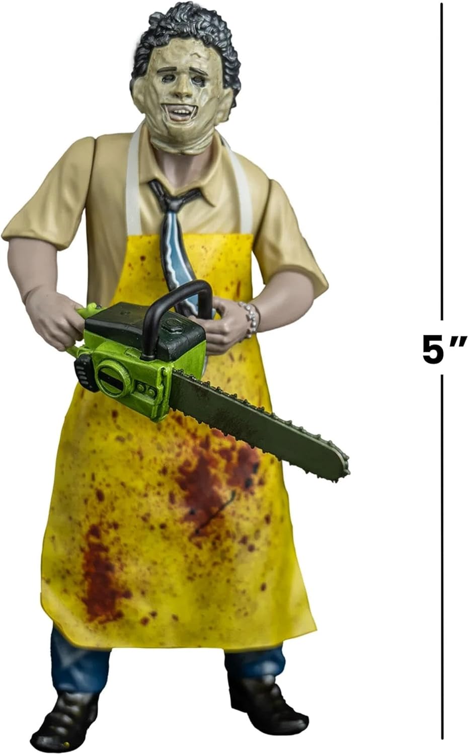 Licenza ufficiale The Texas Chainsaw Massacre (1974) - Leatherface (Killing Mask) - Figura 5 pollici! Leatherface presenta un'azione brandente di motosega, basta spremere le gambe e lasciare volare la sega! Accessori inclusi: grembiule e motosega in vero vinile Non perdere il resto della collezione tra cui Leatherface (Pretty Woman), The Cook, The Hitchhiker e The Dinner Scene Playset, ciascuno venduto separatamente.