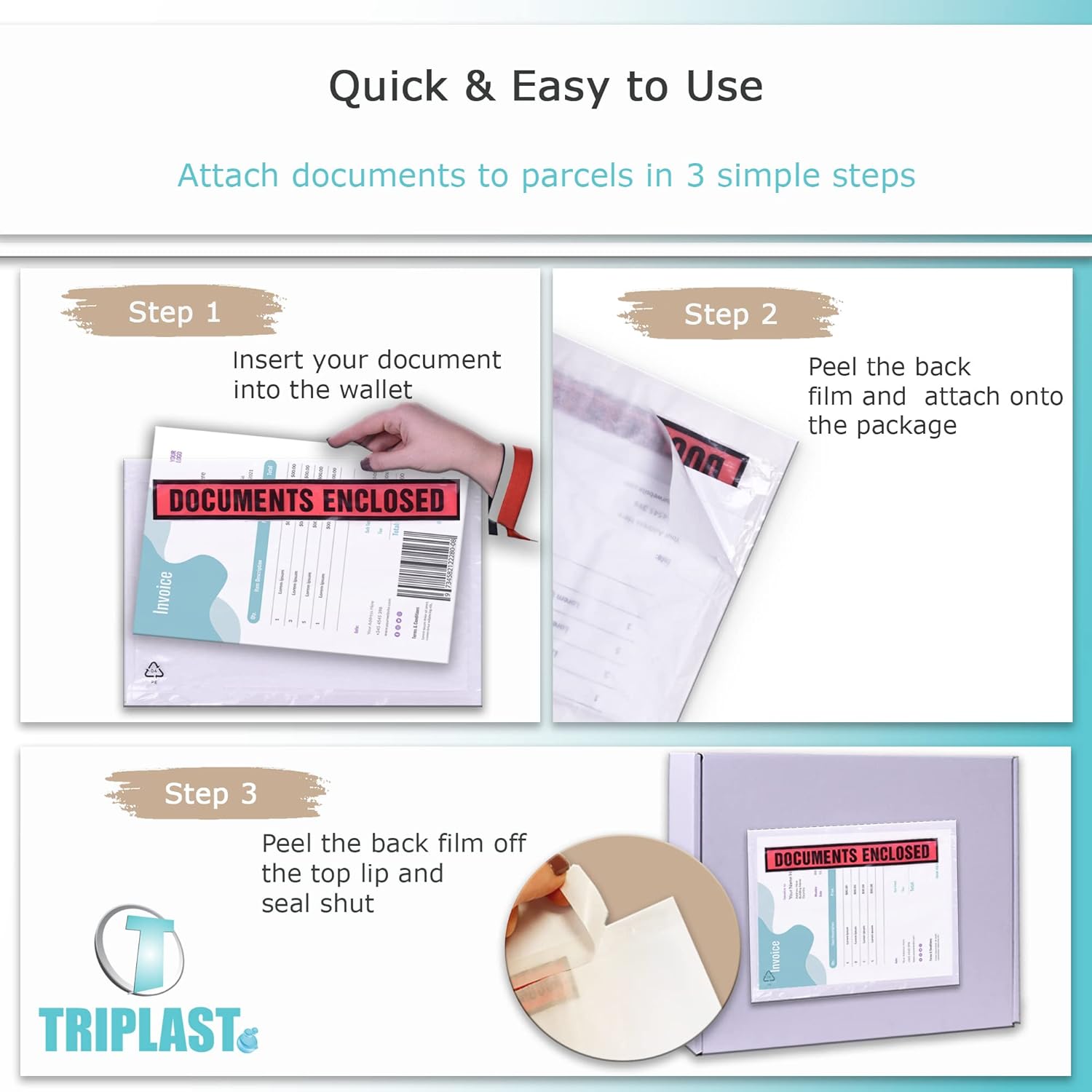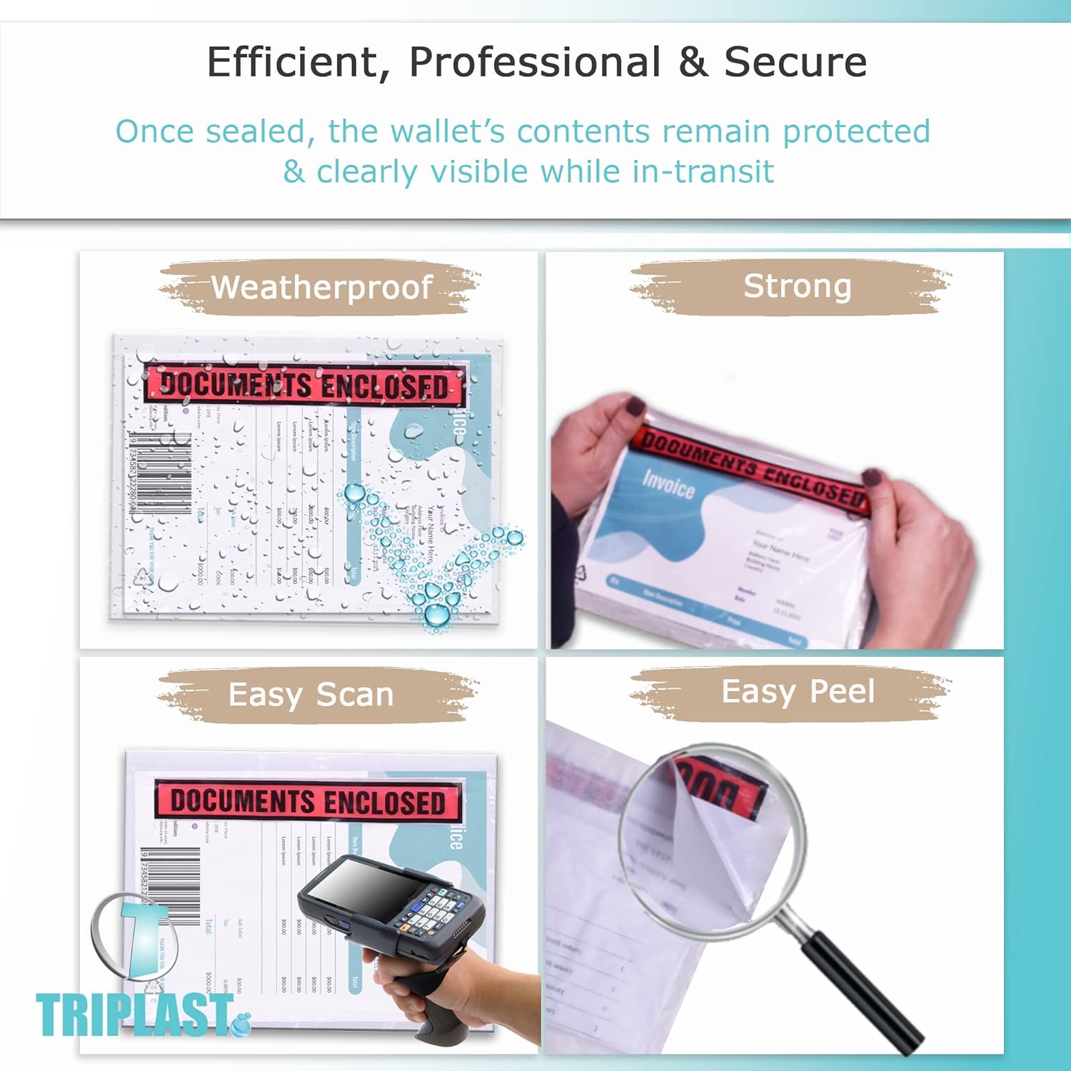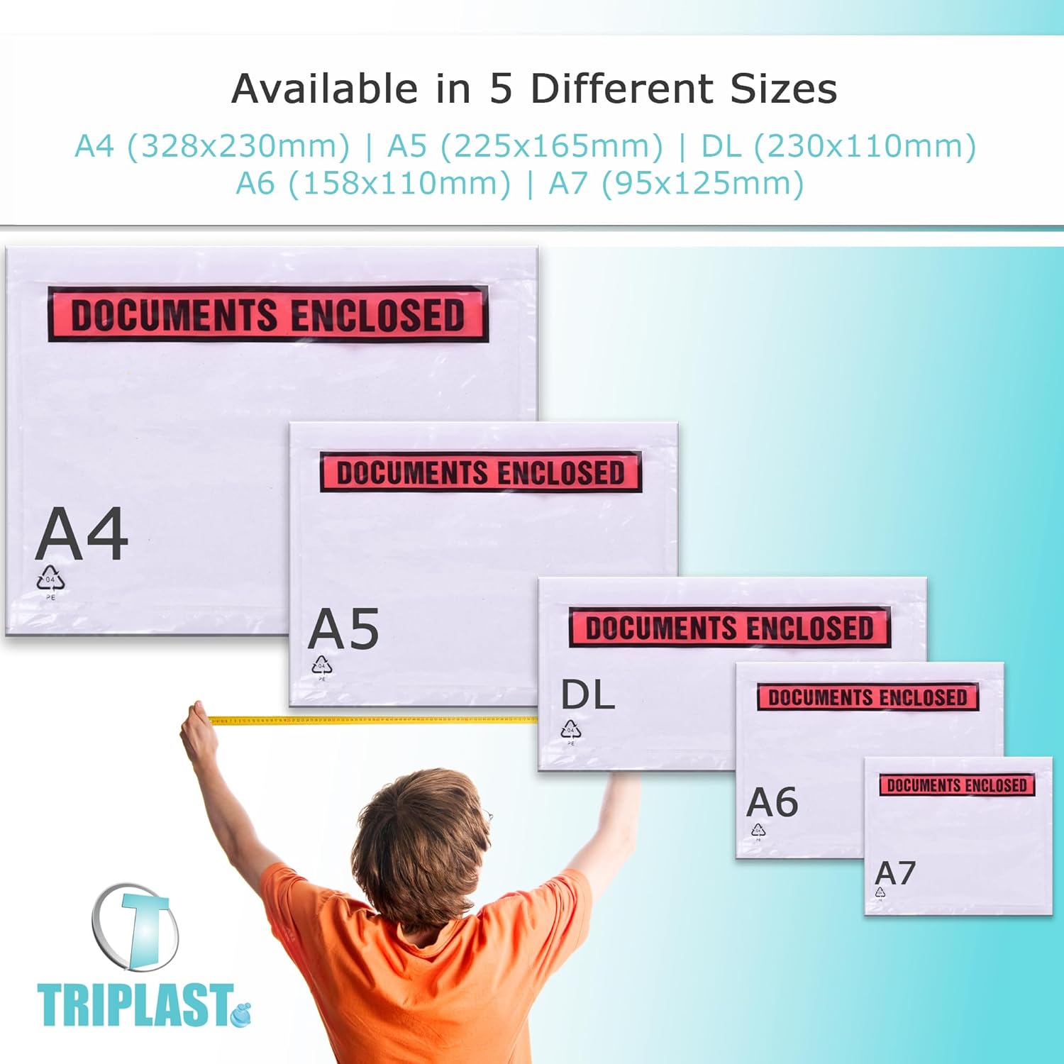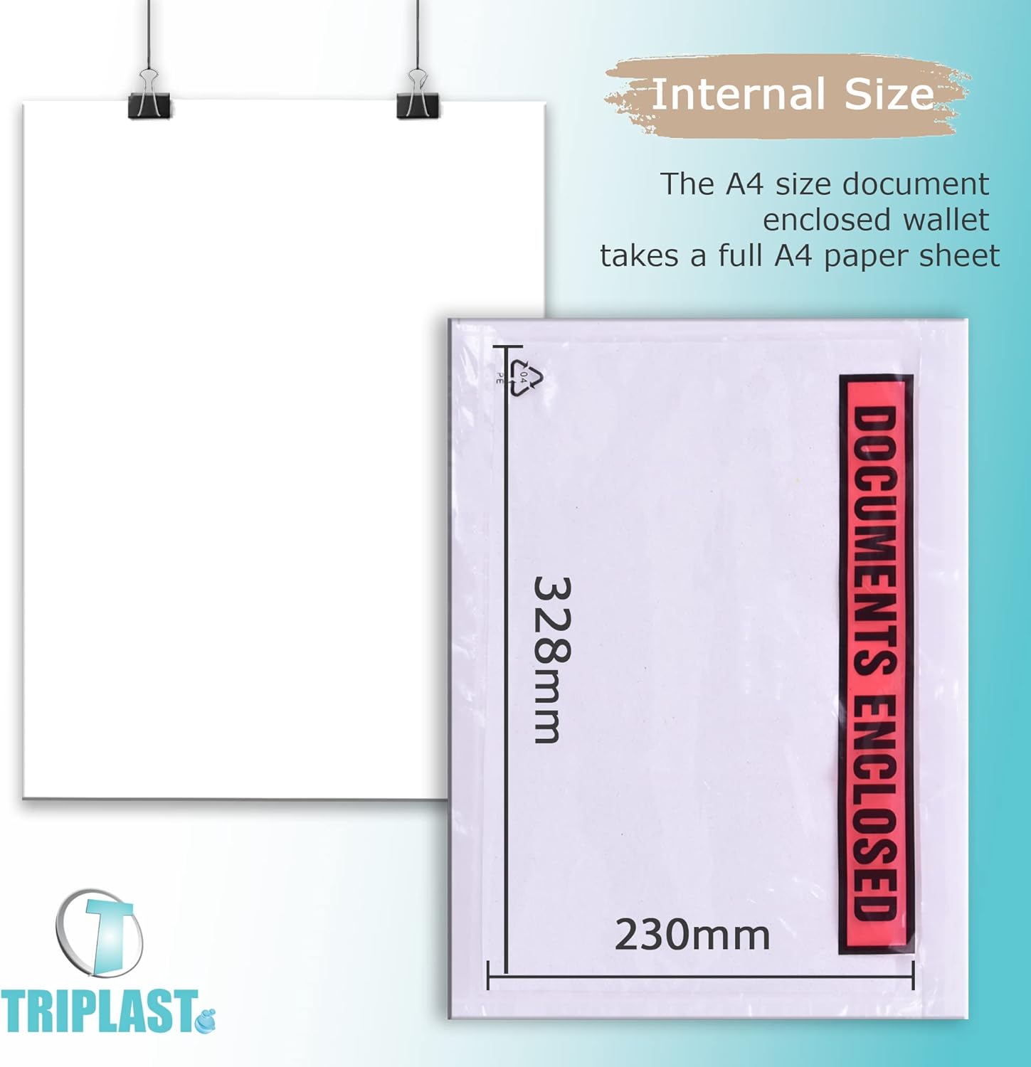 Contenuto della confezione: confezione da 1000 portafogli chiusi documenti | Dimensioni interne: A4 (328 x 230 mm / 12,9 x 9 pollici) | TIPO: stampato (frontale in plastica trasparente con stampa "Documents Enclosed") Versatile e ampia compatibilità: queste buste per lista di imballaggio o buste per etichette di spedizione sono essenziali per affrancatura e spedizione per apporre documenti a tutti i tipi di pacchi, comprese scatole postali, borse per spedizione, buste per pallet e casse e cartoni di legno Veloce e facile da usare: hanno una parte anteriore in plastica trasparente e un retro in carta autosigillante con una fessura aperta lungo il bordo superiore posteriore che rende l'inserimento di documenti e incollarli alle confezioni un gioco da ragazzi assoluto Durevole e resistente alle intemperie: queste maniche trasparenti sono realizzate con plastica di alta qualità e un forte adesivo hot melt che mantiene i documenti allegati saldamente sigillati ai pacchi, completamente leggibili e scansionabili e anche protetti da pioggia, sporco, ecc. ECO-FRIENDLY: questi portafogli per documenti sono riciclabili al 100% e classificati con codice in plastica LDPE 4