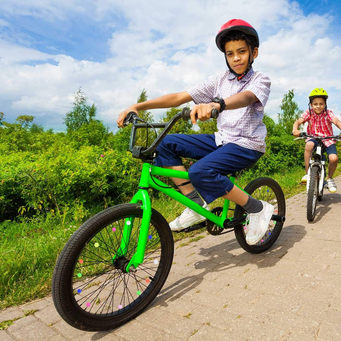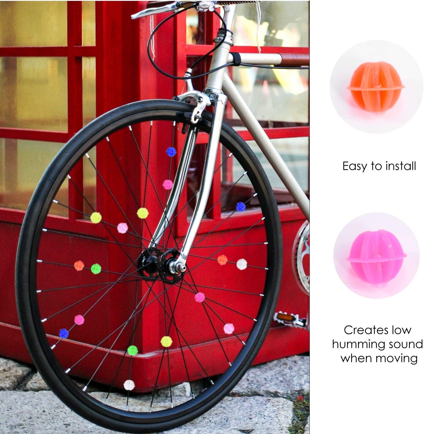 FATTI VISTO, FATTI SENTIRE I piccoli pezzi di vetro girano, cadono e girano mentre guidi. L'aggiunta perfetta agli accessori di sicurezza della tua bicicletta PEZZI IN VETRO COLORATO BRILLANTE; Questi piccoli occhiali da bici sono disponibili in una confezione da circa 72 in colori misti: blu, verde, giallo, rosa, bianco, arancione FACILI DA USARE; Così semplice da installare, basta attaccare i piccoli pezzi di vetro ai raggi di una bicicletta e il gioco è fatto! PERFETTO PER I BAMBINI; Un accessorio ideale per la bici del tuo bambino. Usali per evocare ricordi della tua infanzia o creare nuovi ricordi con il MATERIALE più piccolo; Plastica