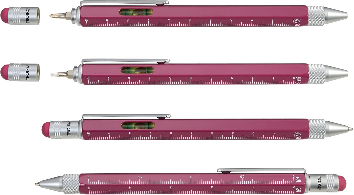 Pratica penna a sfera Construction della marca Troika Il perno è dotato di diverse scale, righello in centimetri e pollici, cacciavite a testa piatta/a croce, pennino e livella (diametro 10 mm) La mina della penna scrive nel colore nero Un regalo ideale per ogni occasione e per ogni occasione Contenuto della confezione: 1 penna a sfera multifunzione Troika CONSTRUCTION in ottone, mina nera, blu, righello in centimetri/pollici, scala 1:20/1:50, livella a bolla d'acqua, cacciavite a croce, dimensioni: 150 x 11 x 13 mm