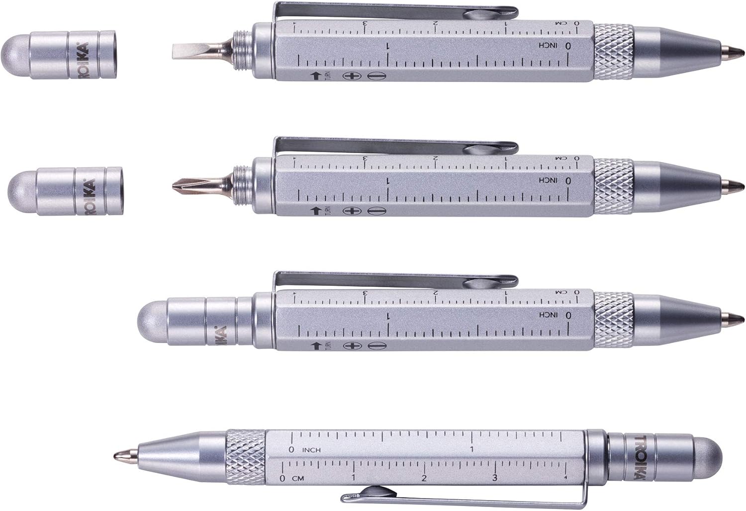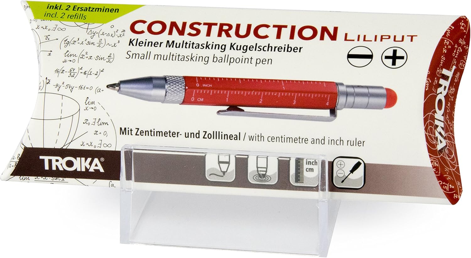 Penna a sfera multifunzione di alta qualità di Troika Mini strumento di pianificazione e cassetta degli attrezzi in uno, con diverse scale, righello in centimetri e pollici, cacciavite a testa piatta/a croce, pennino capacitivo La struttura Liliput si adatta comodamente al portafoglio, alla tasca della camicia, alla tasca dei pantaloni Per appunti, come penna touch, per misurare e avvitare Il colore dell'inchiostro è nero