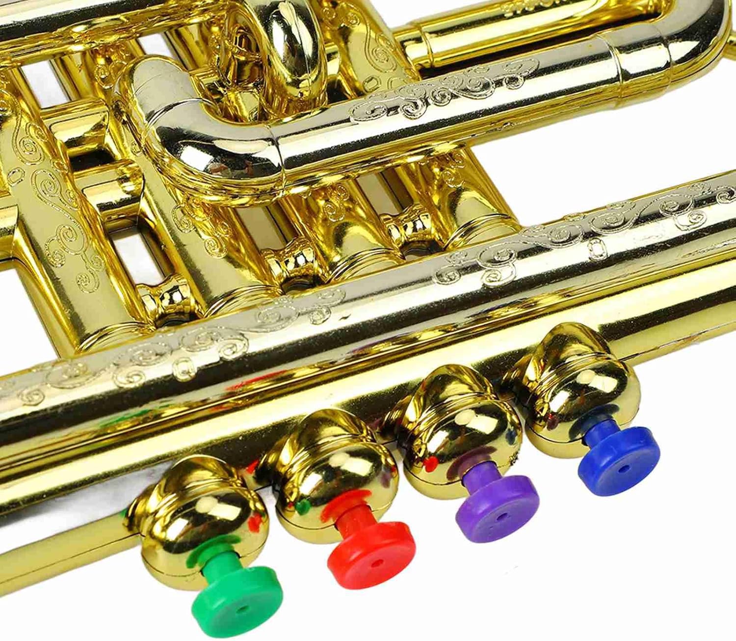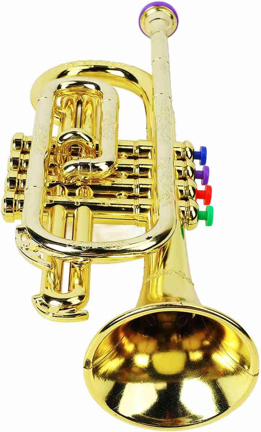 [Educativo] Più che un semplice giocattolo, questo strumento musicale aiuta a sviluppare importanti abilità nei bambini. migliora la coordinazione occhio-mano, il riconoscimento del ritmo e la sensibilità musicale favorendo la creatività. [Strumento per principianti] Il giocattolo a tromba è strumento iniziale ideale per bambini e principianti, progettato per introdurli al mondo della musica. con il suo design intuitivo e la semplice giocabilità, aiuta i bambini a sviluppare le abilità musicali di base divertendosi. la struttura in plastica leggera garantisce una facile maneggevolezza, rendendola adatta ai giovani studenti. [Costruzione] Costruito con componenti in plastica ABS e acero di alta qualità, questo giocattolo a tromba è realizzato per resistere al gioco entusiasta. i materiali robusti garantiscono una lunga durata, anche con un uso frequente. i genitori possono avere fiducia che questo strumento rimarrà in ottime condizioni attraverso innumerevoli sessioni di pratica ed esibizioni. [Design accattivante] Caratterizzato da una splendida finitura dorata e tasti dai colori vivaci, questo giocattolo a tromba è visivamente accattivante ed emozionante per i bambini. i colori vivaci e la superficie lucida lo rendono un giocattolo attraente che i bambini adoreranno sfoggiare. il suo design giocoso incoraggia la creatività e rende l'apprendimento della musica un'esperienza piacevole. [Intrattenimento per tutte le età] Non per i bambini, questo giocattolo a tromba offre ore di divertimento per tutta la famiglia. che venga utilizzato per giochi di finzione, educazione musicale, è strumento versatile che unisce le persone. i piatti inclusi aggiungono un ulteriore elemento di gioco interattivo ed esplorazione musicale.