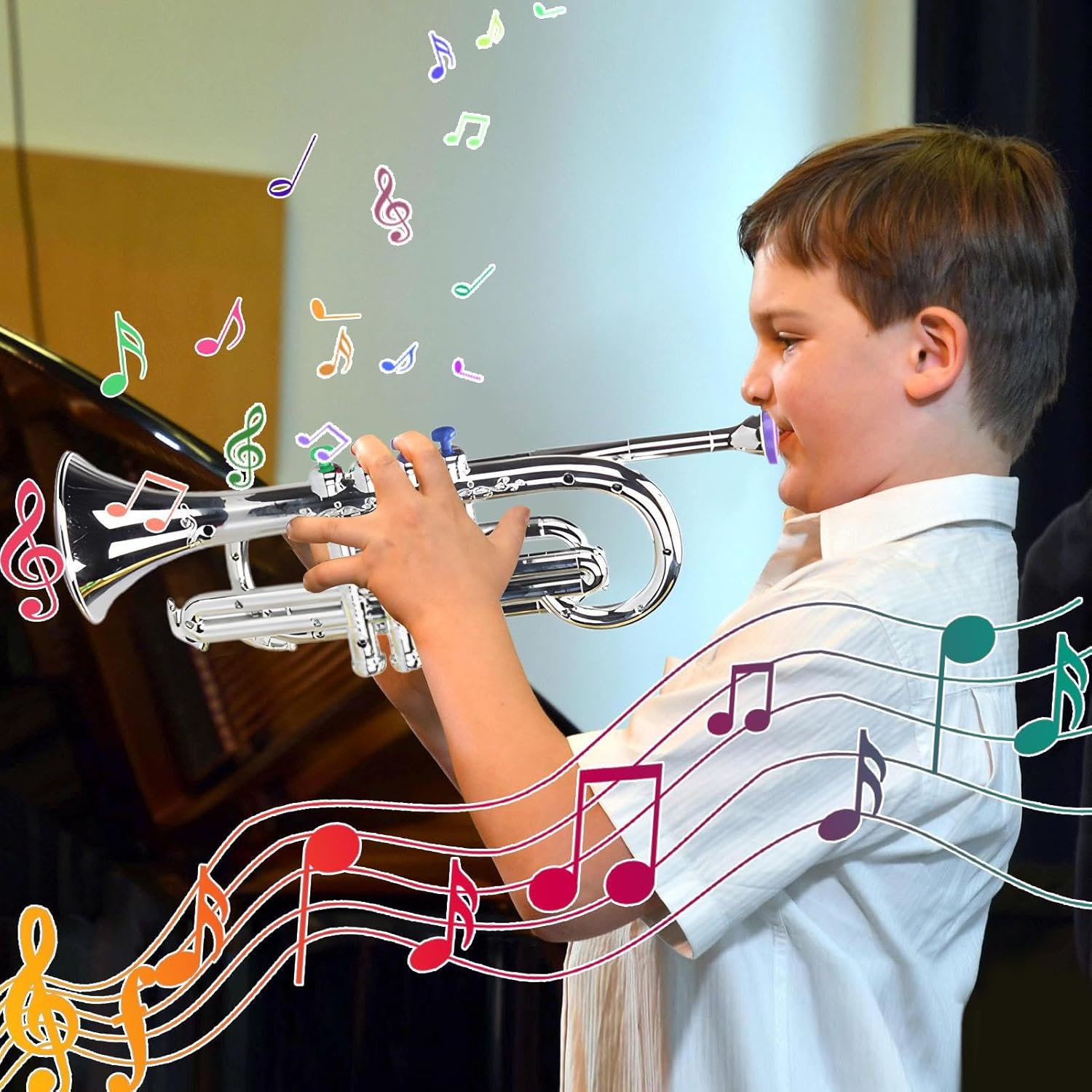 Migliora il gioco dei bambini: i tasti posizionati deliberatamente sulla nostra tromba giocattolo garantiscono un'esperienza di gioco di livello professionale, esercitano le mani dei bambini e li aiutano a giocare con precisione. La funzione di targeting del design mette alla prova le loro capacità, rendendo il suono della tromba più accurato Produzione sonora avanzata: grazie alle posizioni dei tasti simulati, la tromba giocattolo è estremamente sensibile e fornisce una forte penetrazione, garantendo la produzione di una gamma più ampia di note e un'esperienza esecutiva più realistica Ampiamente usato: facilita il genitore-figlio e migliora le abilità musicali, adatto per lezioni di musica, scuole materne e come regalo di compleanno o di carnevale, rendendolo un'opzione versatile per promuovere il talento e la crescita musicale Suono potenziato per i bambini: la tromba giocattolo produce un volume delizioso che completa il gioco di figlio, alimentando la sua creatività e favorendo un senso di realizzazione Lunga durata: la tromba giocattolo vanta dimensioni adeguate, design facile da usare e un suono duraturo che offre un'esperienza di gioco piacevole per bambini di tutte le età. Inoltre, il suo spazio di archiviazione compatto lo rende per lezioni di musica, viaggi e altro ancora