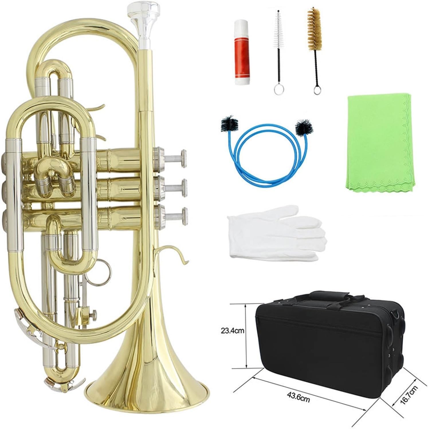 Il corpo è realizzato in ottone splendidamente laccato e presenta un design resistente e fluido a doppia valvola. Il pistone è reattivo e confortevole, la molla si riavvolge rapidamente ed è ermetico. Ha un timbro potente, nitido e brillante, con un suono nitido e risonante e un'eccellente suonabilità. È facile da suonare e ha un suono pieno, brillante e piacevole. Siamo sicuri di trovare la tromba perfetta per te. Si tratta di uno strumento a tromba professionale leggero e portatile. In caso di problemi con il prodotto o domande, non esitate a contattarci: il nostro eccellente team di assistenza clienti è sempre pronto ad assistervi.