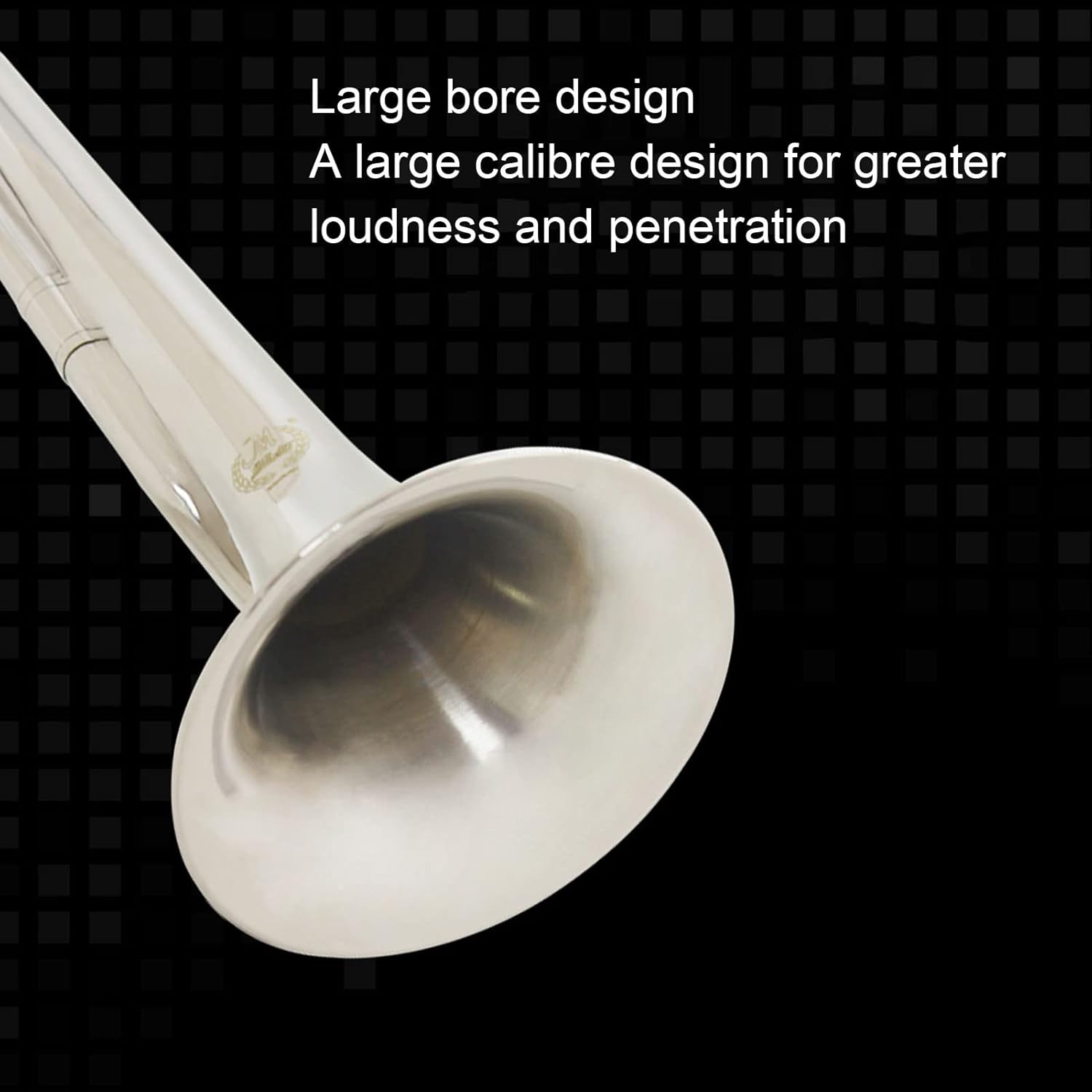 [Elegante] Caratterizzata da una superficie finemente lucidata spruzzata con colore e da un processo di saldatura ad alta temperatura, questa tromba piatta è costruita per durare. la finitura elegante non ne migliora l'aspetto estetico, ma garantisce anche durata per anni di utilizzo affidabile. [per principianti] Questa tromba in si bemolle è progettata pensando ai principianti, con valvole facili da suonare e un'intonazione reattiva e che aiuta i nuovi musicisti a sviluppare rapidamente le proprie abilità. il design intuitivo garantisce un'esperienza di gioco confortevole, rendendolo la scelta ideale per coloro che iniziano il loro viaggio musicale. [Costruzione in ottone di alta qualità] Realizzata in ottone con un rapporto stabile di rame-zinco-stagno, questa tromba in si bemolle offre un tono trasparente e pieno con un'eccellente risonanza. la costruzione durevole garantisce prestazioni di lunga durata e una qualità del suono superiore per gli strumenti a fiato. [Prestazioni versatili] per un'ampia varietà di stili e impostazioni musicali, questa tromba in si bemolle eccelle nelle esibizioni di orchestre di marching band, jazz e musica pop. la sua versatilità lo rende la scelta migliore per artisti di tutti i livelli, garantendo una qualità del suono eccezionale in qualsiasi scenario musicale. [Suono forte e penetrante] Progettata con un foro ampio, questa tromba b-flat produce un suono più forte e penetrante garantendo risultati di riproduzione migliori. il design avanzato migliora la proiezione del suono rendendolo adatto a spettacoli all'aperto e ambienti di grandi dimensioni.