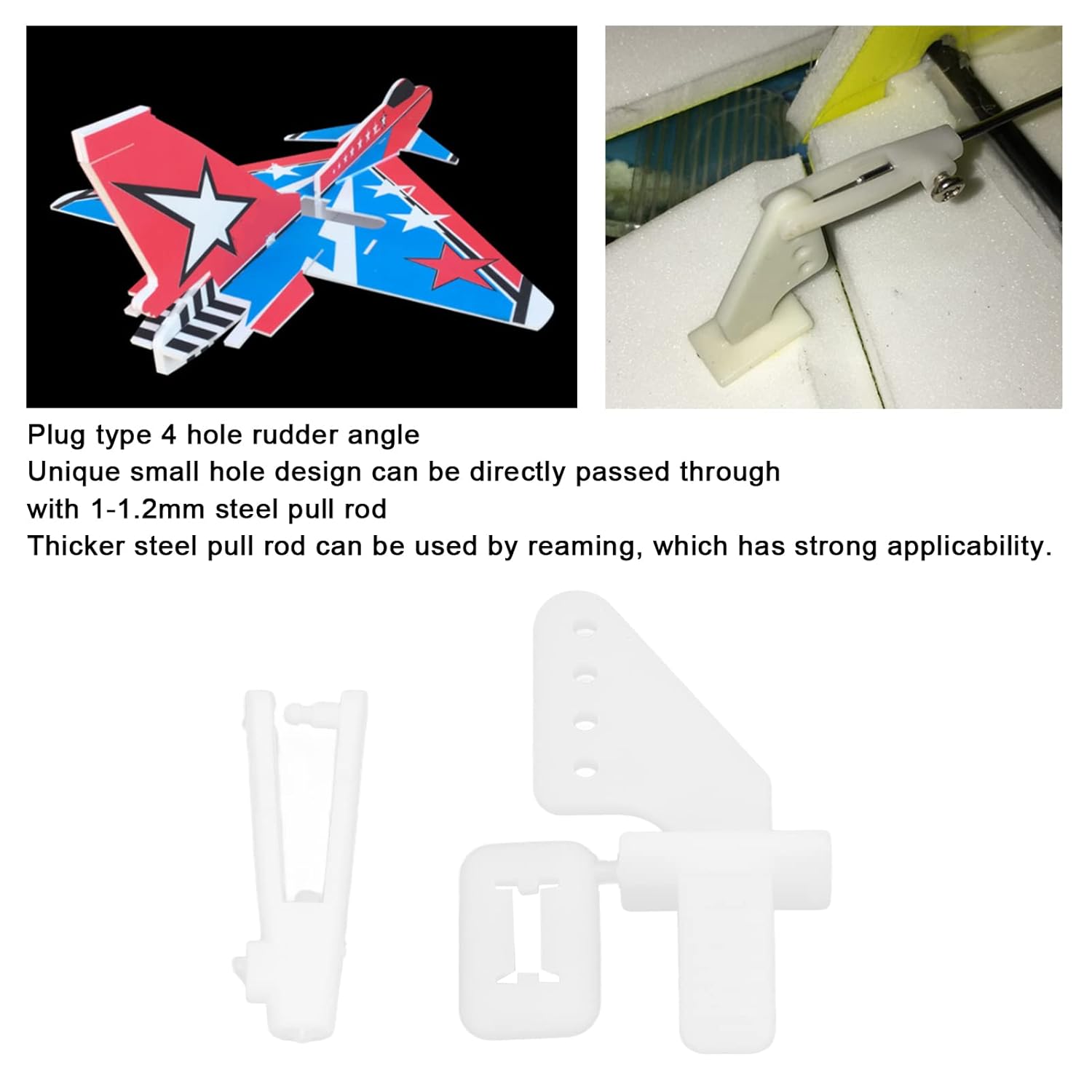 【Idoneità del modello】 - Le trombe di controllo fungono da componente ideale per il miglioramento del modello, adatto per aerei RC, aerei elettrici e aerei ad ala fissa in schiuma, garantendo prestazioni ottimali. 【Applicabilità universale】 - Questo kit di accessori per telecomando presenta un design unico a foro piccolo che può ospitare direttamente un'asta di trazione in acciaio da 1-1,2 mm o un montante 'asta di trazione più spesso autoalesante. Offre un'ampia applicabilità per vari requisiti. 【Design regolabile】 - L'angolo del timone del kit forcella per corni di controllo a 4 fori è collegabile e può essere regolato senza soluzione di continuità secondo comodità. Questo design intuitivo lo rende estremamente facile e diretto da usare. 【Per tiranti】 - Il kit di accessori per telecomando comprende 20 forcelle da 1 mm, 20 perni e 20 viti, progettati specificamente per tiranti garantendo un utilizzo flessibile. 【Robusto e riutilizzabile】 - Realizzato in plastica di qualità superiore, il kit corni di controllo e forcella è incredibilmente duraturo e può essere riutilizzato, garantendone l'efficacia durante l'uso a lungo termine.