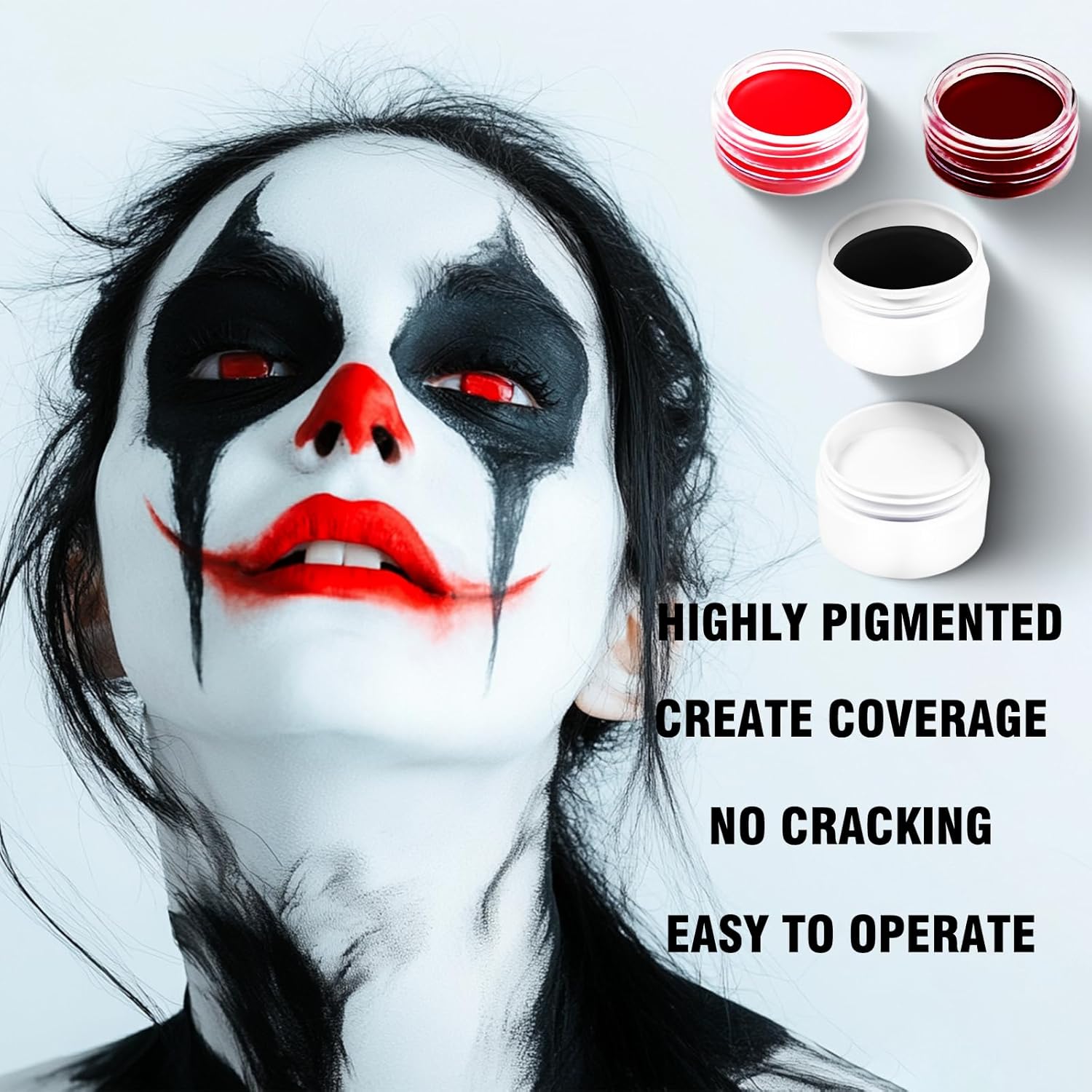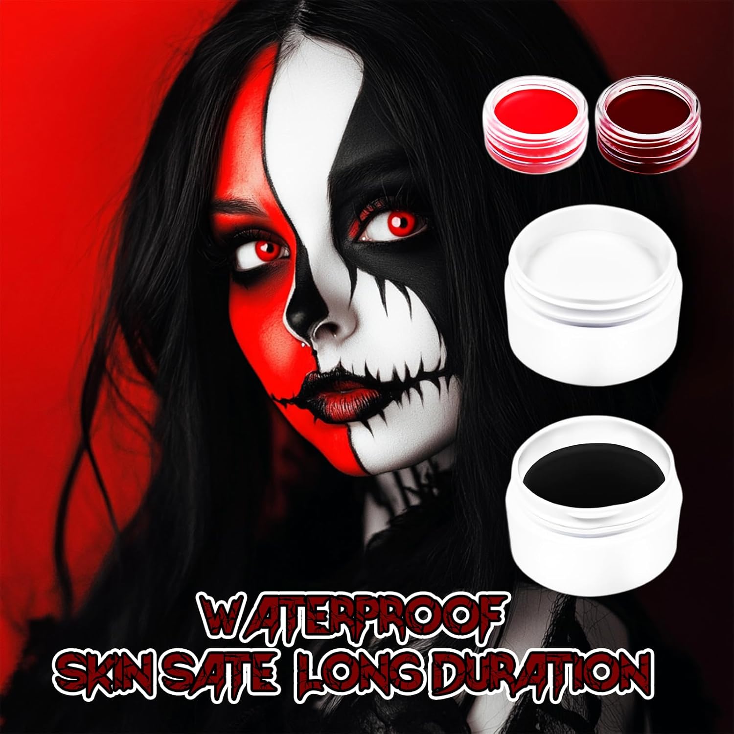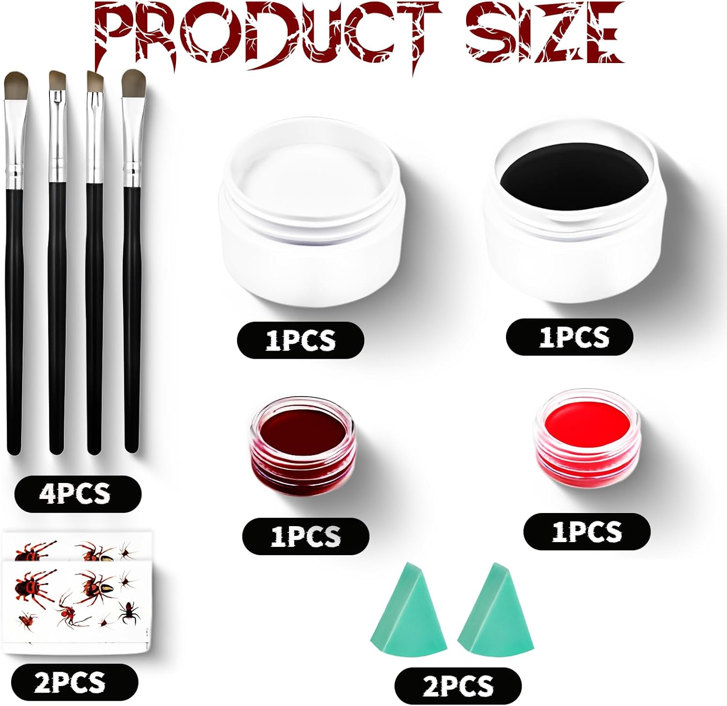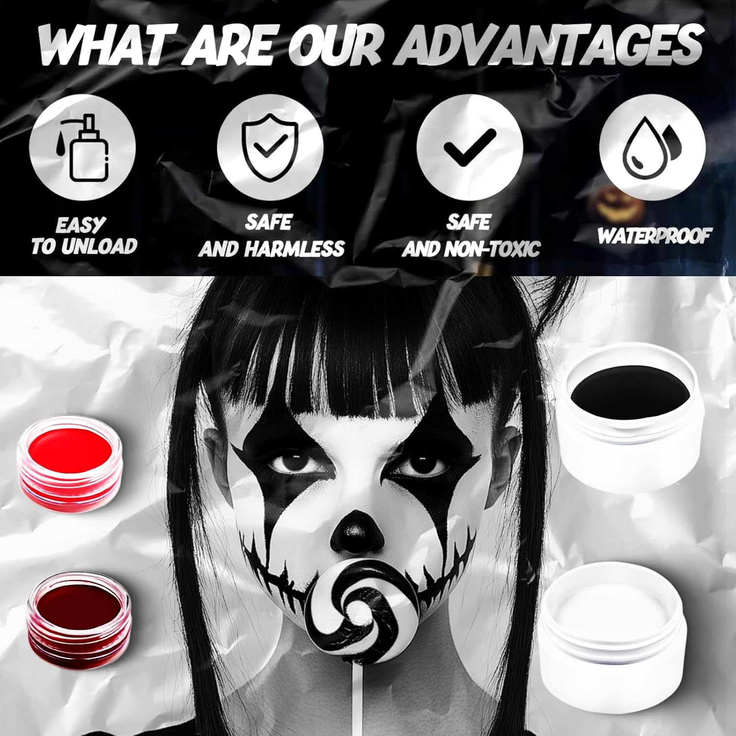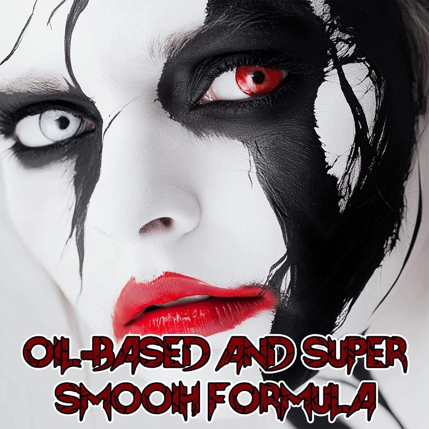 👻🩸【Set trucco per bambini】Il kit per trucchi Halloween viso può essere utilizzato direttamente o miscelato con altri colori per creare colori diversi che ti piacciono, perfetti per la pittura del corpo e del viso. Tutto ciò che serve per un trucco Halloween perfetto! 👻🩸【Trucco Halloween bianco e nero rosso】Questo set trucco Halloween include: Nero 50 g + Bianco 50 g + 20 g rosso scuro + 20 g rosso chiaro + 4 pennelli trucco + 2 spugne trucco triangolari + 2 adesivi tatuaggio ragno. Questo trucco Halloween bianco e nero è un must-have per le feste di Halloween. Rende facile creare look classici come vampiri, zombie, fantasmi, ecc. che ti piacciono, perfetto per il face painting e il body painting. 👻🩸【Comodo e Delicato Sulla Pelle】Pittura per il viso a adatta a bambini o adulti. Questo trucco per viso Halloween è composto da ingredienti di alta qualità, con una consistenza morbida e delicata, delicati sulla pelle, sicuro da usare, non provoca prurito o irritazione della pelle ed è sicuro e delicato sulla pelle sensibile. (Si consiglia di testare un piccolo pezzo di pelle prima dell'uso). Rimuovi semplicemente la vernice per il viso con uno struccante professionale. 👻🩸【Facile da usare】Le pitture per il viso sono facili da usare, si può usare una spugna, un pennello o la punta delle dita per applicare la pittura sulla pelle e usare la polvere per fissare il trucco. Il sangue finto può essere utilizzato per creare una serie di ferite raccapriccianti, con risultati ancora migliori se utilizzato insieme alle spugne. Può simulare lesioni sul viso, sul corpo, sugli oggetti di scena e sui vestiti. 👻🩸【Versatilità】Particolarmente adatto per il trucco con effetti speciali, stile gotico, vampiro, clown, zombi e altri giochi di ruolo, leggero e facile da trasportare, può essere utilizzato sempre e ovunque. Adatto per la pittura di viso, occhi e corpo, perfetto per Halloween, il trucco teatrale, per giochi di ruolo e altri tipi di trucco, con colori vivaci e creatività illimitata.