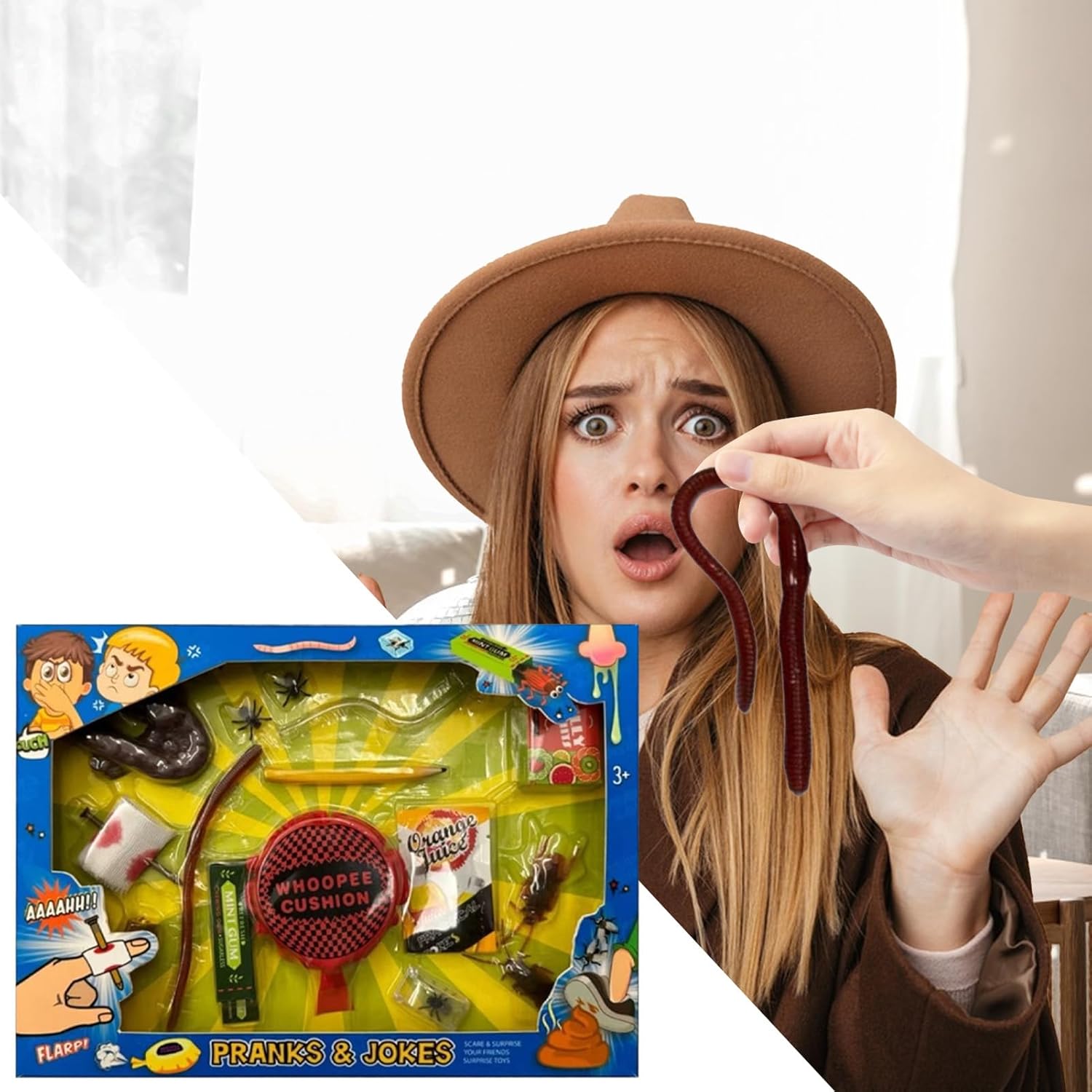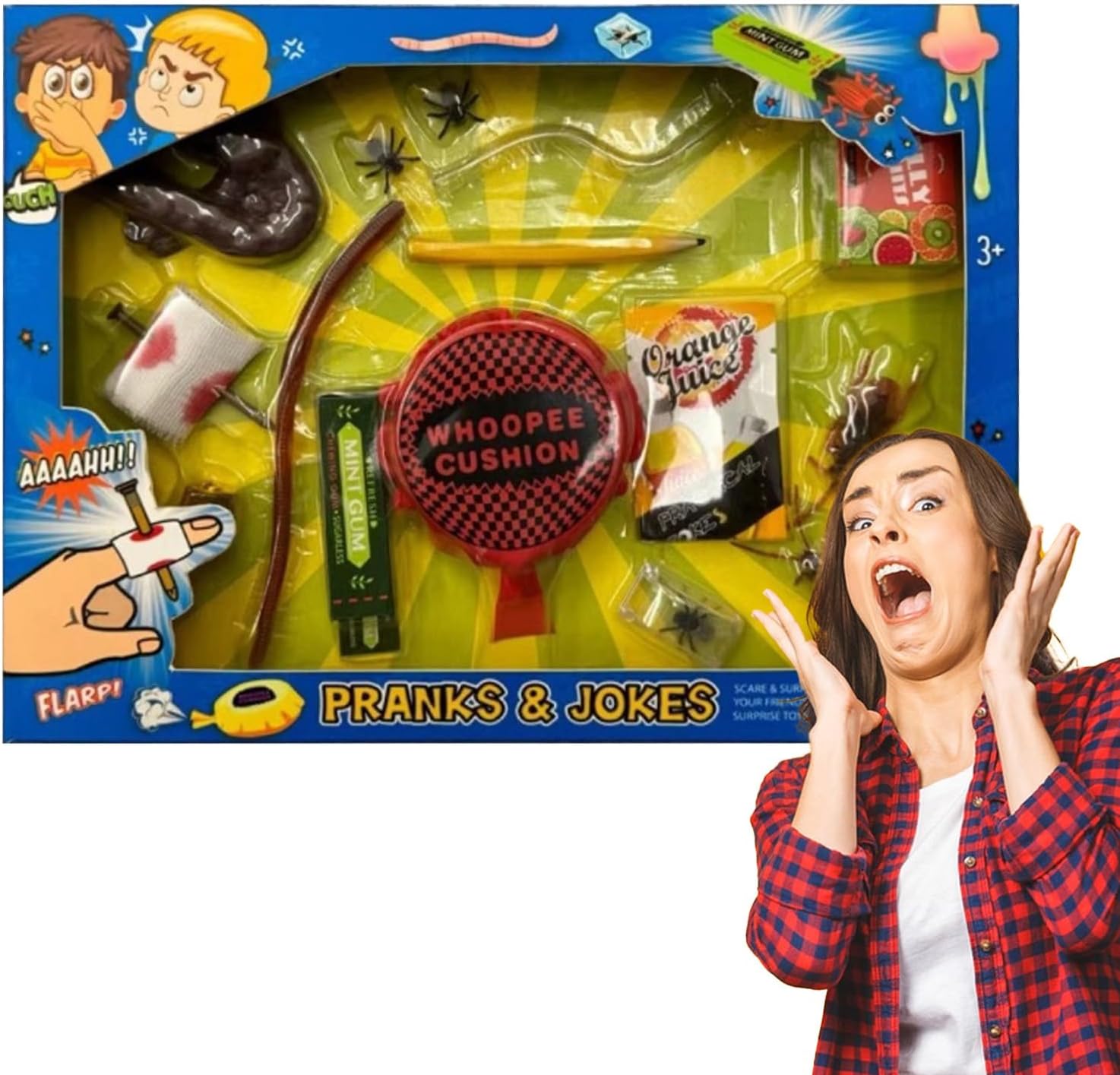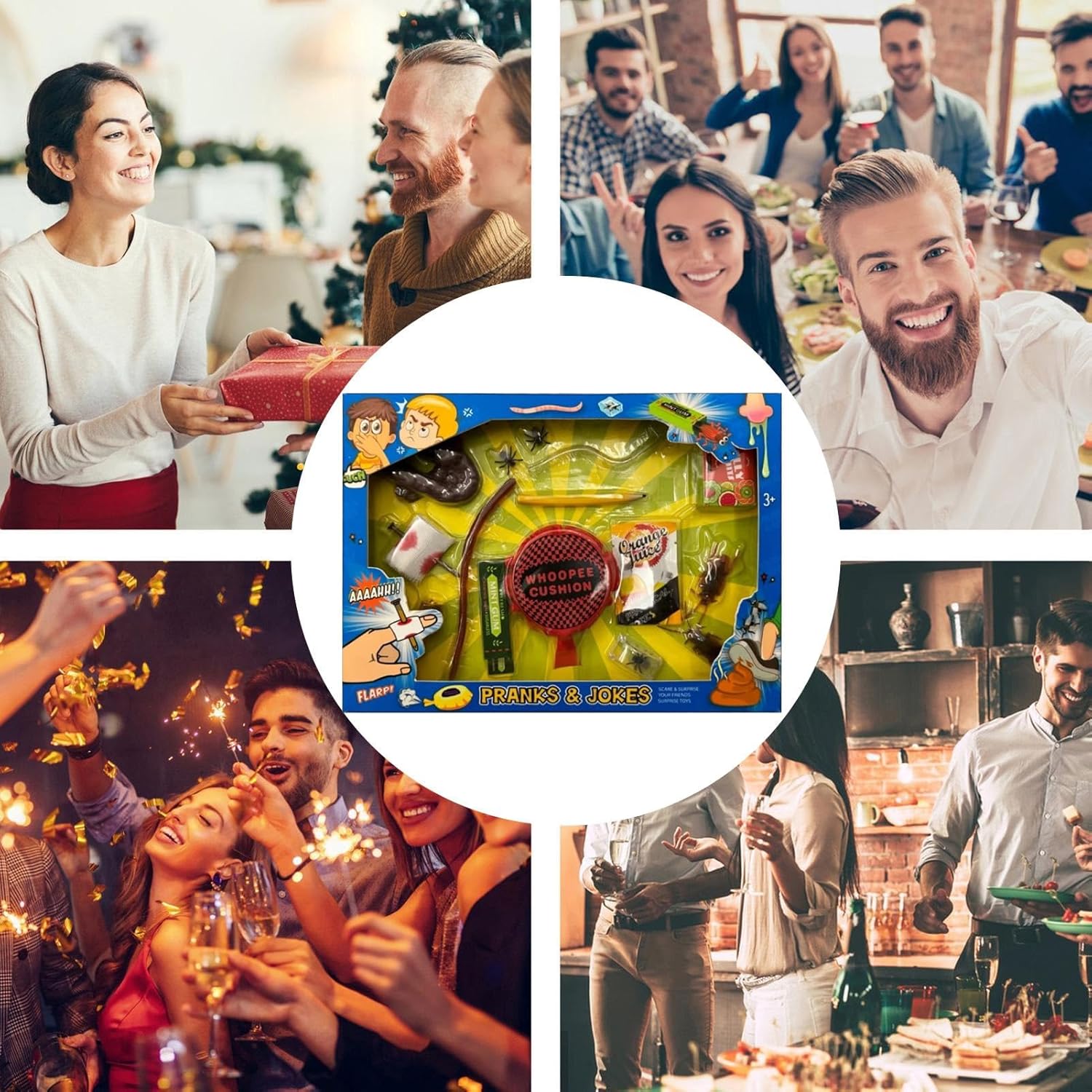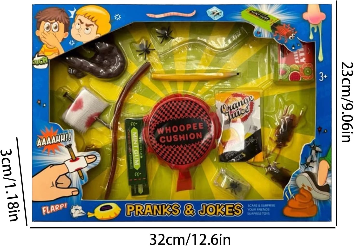 Esperienza divertente migliorata: concediti ancora più divertimento e risate mentre guardi i tuoi amici e la tua famiglia urlare e ridere mentre fanno deliziosi scherzi insieme. Crea ricordi duraturi che lasceranno tutti a bocca aperta, assicurando innumerevoli momenti di gioia e risate Materiale resistente: realizzato con spugne resistenti, questo kit di scherzi è stato sapientemente realizzato per garantire robustezza e longevità. Il suo design robusto significa più risate e non si romperà né si danneggerà facilmente. Preparati per alcuni scherzi esilaranti con questo kit ben fatto Ampie applicazioni: il nostro kit di scherzi è la scelta perfetta per ogni occasione sociale. È adatto per riunioni o altre varie occasioni per creare un'atmosfera piena di divertimento. Semplice da usare, tiene tutti insieme e ridono, rendendolo un'opzione perfetta per far giocare i bambini e usarli con gli amici Miglioratore 'atmosfera: vuoi aggiungere un po' di entusiasmo alle tue riunioni di famiglia? Il nostro kit di scherzi è la scelta perfetta. È un modo per creare un'atmosfera spensierata in ogni occasione, assicurando tante risate e rendendo i tuoi eventi ancora più divertenti Set pratico: include cuscinetti per volare e scoreggiare, ecc., il kit di scherzi offre un'esperienza di scherzo senza fine: idee per presentare e deliziare amici o familiari