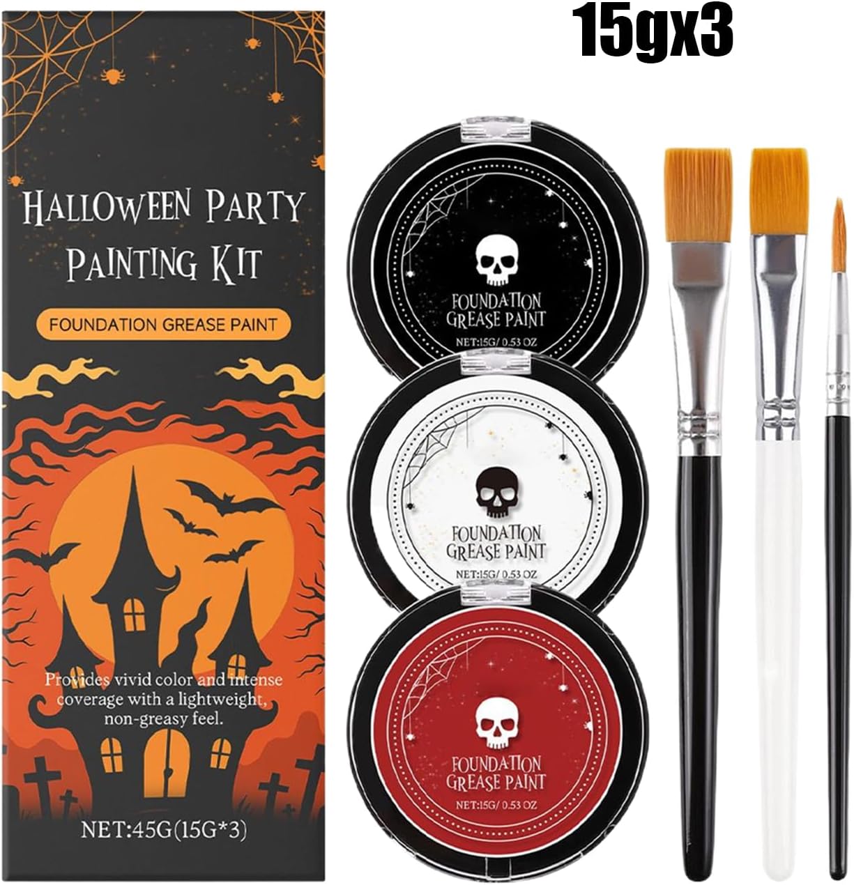 Applicazioni creative: Esalta performance sceniche o feste a tema con pittura viso/corpo, ideale per Halloween e occasioni artistiche, promuovendo fascino decorativo attraverso espressioni personalizzate e risultati sorprendenti Formula Sicura e Morbida: Progettata con componenti cosmetici anallergici, la texture delicata previene arrossamenti ed è perfetta per soggetti con cute sensibile durante le celebrazioni festive. Colori Intensi: Formula con pigmenti ad alta purezza garantisce una coprenza leggera in un'unica applicazione, ideale per stili gotici e vampiri. Resistenza a sbavature e scolorimento assicura effetti duraturi per tutto Halloween. Comodità Assoluta: Il trucco scivola via senza residui con normale detergente dopo l'uso, garantendo praticità di applicazione a pennello, spugna o dita Collezione Trucco: Combina fondotinta bianco a tecnologia crema-polvere con texture cremose nero e rosso. Tre pennelli inclusi per adattarsi a tutti gli stili creativi in ogni stagione.