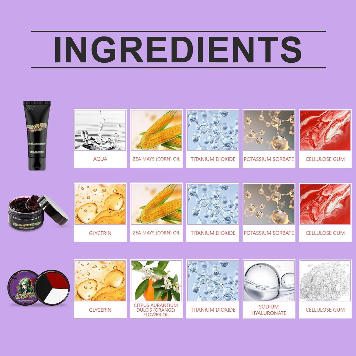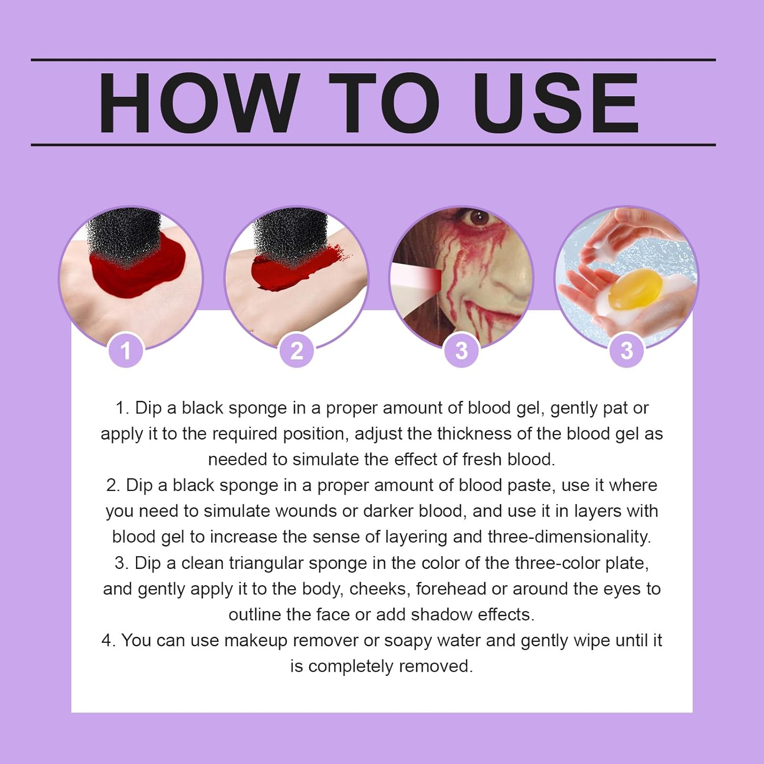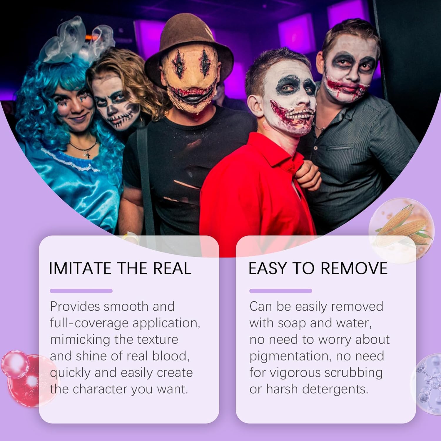 💀 【Sangue finto realistico】 Gel di sangue coagulato con una consistenza viscosa e sciropposa, non scorre né si secca. Stadium Blood è rosso sangue, liquido e realistico ma lento ad asciugarsi. Spruzzo di sangue, consistenza sottile premere l'ugello per creare un effetto schizzi di sangue. 💀【Materiale sicuro】Il nostro set per il trucco delle cicatrici è realizzato in materiale non tossico, sicuro da usare e non danneggerà la pelle. Ideale per feste, carnevale, carnevale, Halloween. 💀【Per Varie Occasioni】Adatto per divertenti feste a tema, feste in costume, carnevale, cosplay, Halloween, carnevale, festival o altri trucchi con effetti speciali. Gli strumenti per il trucco con effetti speciali indispensabili per Halloween possono creare una buona atmosfera vacanziera. Crea i tuoi ricordi. 💀【Facile da usare】Utilizza semplicemente una spugna per dipingere viso e corpo, si asciuga in 5 minuti e dura per ore. Usa acqua e sapone per rimuovere la vernice. Puoi anche mescolare i colori per ottenere nuovi colori. Crea il trucco perfetto e spaventoso che si abbina molto bene al tuo costume da festa di Halloween. 💀【La confezione include】5 kit per il trucco di Halloween. Gel di sangue 30G + unguento di sangue 30G + piastra tricolore 10G + spugna nera + spugna triangolare