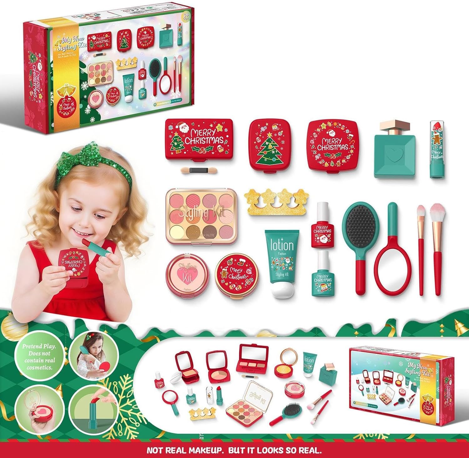 Promuove la fiducia in se stessi Creatività: questo set di trucchi per bambini rafforza giocosamente la fiducia in se stessi e promuove le capacità di espressione creativa e le capacità motorie attraverso giochi di ruolo interattivi, supporta l'apprendimento naturale dei colori e migliora la coordinazione occhio-mano in modo divertente per i bambini Intrattenimento sano: offre ai bambini un'esperienza di trucco sicura e felice con materiali sicuri, promuove la creatività durante il gioco e garantisce sempre la sicurezza dei più piccoli Ottimo regalo per il gioco creativo: la scatola dei trucchi per bambini è stata progettata per feste di compleanno, feste di trucco e premi di classe progettati. Offre valore pratico ed educativo ed è una scelta ponderata per figlie, nipoti e altre ragazze per incoraggiare la creatività attraverso giochi di ruolo coinvolgenti. Esperienza di gioco creativo: con dettagli realistici e tonalità vivaci, questo set di trucchi per bambini ispira curiosità e creatività consentendo ai bambini di imitare il trucco degli adulti e li intrattiene con design accattivanti per giochi fantasiosi. Infinite possibilità di design: ispira giochi di ruolo fantasiosi e con versatili accessori per il trucco migliora la capacità di creare senza sforzo creazioni eleganti